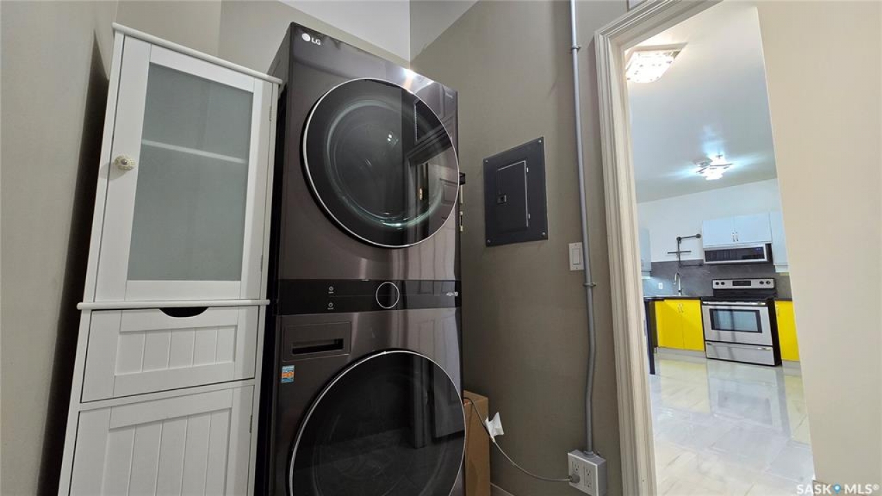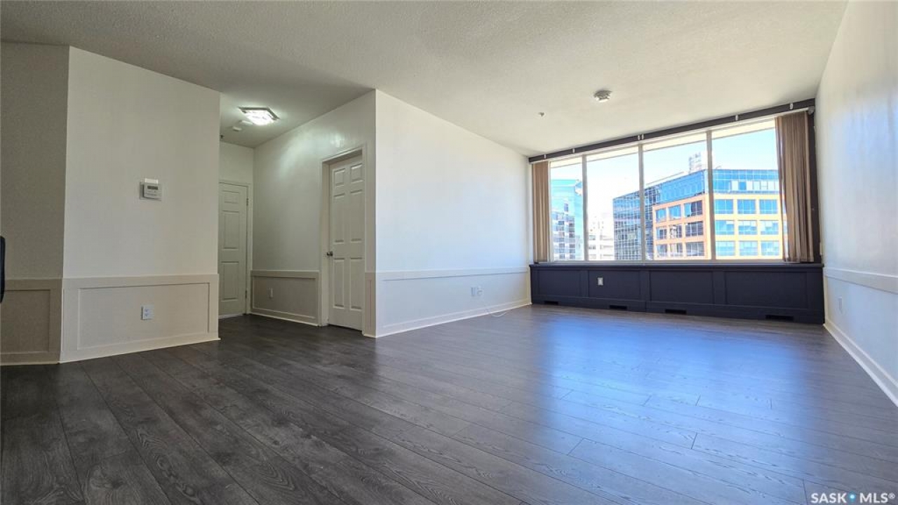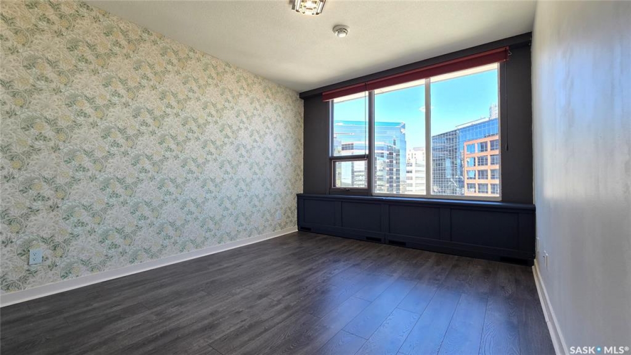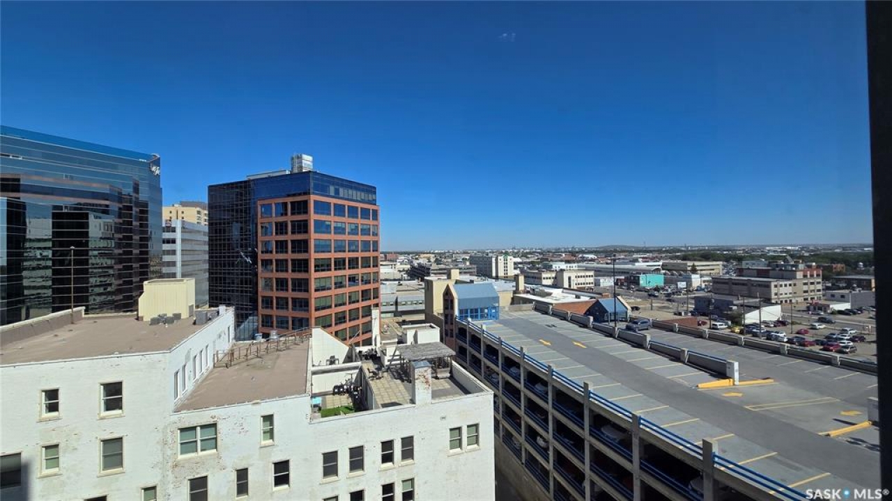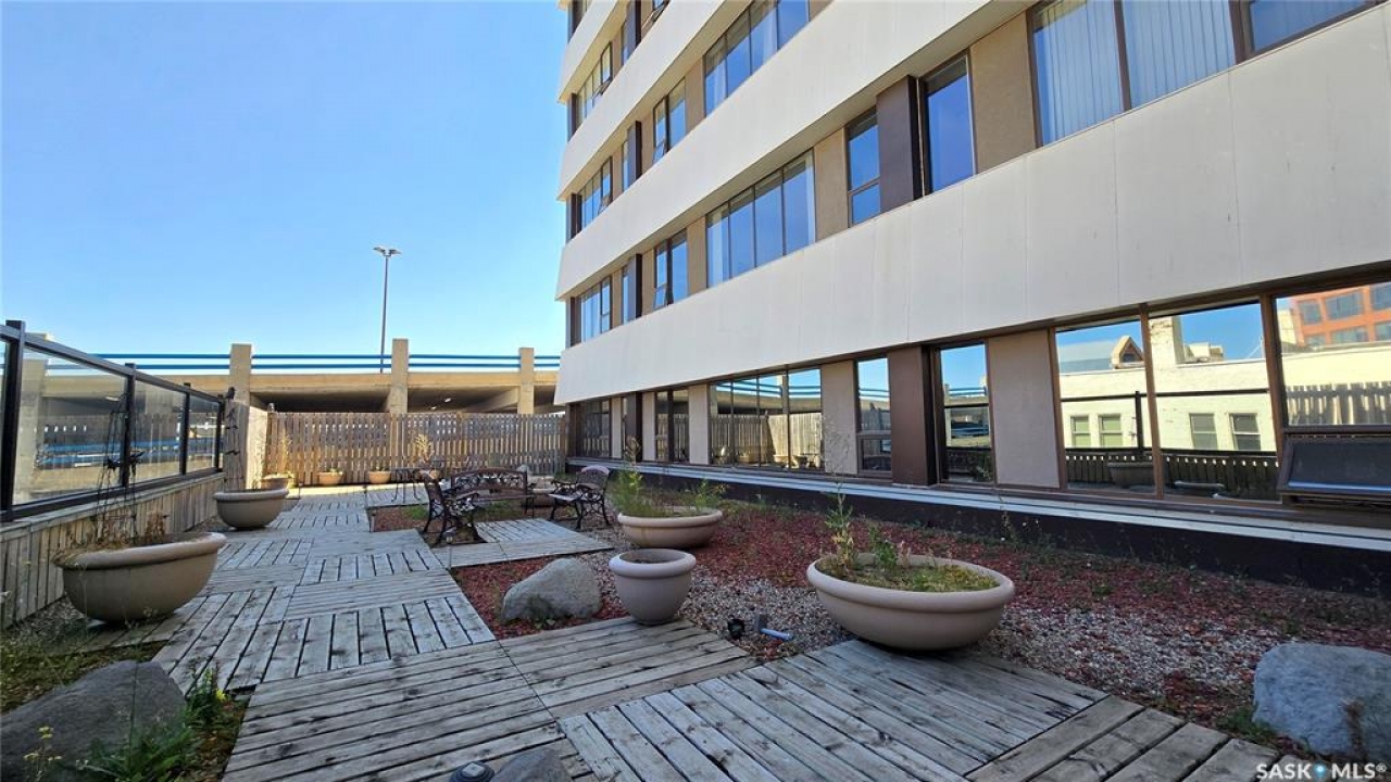 This high rise condo is securely nestled in downtown Regina, and offers an urban and convenient lifestyle. The Hamilton building is a well-known Regina staple, and by purchasing this bright and well updated 2 bedroom condo, you'll gain access to a plethora of amenities, not limited to; Gated and secure parking, fully outfitted gym, large amenities room for lounging and hosting, designated storage area, and of course the outdoor patio and garden area, complete with BBQ and hot tub. This unit is freshly painted with new laminate flooring throughout. The kitchen offers ample cupboard and counter space, stainless steel appliances, and a built in dishwasher. The main bath has been updated with new vanity, sink, fixtures, and backsplash. Both bedrooms face North and offer wonderful views of the city. The primary bedroom is tastefully wallpapered and boasts its own 4 piece ensuite, with updated vanity, sink, and fixtures. Other features of this condo include smart plugs and light switches, tasteful custom built coverings for the radiators, modern light fixtures, and custom blinds. Be right in the action of downtown, and enjoy the safety of being 8 floors up, with your vehicle in a completely gated lot, and even a concierge in the lobby to handle your deliveries.
