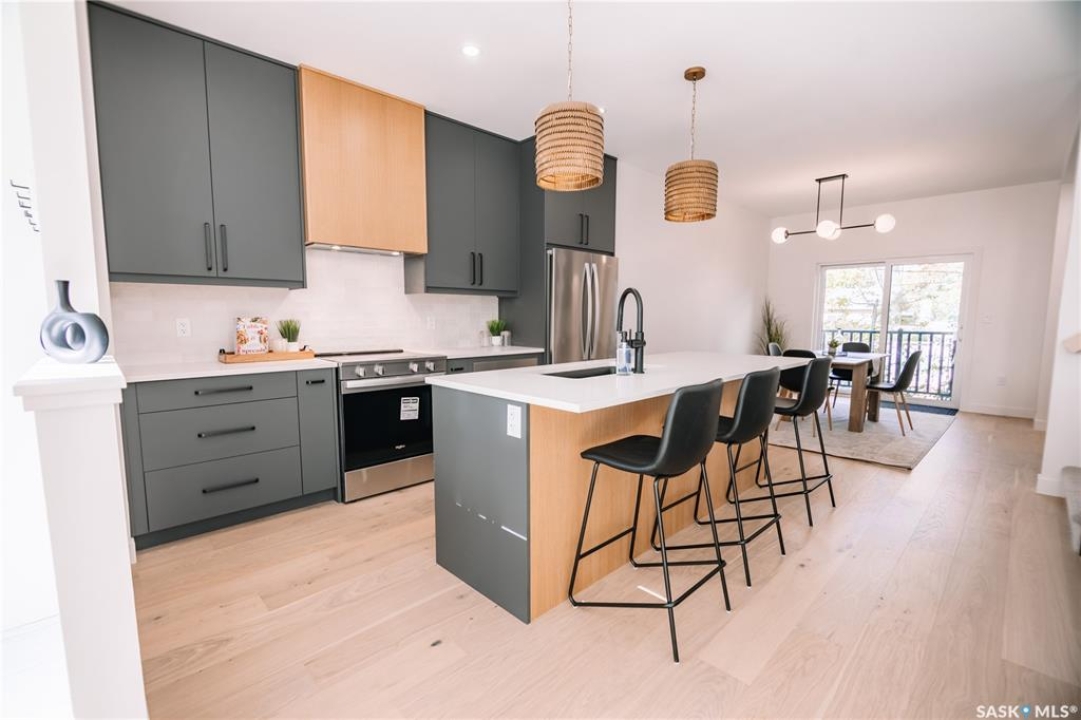 Welcome to 2804 14th Avenue, a brand-new, architecturally striking development by West Oak in the heart of Regina's Cathedral neighbourhood. This captivating townhouse condo brings modern sophistication to one of the city's most sought-after and walkable communities — just steps from Les Sherman Park, Safeway, 13th Avenue boutiques and cafés, top-rated schools, and downtown Regina. This 2 �-story townhouse-style condo showcases over 2,200 sq. ft. of contemporary living space, thoughtfully designed to maximize light, comfort, and functionality. The main level welcomes you with an inviting open-concept layout featuring floor-to-ceiling windows, 9-foot ceilings, and sleek hardwood flooring that create a bright, airy atmosphere. The modern kitchen serves as the centerpiece of the home, complete with quartz countertops, high-end cabinetry, and premium finishes that perfectly complement the property's refined aesthetic. Upstairs, the second level offers spacious bedrooms and beautifully appointed bathrooms, including a tiled ensuite shower that provides a spa-like retreat. Continuing upward, you'll find the stunning rooftop patio — a private outdoor oasis perfect for morning coffee, evening cocktails, or entertaining guests under the Cathedral skyline. Every unit includes a single detached garage and benefits from being part of a comprehensive redevelopment initiative designed for longevity, energy efficiency, and timeless style. These homes represent the perfect fusion of modern living and vibrant community, delivering a new level of luxury and design to Regina's historic Cathedral area. Contact your REALTOR � today to experience the future of Cathedral living with West Oak Developments.