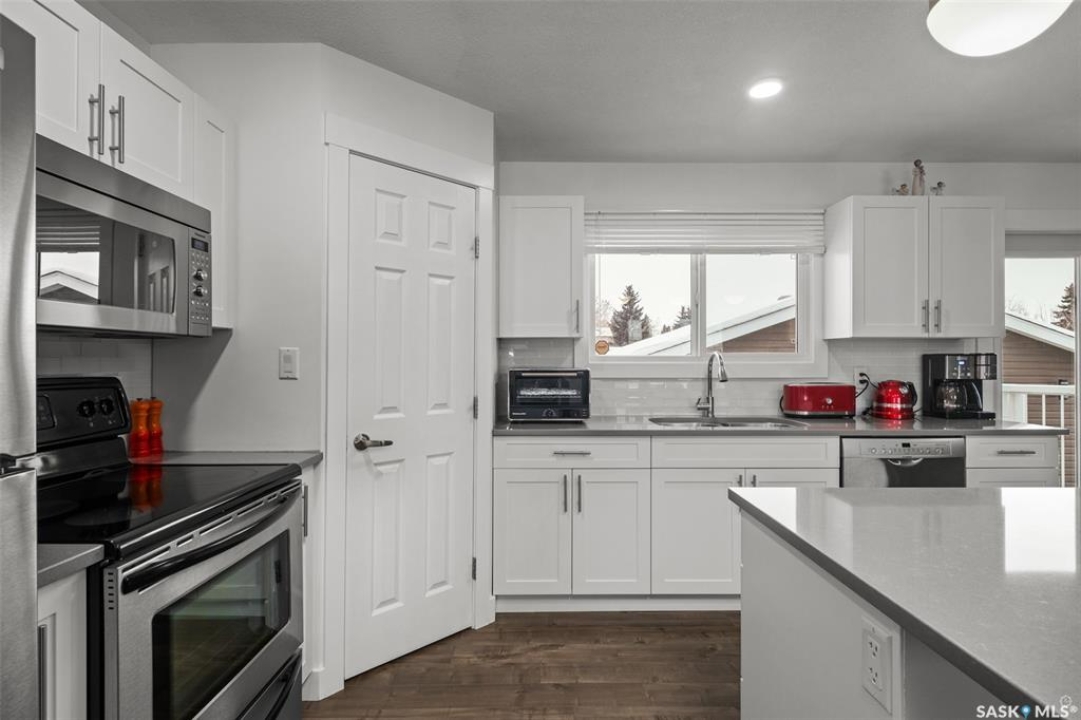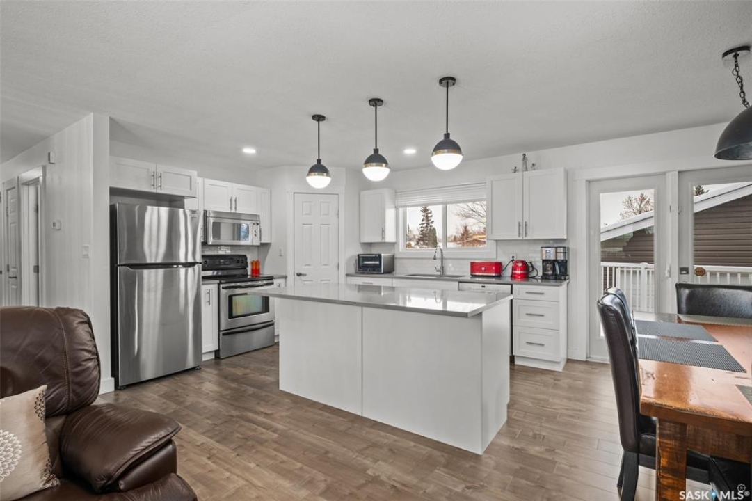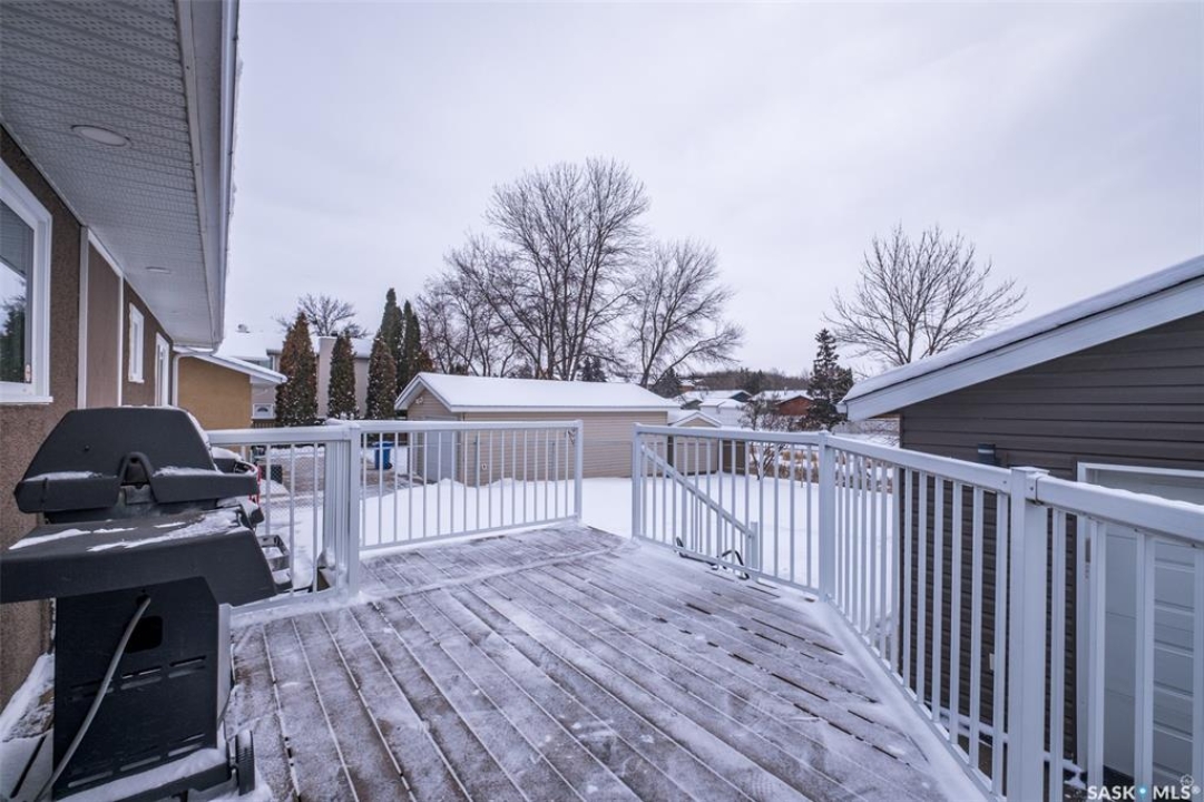 Stunning bi-level backing onto green space in the desirable Carlton Park neighborhood! The main floor welcomes you into a bright living room highlighted by a large picture window that fills the space with natural light. The kitchen is both stylish and functional, offering white soft close cabinetry, glass tile backsplash, quartz countertops, stainless steel appliances including a new fridge, a corner pantry and a large island that connects seamlessly to the dining area. There are patio doors that provide direct access to the South facing deck, recently refinished and complete with a natural gas bbq hookup, making it ideal for indoor and outdoor dining. The main level also includes 3 spacious bedrooms, including the primary bedroom with a 3 piece ensuite featuring a stand up shower. A modern 4 piece bathroom with a white vanity and tiled tub surround completes this floor. The fully developed basement features an expansive family room, perfect for movie nights or game nights, along with 2 additional bedrooms, a beautiful 4 piece bathroom and a laundry/utility room. Other notable features include new 25 year shingles, high efficiency furnace and hot water heater, central air conditioning, LED soffit lighting and a freshly stained shed. The partially fenced and thoughtfully landscaped yard includes a garden area for outdoor enjoyment and a convenient 24 ft x 28 ft double detached insulated garage that is equipped with 200 amp service, new shelving and a workbench. Don't miss out on this exceptional property. Schedule a viewing today!