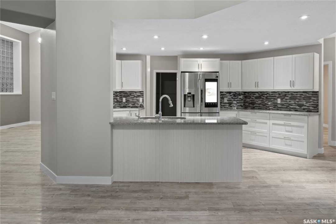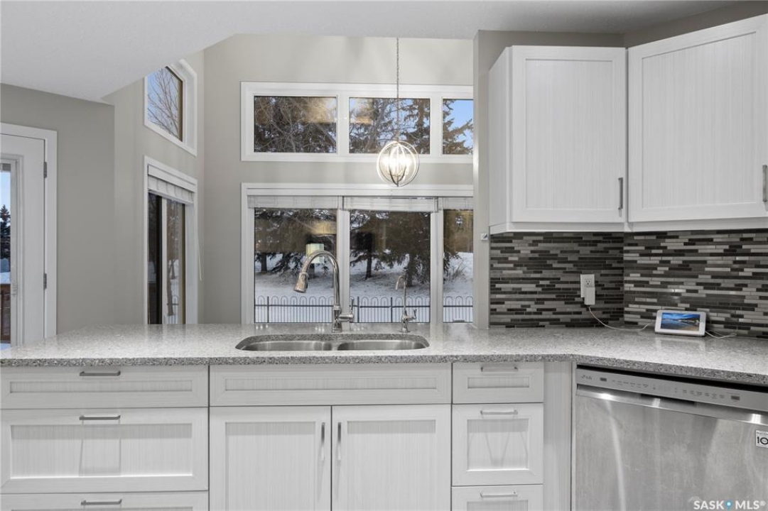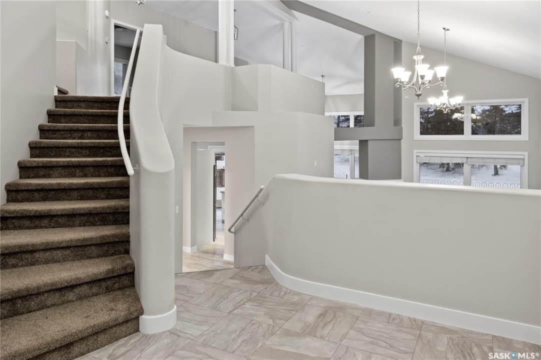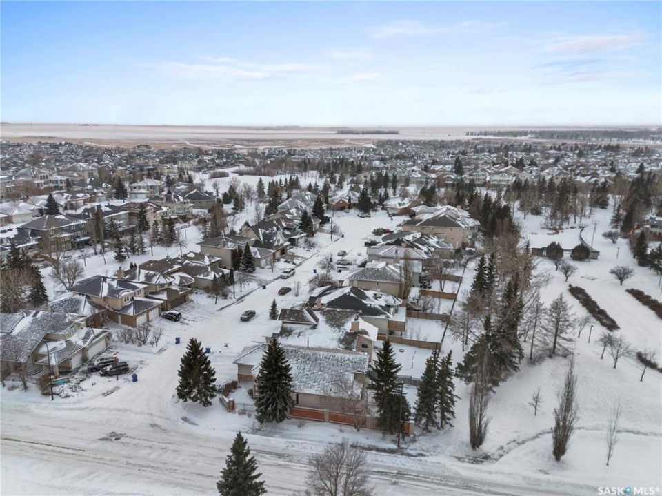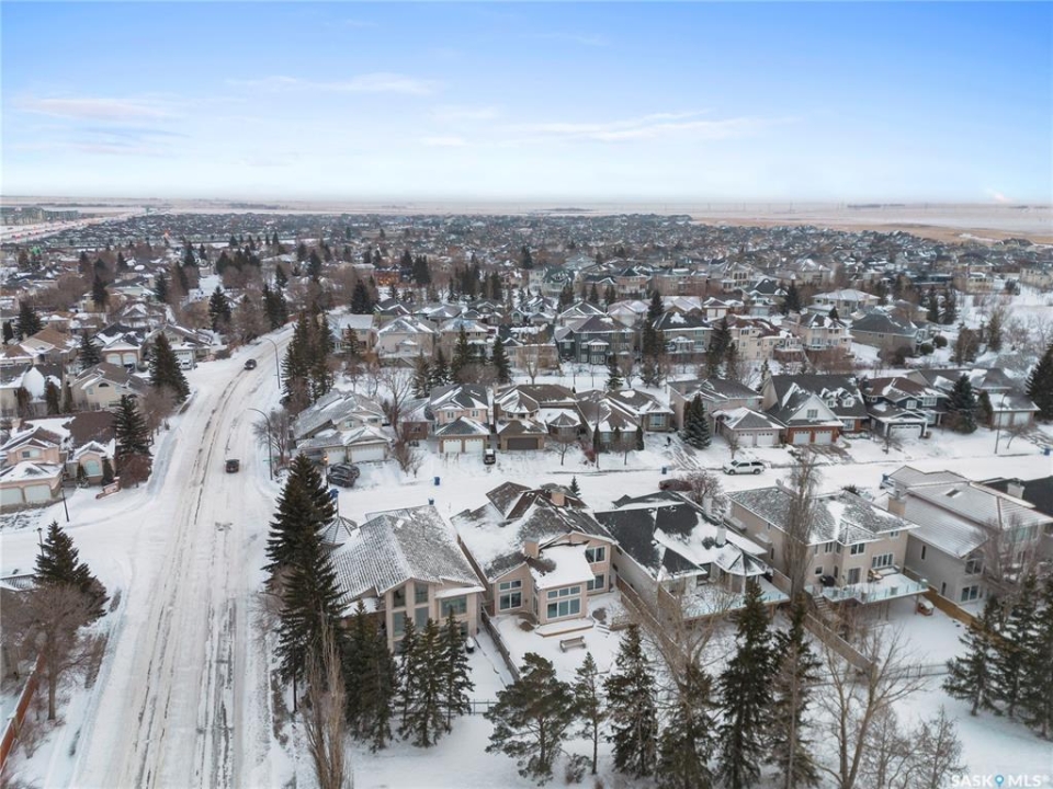 Welcome to 5006 Wascana Vista Court. This former show home is nestled in the sought-after Wascana View neighborhood. This quiet cul-de-sac location backs onto a walking path, offering convenient access to east-end amenities and schools. This two-story split home features 4bd, 3ba, and a spacious 32x24 triple attached insulated garage. The exterior and landscaping are very low maintenance, with a xeriscaped front yard, stucco siding, and a backyard with multiple patio areas and artificial turf. Upon entering, you are greeted by a foyer with 2 closets and tile flooring. A curved staircase descends into the expansive great room, featuring massive windows that provide views of the greenspace. The formal dining room is separated from the great room by a 3 sided gas fireplace. Overlooking the dining room is the updated kitchen, complete with ample cabinet space, quartz countertops, a tile backsplash, and included stainless steel appliances. Next, an additional versatile room can serve as a family room, or reading nook. Adjacent is a main floor bedroom, with natural light from a rear window. The main floor also includes a 2pc bathroom, a large laundry room, and a utility room housing 2 new furnaces and a air conditioner (installed June 2025), a rented water heater, and an r/o system. A storage area completes this level. Ascending a curved staircase, you arrive at a bonus room, located next to the master. The master suite has French doors, expansive windows, a custom-built walk-in closet, and a luxurious 5pc ensuite bathroom with 2 sinks, a jet tub, a custom tile shower, and heated floors. A few more stairs lead to the top floor that has an additional nook, 2 generous bedrooms, and a 5pc bathroom equipped with double sinks and a deep soaker bathtub. The entire home has been recently painted, and significant energy efficiency upgrades were made in 2023, including new shingles and solar panels. Certain photos have been digitally staged and are clearly marked.