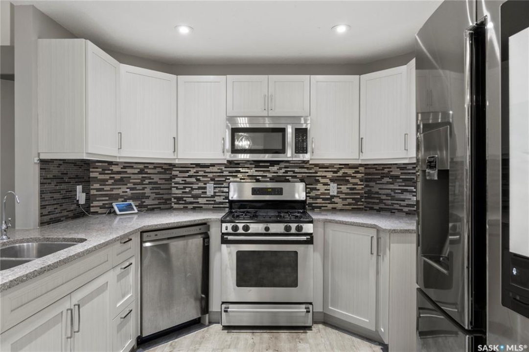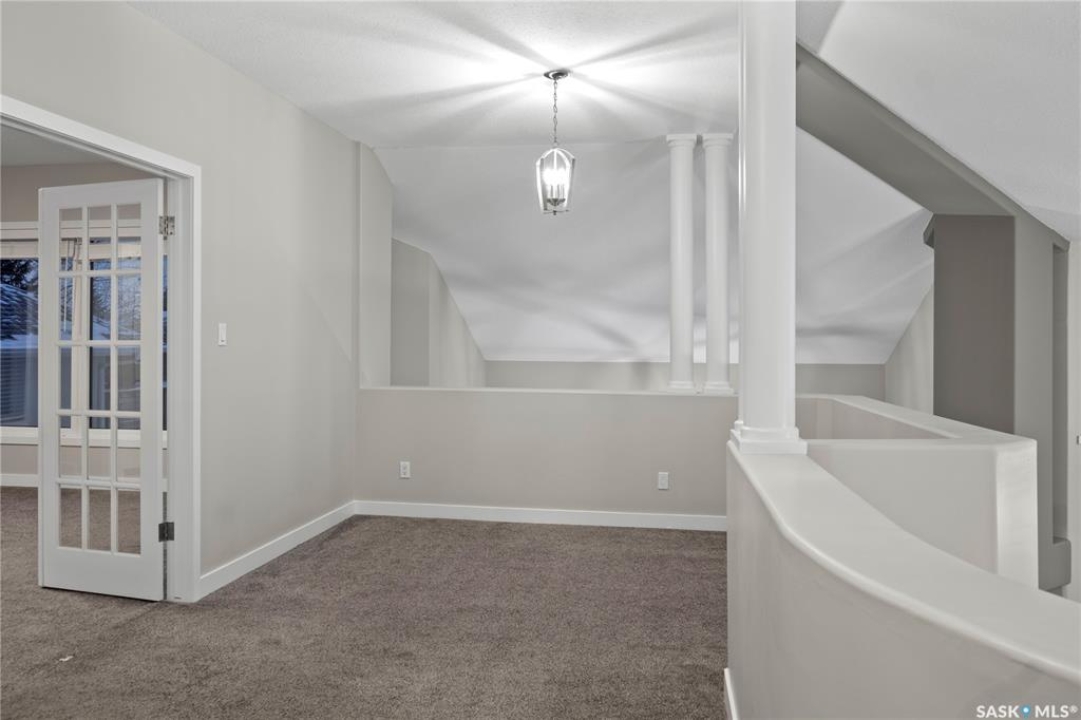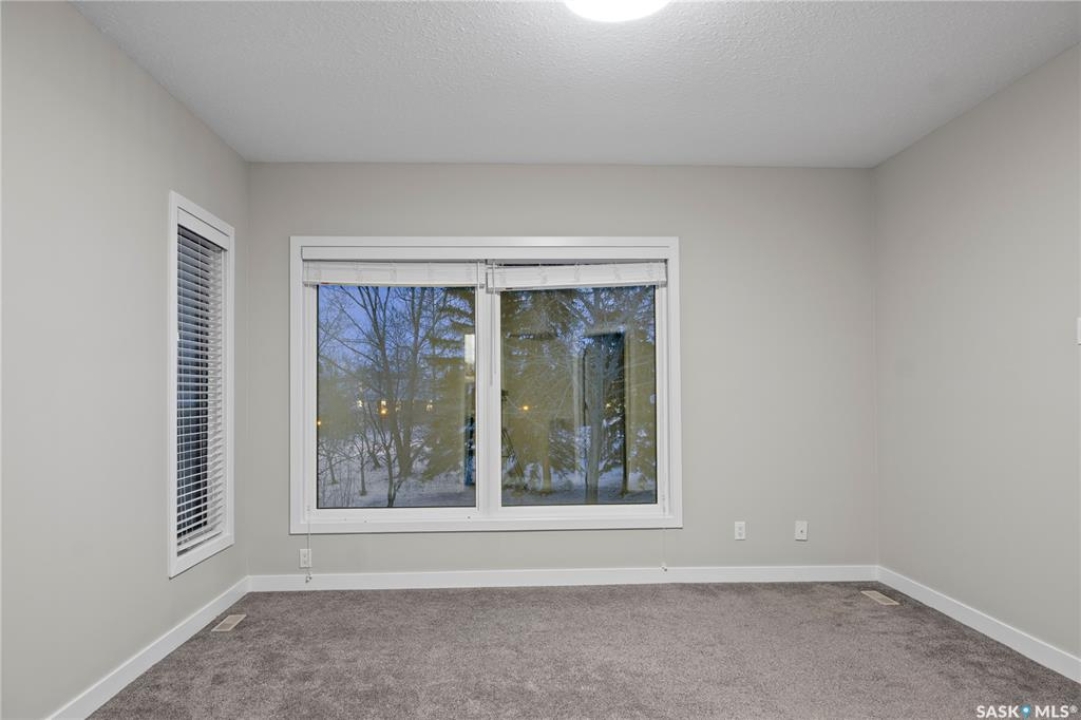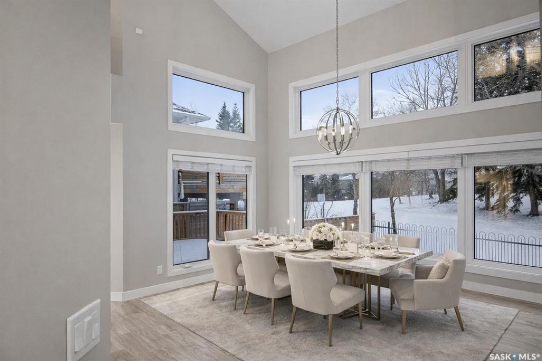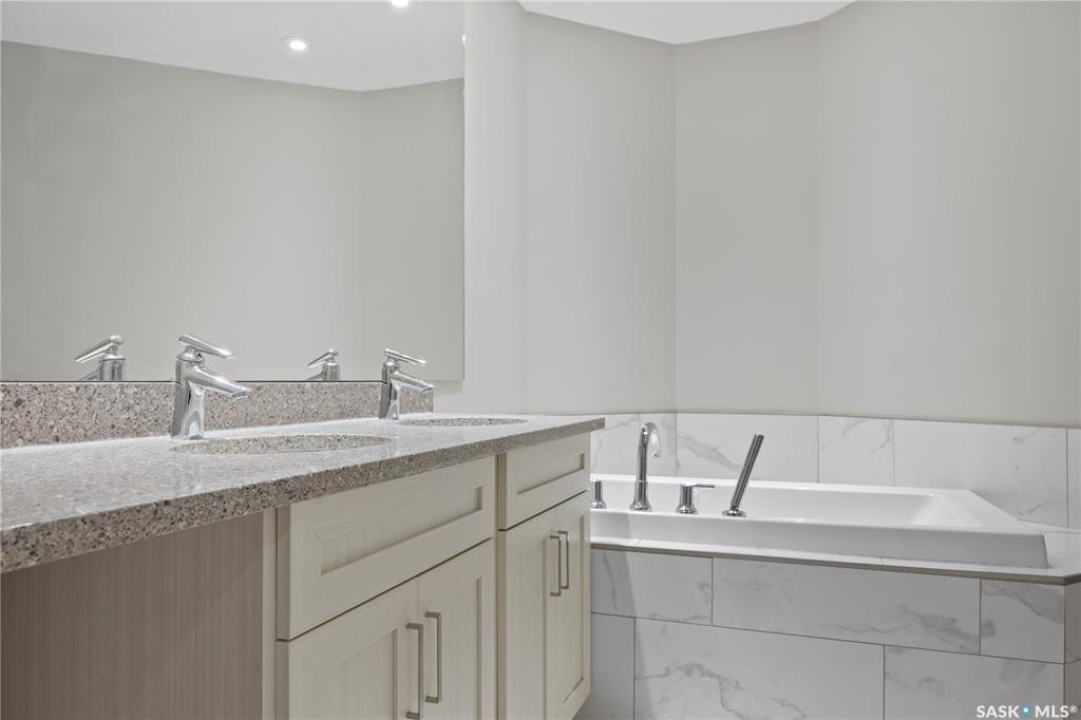 Welcome to 5006 Wascana Vista Court. This former show home is nestled in the sought-after Wascana View neighborhood. This quiet cul-de-sac location backs onto a walking path, offering convenient access to east-end amenities and schools. This two-story split home features 4bd, 3ba, and a spacious 32x24 triple attached insulated garage. The exterior and landscaping are very low maintenance, with a xeriscaped front yard, stucco siding, and a backyard with multiple patio areas and artificial turf. Upon entering, you are greeted by a foyer with 2 closets and tile flooring. A curved staircase descends into the expansive great room, featuring massive windows that provide views of the greenspace. The formal dining room is separated from the great room by a 3 sided gas fireplace. Overlooking the dining room is the updated kitchen, complete with ample cabinet space, quartz countertops, a tile backsplash, and included stainless steel appliances. Next, an additional versatile room can serve as a family room, or reading nook. Adjacent is a main floor bedroom, with natural light from a rear window. The main floor also includes a 2pc bathroom, a large laundry room, and a utility room housing 2 new furnaces and a air conditioner (installed June 2025), a rented water heater, and an r/o system. A storage area completes this level. Ascending a curved staircase, you arrive at a bonus room, located next to the master. The master suite has French doors, expansive windows, a custom-built walk-in closet, and a luxurious 5pc ensuite bathroom with 2 sinks, a jet tub, a custom tile shower, and heated floors. A few more stairs lead to the top floor that has an additional nook, 2 generous bedrooms, and a 5pc bathroom equipped with double sinks and a deep soaker bathtub. The entire home has been recently painted, and significant energy efficiency upgrades were made in 2023, including new shingles and solar panels. Certain photos have been digitally staged and are clearly marked.