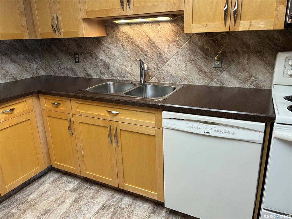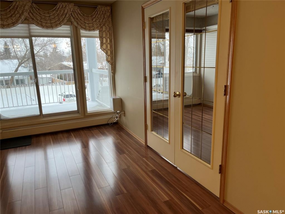 This wonderfully upgraded apartment style condo is full of recent upgrades of maple cabinets in kitchen & baths, ceramic tile & laminate flooring. Open floor plan with island style kitchen open to dinette & living room that features patio doors to balcony with outdoor storage room. Good sized bedroom, NE windows & 2 pce ensuite.The den/office/guest room has French Doors to the main area There is storage galore with good sized Laundry/Utility room & yet another storage room off the hallway, 5'5"x4'10", and a keyed storage room on this floor as well. Feature morning twilight through the main living area & you living your best life in the Spring & Summer on your balcony whilst birds chirp & twitter happily amongst the trees away from the traffic, noise & dust. There is an Amenities Room for social gatherings & Happy Hour, a parking stall very close to the NW building entrance & 16 visitor parking spaces. This property will not disappoint.