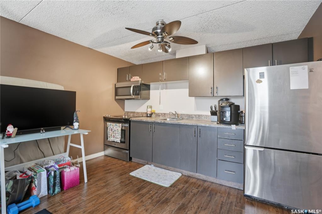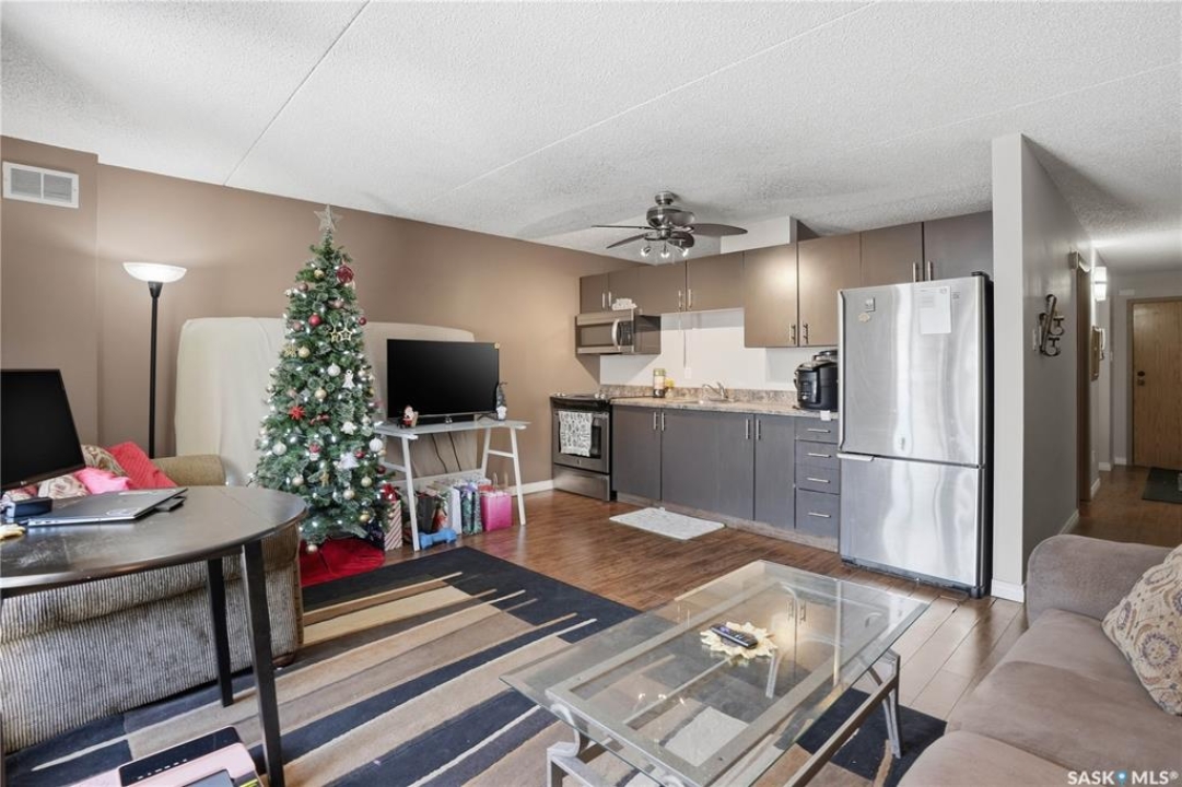 This property comes completely furnished (except for the tenant's personal belongings). The interior walls are concrete, which helps with sound control. The bedroom has no window. Updates over the years include: refreshed cabinets, stainless steel appliances, flooring, base trim, paint and wall air conditioning unit. There is one designated parking spot #2 at the back of the building (which is easily accessible from the north exterior door to the building). There is a common area laundry room on each floor. There is an elevator on every floor. Security exterior doors with a buzzer system at the front door. Cameras are in various areas of the building. A brand new elevator was installed in December 2025. Great potential for a first-time home owner or revenue. This condo is located close to the downtown area. Property sold as is.