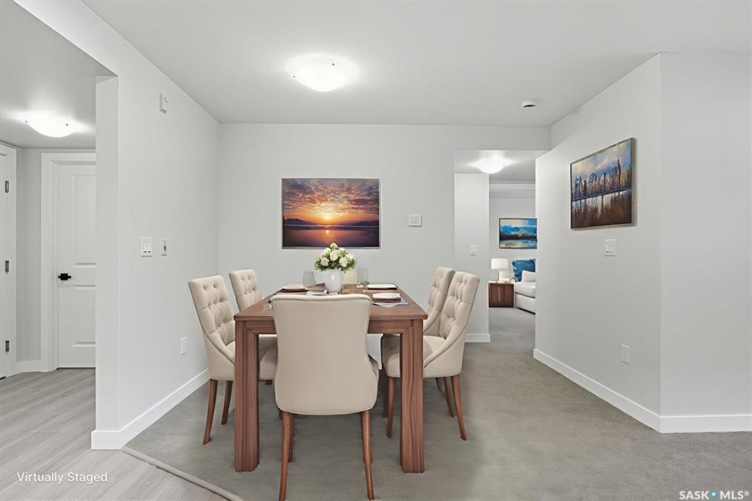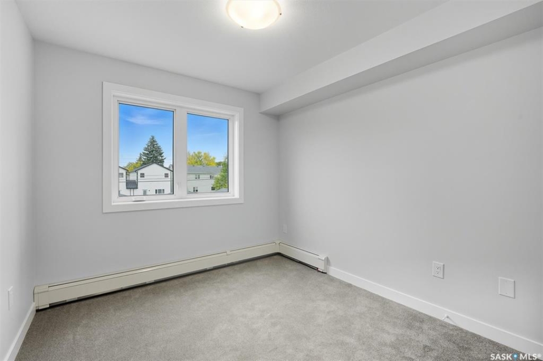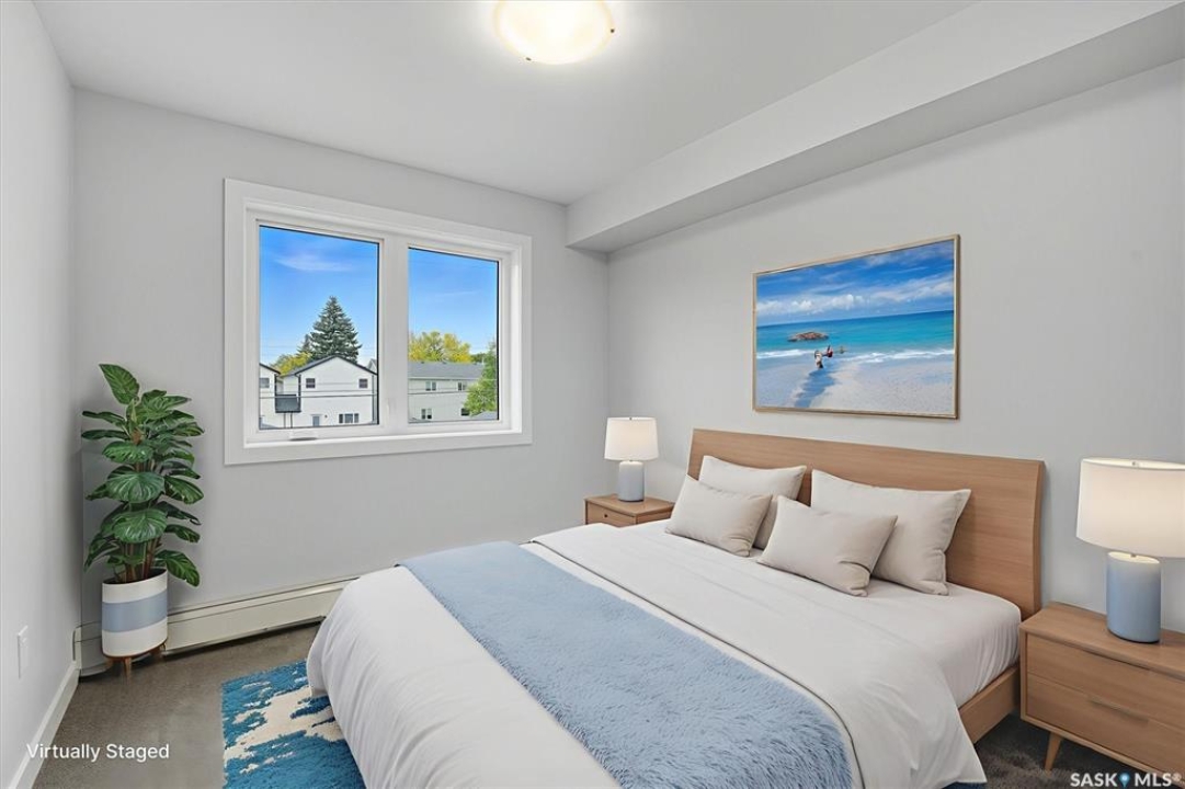Welcome to #208 – 318 108th St W in Saskatoon — a brand-new, 2 bed + 2 bath condo rebuilt from the ground up and loaded with thoughtful upgrades. Located on the quiet side of the building, this 1,030 sq ft unit is a peaceful retreat just minutes from the University of Saskatchewan. Enjoy quartz countertops in the kitchen and both bathrooms, a solid-slab backsplash, and a large island with extended overhang for casual dining. The stainless steel appliance package includes fridge (with ice and water), stove, dishwasher, washer and dryer — all upgraded and backed by warranty. A smart layout includes an oversized laundry room with the option to move appliances for added functionality. Premium finishes include thick, high-grade vinyl in wet areas for leak mitigation and plush, upgraded carpet for comfort and warmth — far superior to standard laminate or LVP found elsewhere. This turnkey unit also features underground heated parking, a covered balcony, and easy access to parks, schools, and local amenities. Whether you're an investor, university staff/student, or a farmer seeking a winter city condo, this modern unit offers unbeatable value and versatility in a prime Saskatoon location.