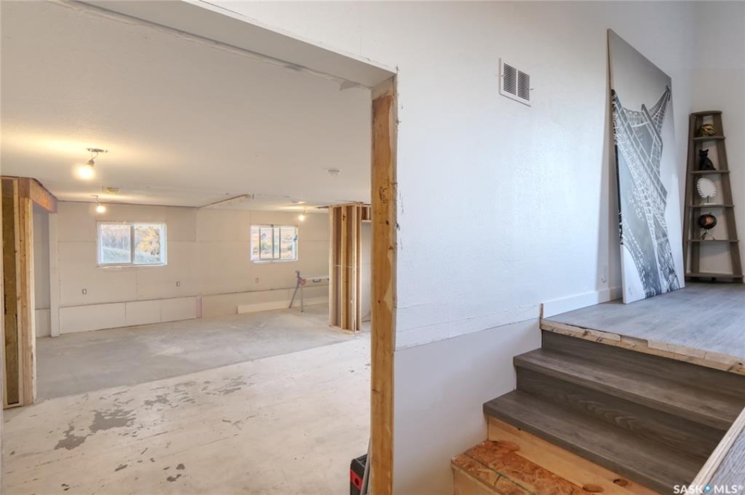 Your wait is over to own an amazing acreage property just 6 km east of Moose Jaw! River's Edge Acreage is a must-see opportunity you do not want to miss!! Combining an amazing location on the river's edge with just completed beautiful on-trend finishes to over 2400 sq/ft of this home, you will be amazed as you enter the great room with vaulted ceiling & gas fireplace! A games room or home office (330 sq/ft) has so much potential for families of any size & is adjacent to the great room! Stepping upstairs, you will absolutely love the fabulous open concept living area with a kitchen designed for all the chefs in the family! Quartz countertops, central island, lovely dining area, along with a spacious living room that steps onto the deck overlooking the beautiful river valley views with a staircase to take you out to the firepit area! Down the hall, a stunning bath with a gorgeous soaker tub walled in striking stone tiles is magazine-worthy! Three bedrooms, a laundry area, as well as another bath lead to the primary suite that has yet another beautiful bath plus a very special walk-in dressing room where you will love to spend time getting ready for your day! The walkout lower level has amazing potential to be another living space for family, income, or Airbnb, as 2 exits from the level go to lovely patio spaces (one is covered), or used for your personal needs! The 2.62-acre property has so much beauty that you will vacation at home! Just imagine taking out your kayak to the river's edge of your own private property! River's Edge Acreage must be seen to appreciate how amazing it is! Just a few features: 4 bedrooms, 3 baths, 2400 sq/ft newly finished interiors, 1600 sq/ft walkout lower level, new well, beautiful landscaping, minutes to Moose Jaw, no gravel roads to drive!, a virtual new home with gorgeous views,....I know!!! Be sure to view the 3D scan of the amazing floor plan & 360s & drone shots of the outdoors!! Directions: 50.3979722 -105.4138056