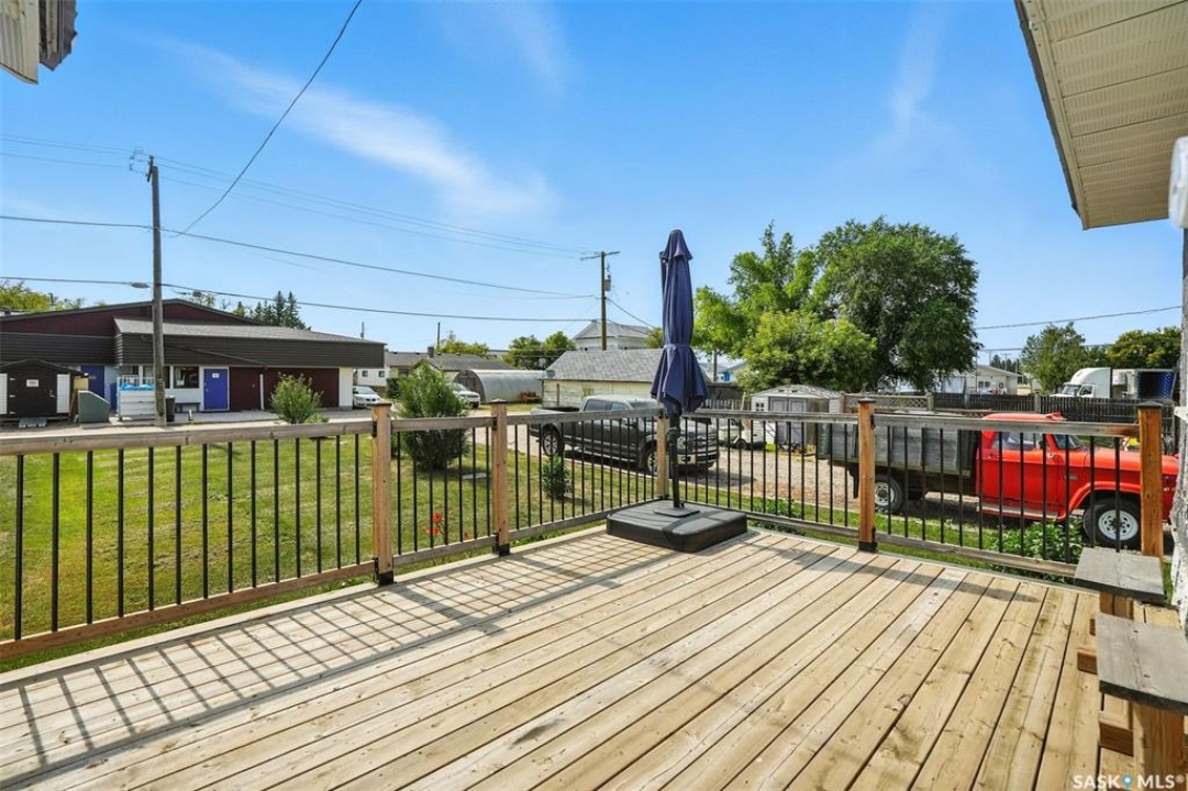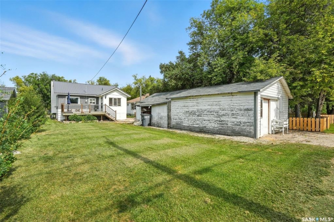 This well kept bungalow in the quiet town of Nokomis is move in ready and priced to sell! Step in the front door to a foyer accessing hall to kitchen, living room, bathroom and 2 bedrooms. A spacious living room is L shaped to include dining area with built in mid century storage. Kitchen is compact with plenty of cupboards plus fridge, stove and portable dishwasher. Laundry is in mudroom off back porch. There's a side entrance accessing the basement or mudroom. Updated back deck accesses unheated back porch to mudroom. Basement is partially finished with workout area, bedroom and cold storage room Furnace is HE with central air, and water heater is HE on demand. Mature yard has perennial beds, and detached garage has additional workspace/storage area. Nokomis has a medical clinic, bar, drugstore, grocery and hardware stores, Co-op Agro, restaurants, K-8 school, rec center and more!! Call today for your viewing appointment!