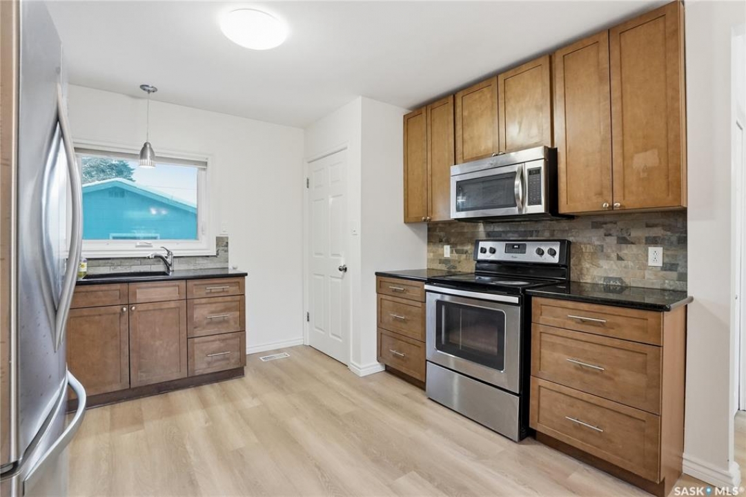 Great bungalow with plenty of recent renovations, all new flooring and paint on main floor. Spacious living room, with 3 bedrooms on the main floor and updated 4 piece bathroom. Kitchen with stainless steel appliances, new flooring, granite counters. Basement has two bedrooms with new flooring and paint, (windows dont meet todays code for a bedroom) Updated bathroom, large spacious family room with new flooring, paint etc. Exterior of the home was just re painted as well as garage. Driveway at front. Garage just had walls re insulated and all new drywall. Newer electrical panel.