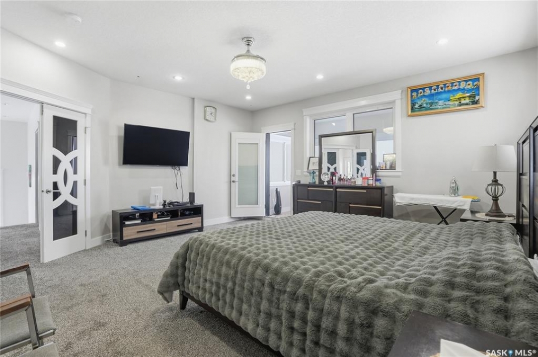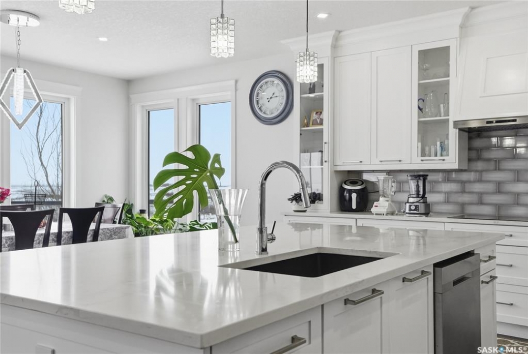 This luxury two-storey walkout home backs the protected Northeast Swale, offering rare, unobstructed prairie views that will never be compromised. Home to native grasslands, rare plant species, and wildlife, the Swale provides a peaceful setting and a natural filter for air and water, creating an exceptional backdrop for refined living. From the moment you enter, a grand open-to-below foyer with soaring ceilings and a stunning chandelier sets the tone for the refined design throughout. The main floor offers expansive, light-filled living spaces, with the living room featuring a Napoleon natural gas fireplace finished with stone as an elegant focal point. The kitchen is designed for everyday living and entertaining, showcasing an extra-large island, quartz countertops, detailed backsplashes, ceiling-height cabinetry, and premium stainless steel appliances. A highly functional butler and spice kitchen includes stainless steel appliances, a sink, ample counter space, and additional storage. A mudroom and laundry room with sink and quartz countertops offers direct garage access, complemented by a convenient 2- piece bathroom. The heated double garage and oversized driveway provide parking for up to six vehicles. The main-floor deck spans the family room and offers approximately 160 square feet of outdoor living space with a natural gas BBQ hookup and uninterrupted Swale views. Upstairs, the primary retreat features a 5-piece ensuite with jacuzzi and a private sunroom, while two additional bedrooms each include 4-piece ensuite bathrooms and large closets. The walkout basement opens to a backyard patio and includes a family room with electric fireplace, games area, wet bar with beverage fridge, a 4-piece bathroom, and two additional bedrooms, one with a 3-piece ensuite and walk-in closet, offering flexibility for guests, extended family, or future home office use. A rare opportunity to own a luxury walkout residence backing a natural reserve.