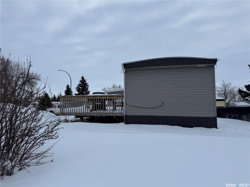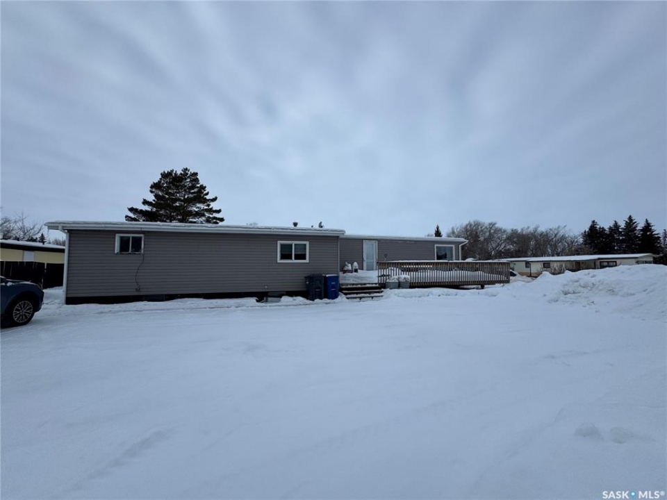 Welcome to 308 Tesky Crescent in Wynyard, Saskatchewan — an affordable home ownership opportunity on a 6,365 sq ft owned corner lot, located in a quiet cul-de-sac. This 2-bedroom, 1-bathroom mobile home offers 1,280 sq ft of above-grade living space and a roomy layout. A key highlight of this home is the large front room featuring its own exterior access. This space truly sets the property apart, offering many practical options for today's lifestyle — ideal for a home-based business, master bedroom, playroom, studio, or flexible family space. The private entrance and generous size allow it to function independently from the main living area, making it a great fit for buyers seeking room for work, creativity, or family needs at home. The main living room is bright and welcoming, open to the kitchen which offers plenty of cabinetry and workspace. Main-floor laundry is conveniently located in the spacious laundry/mud room. Included appliances are the fridge, stove, washer, dryer, and built-in dishwasher. The property provides gravel driveway parking for up to 4 vehicles, established lawns front and back, and is located close to Carlton Trail College, Wynyard Composite High School and Wynyard Golf Course, offering easy access to education and recreation. Whether you're looking to create space for family or explore a home-based venture, 308 Tesky Crescent delivers versatility, space, and value on a lot you own. Book your showing today!