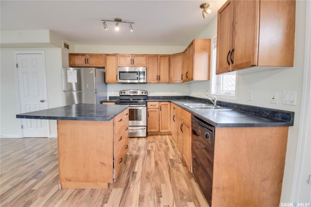 Welcome to 120 115th Street West – located in the heart of Sutherland! A 1,252 sq ft two storey home, offering 4 bedrooms total, 3 bath, and a functional layout. Stepping into the main living room – with warm laminate flooring carrying throughout to the kitchen and dining area. Kitchen provides fridge, stove, microwave hood fan, dishwasher, island and pantry for optimal storage space, and is open to your dining area. With plenty of large windows allowing natural light to flow, a 2-pc bath, and access to your back deck, completing this floor. Upstairs you will find 3 bedrooms, all with carpet flooring, and the primary giving access to the 4-pc bath + laundry. Your basement is fully finished and equipped with a bedroom, 3-pc bath with corner glass shower, kitchen containing fridge, stove and hood fan, as well as a living room with carpet and separate laundry. Utility room completes your basement. Backyard is fully fenced and features a wooden deck with black railing and built-in bench. Located in a great location – right across from Sutherland Park, walking distance to many amenities on Central Ave and quick access to Circle Drive!