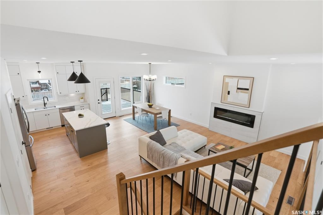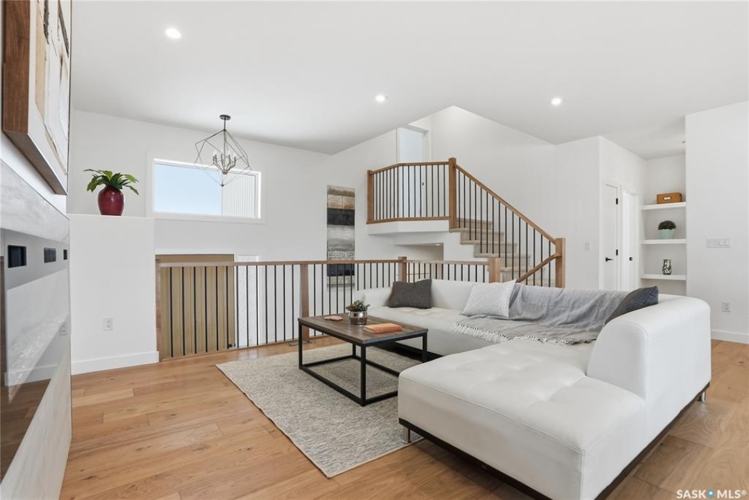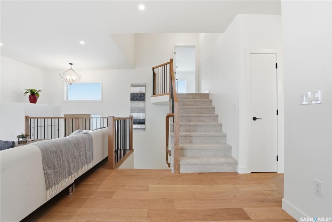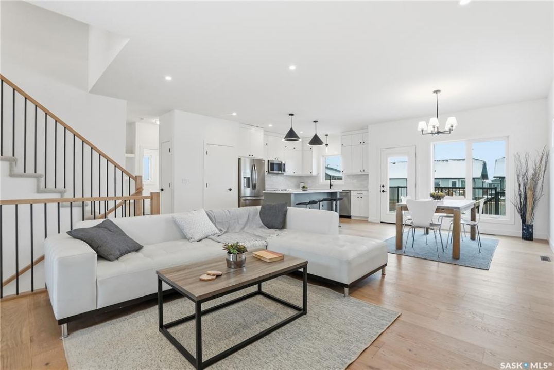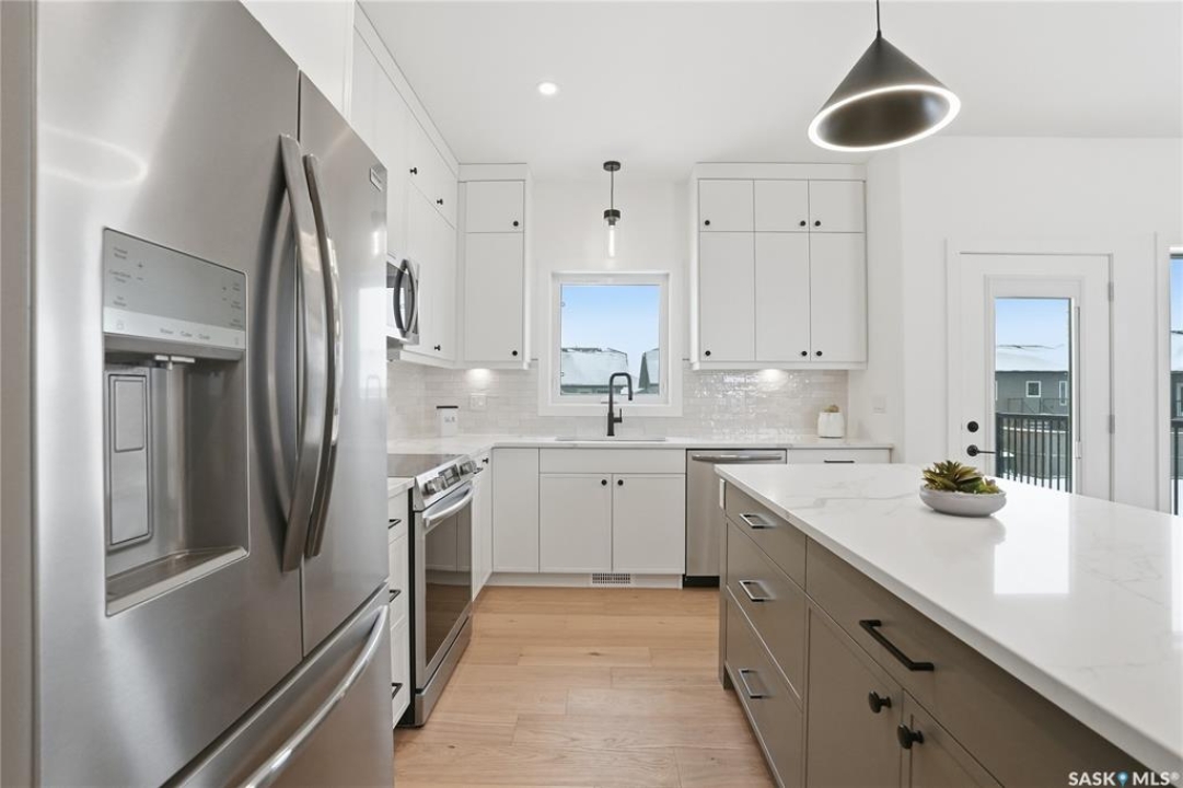 Say hello to 811 Ballesteros Crescent, where everyday living meets weekend adventure in Warman's Legends community. This Pawluk Homes modified bi-level brings undeniable presence with 1,494 square feet of polished living space, bold curb appeal, and a layout built for people who like their home to work as hard as they play. From the moment you walk in, the soaring ceilings, rich hardwood floors, and statement open staircase with custom maple railing set a confident, modern tone. The main living space is flooded with natural light and designed for connection, whether you're hosting friends or winding down after a long day, anchored by an awe-inspiring kitchen with quartz countertops, custom cabinetry, glass tile backsplash, and designer lighting that feels straight out of a magazine. The primary bedroom is your personal recharge zone, complete with a walk-in closet and sleek ensuite, while two additional bedrooms and a full four-piece bath give you room to grow, host, or work from home. Downstairs is wide open and ready for whatever comes next—think gym, games room, extra bedrooms, or a full-on theatre setup, with development quotes available to bring it all to life. Step outside and soak up the sun in the south-facing backyard, where a composite deck becomes your go-to spot for morning coffee, sunset drinks, and summer barbecues. The triple attached garage is a lifestyle upgrade all on its own, offering serious space for trucks, boats, sleds, bikes, tools, and toys, fully insulated, finished, and roughed in for heat so it's ready for all seasons. Best of all, you're minutes from Legends Golf Course, parks, and walking paths, with quick access to the highway, making spontaneous lake weekends, northern getaways, and outdoor adventures part of your regular routine. 811 Ballesteros Crescent isn't just a home, it's a launchpad for the life you want to live.