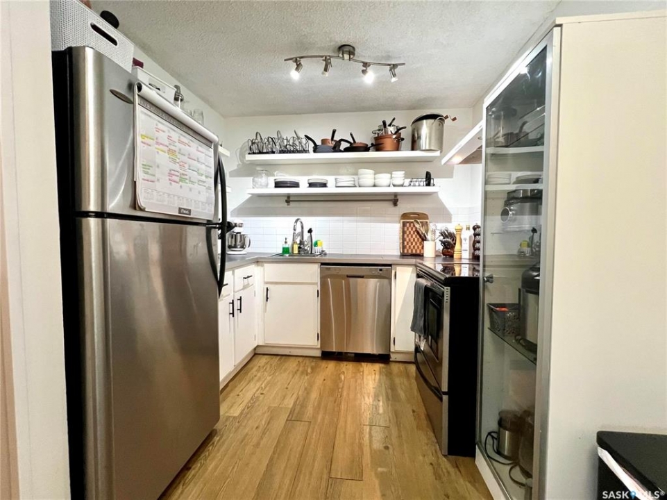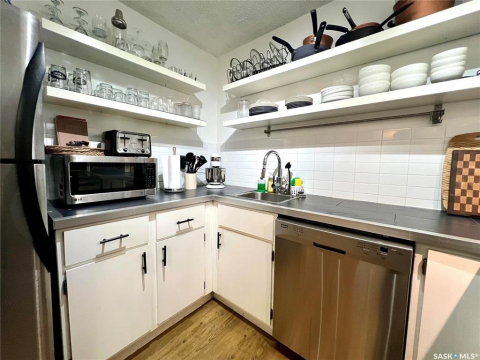 Spacious & Renovated 3-Bedroom Condo in an Excellent Location Welcome to this tastefully renovated and exceptionally spacious condo offering just under 1,100 sq. ft. of comfortable living space. Located on the second floor, this bright unit features a southeast-facing balcony, perfect for enjoying morning sun and natural light throughout the day. The well-designed layout includes three generous bedrooms and two bathrooms, including a 2-piece ensuite off the primary bedroom. The unit has been thoughtfully updated over the years and offers in-suite laundry with washer and dryer, along with all kitchen appliances included for added convenience. Additional features include an electric parking stall and access to a rooftop patio, ideal for gardening in pots or relaxing outdoors. AC unit for the warm summer days. The building is situated in a great location with easy access to the University of Saskatchewan, making it an excellent option for homeowners or investors alike. An unreal price of $189,900 for a renovated, large 3-bedroom, 2-bathroom condo in such a convenient location—this is an opportunity you don't want to miss.