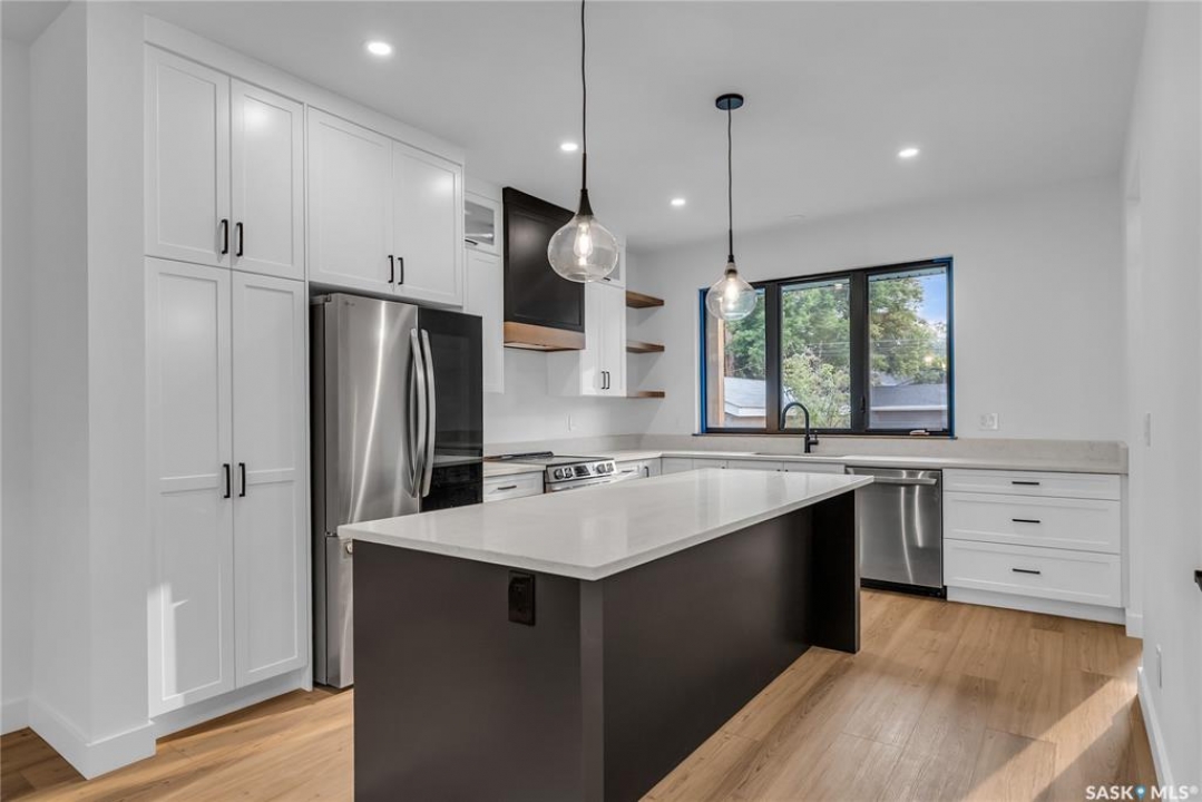 Welcome home to 1313 Edward Avenue in the desirable neighbourhood of North Park. Here you are only a short walk to river walking, schools, parks, and north end amenities! Step inside to be greeted to an open concept layout with a truly thoughtful design. The main floor opens up into a beautiful living room with east facing windows. A gas fireplace is a highlight of this space with a beautiful hearth piece over top. Dining is set ideally for entertaining with ample room for a large table and buffet space. Overlooking your yard with large oversized windows is your chef's kitchen! This space is set to make life more simple with ample counter space, plenty of custom cabinets, and a large island. The adjacent mudroom is perfect for hiding coats and shoes while leading out to the spacious backyard from a covered deck! A 2pc bathroom is also located from the mudroom tucked away. Leading upstairs you will land in a very spacious open hallway accommodating your living quarters. The main event is your master bedroom retreat! This room is overlooking the stunning mature trees and features a large walk-in closet, and a spa-like ensuite! Your personal bathroom is set with stunning tile throughout and features dual vanities, glass shower, and a large freestanding soaking tub. The second story also includes a dedicated laundry room, with storage for linens. There are 2 additional bedrooms on this floor with plenty of light and a full 4pc bathroom. The basement is undeveloped and ready for your design - Future family space, bathroom, and bedroom could be finished here to your liking. Rear alley access and room for a future double detached garage. Front concrete sidewalk is included with additional landscaping available. Fully backed by Sask New Home Warranty included with PST And GST included in the price. Call today to discuss the opportunity of this stunning home!