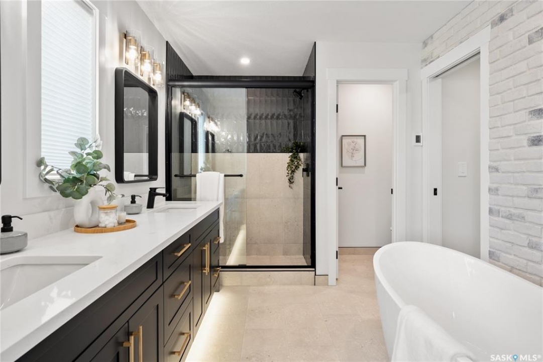 "The Queens", a 2088 square foot home, Entering the home from the oversized fully insulated garage, you step into the mudroom which is conveniently attached to the walk through pantry with lower cabinets and separate sink. The kitchen features an oversize island with eating ledge, gorgeous backsplash and gleaming quartz countertops. The great room features large windows, and oversize patio doors for an abundance of light. The fireplace is a stunning focal point in the room. The addition of the office/flex area adjacent to the front entrance is a perfect work from home space. Upstairs, the primary bedroom is spacious. The ensuite has an 8' vanity with double sinks with a generous amount of drawers for storage, a 5' custom tiled shower and stand alone tub, and a private water closet. From there, you enter directly into the walk through closet with lots of double rods and shelving for your wardrobe. Exiting the closet, you pass directly into the laundry room equipped with lower cabinets and quartz countertop and sink for easy laundry tasks. 2 additional bedrooms, a 4 piece bath and a central bonus/flex area finish this floor. All Pictures may not be exact representations of the home, to be used for reference purposes only. Errors and omissions excluded. Prices, plans, specifications subject to change without notice. All Edgewater homes are covered under the Saskatchewan New Home Warranty program. PST & GST included with rebate to builder