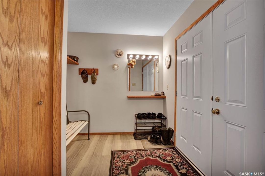 This is truly a one-of-a-kind home in Hague! With over 1,900 sq. ft. of thoughtfully designed living space, this immaculately kept bungalow is anything but average. From the moment you step inside, you'll notice the attention to detail, with the oversized entrance and a functional mudroom to the natural light streaming through the many windows. The main floor features a beautiful kitchen surrounded views of the mature trees and large deck, there is an inviting dining space, and an expansive formal dining room & front sitting room perfect for hosting family and friends. There is also a cozy living room with gas fireplace. The floor plan has been carefully modified for wheelchair accessibility, including oversized doorways, a lift in the double attached garage and a stair assist into the fully developed basement. Convenience continues with main-floor laundry and three spacious bedrooms, making daily living effortless. Downstairs, the fully developed basement offers incredible flexibility with a second kitchen—ideal for use as a nanny suite, multigenerational living, or even creating a private rental opportunity a cozy wood burning fireplace, a large bedroom, den and bathroom. In addition to the thorough maintenance there are many upgrades including new shingles, flooring, a no-maintenance vinyl fence, and a newer furnace and water heater, offering peace of mind for years to come. For parking you'll find a double attached garage, plus a second (small) detached single garage—perfect for extra storage or a workshop. With its thoughtful accessibility features, versatile spaces, and impeccable upkeep, this home is truly one of a kind and must be seen to be appreciated. Contact your favourite REALTOR � today to book your private showing!