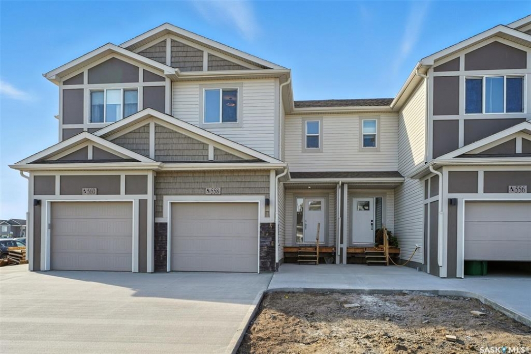 Ehrenburg Homes is the 2025 Builder of the Year! Ehrenburg Homes! New Townhomes in Aspen Ridge – Quality. Style. Value. Discover your dream home in this exciting new Aspen Ridge townhome project by Ehrenburg Homes. Proven floorplans ranging from 1517–1530 sq. ft., A well designed thoughtful layout with high-end finishes throughout. Main Floor Highlights: • Durable Hydro Plank wide flooring throughout • Open concept layout for a fresh, modern vibe • Superior custom cabinetry with quartz countertops • Sit-up island and spacious dining area • High-quality closet shelving in every room Upper Level Features: • 3 comfortable bedrooms • BONUS ROOM – perfect second living room • 4-piece main bathroom • Convenient upper-level laundry • Spacious primary bedroom with walk-in closet and stunning 4-piece ensuite featuring dual sinks Additional Features: • Triple-pane windows, high-efficiency furnace, heat recovery ventilation system • Central vac rough-in • Attached garage with concrete driveway & sidewalks • Landscaped front yard + back patio included • Basement is framed, insulated, and ready for development • Saskatchewan New Home Warranty enrolled • PST & GST included in price (rebate to builder) • Finishing colors may vary by unit Don't miss your chance to own one of these beautifully crafted homes in one of Saskatoon's most sought-after communities.