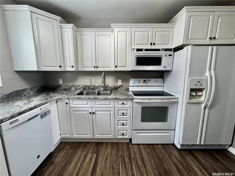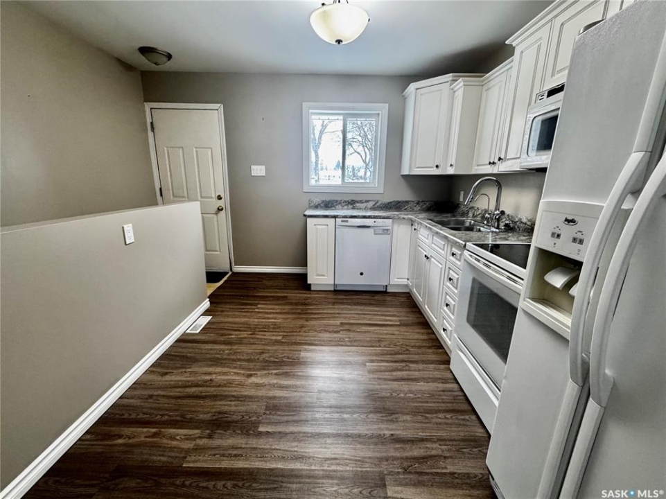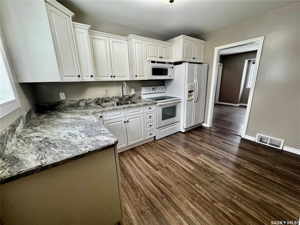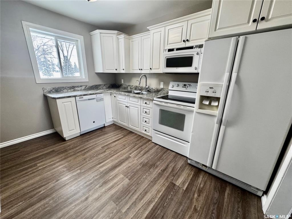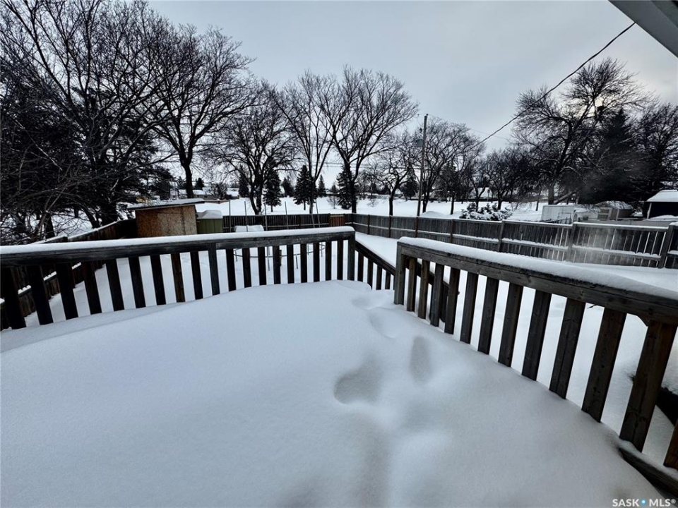 Immediate Possession Available! Welcome to 159 Peaker Avenue in Yorkton SK. Driving up to the property you will find off street parking for up to 3 vehicles. Entering the home from the west entry door will bring you to a porch area. A few steps over will take you into the large living room with west facing window. The kitchen area features included fridge, stove, microwave, and dishwasher. The east facing windows allows a great view of the back yard and green space known as Roslyn Hill. The kitchen also has direct entry to the east facing deck (12x16). The flooring in the kitchen and living room were updated in 2021 with Vinyl Plank Flooring. There are two good sized bedrooms on the main floor with updated flooring (Vinyl Plank Flooring 2017). The 4 piece bathroom completes the main floor living space. The stairs to the basement are carpet and lead to an extra large rec room. Part of the rec room area can be sectioned off for a bedroom or office area. The rec room area also has new Vinyl Plank Flooring (2018). The rest of the basement is used for laundry, utility, and storage. The laundry area features included washer and dryer. The utility area features HE Furnace with Central Air (2017), Updated 100 AMP Electrical Panel, Water Heater, Water Softener (2022), and RO System. The extra large back yard is fully fenced with entry points to the back alley, and front driveway. Enjoy outdoor living on the 12x16 deck with direct entry to the kitchen. The shingles were done in 2023. The street is generally quieter with friendly neighbours. Enjoy year round activities at the famous Roslyn Hill, known for a popular toboggan hang out in the winter and a beautiful green space in the warmer months. This property is not for rent or rent to own.
