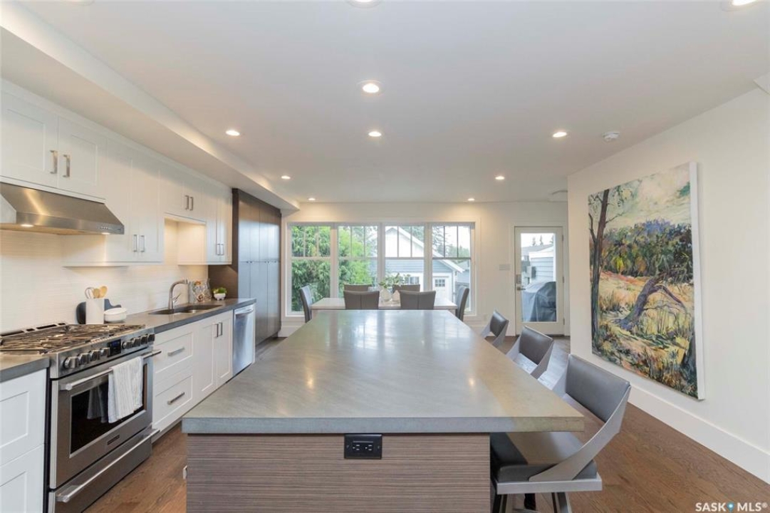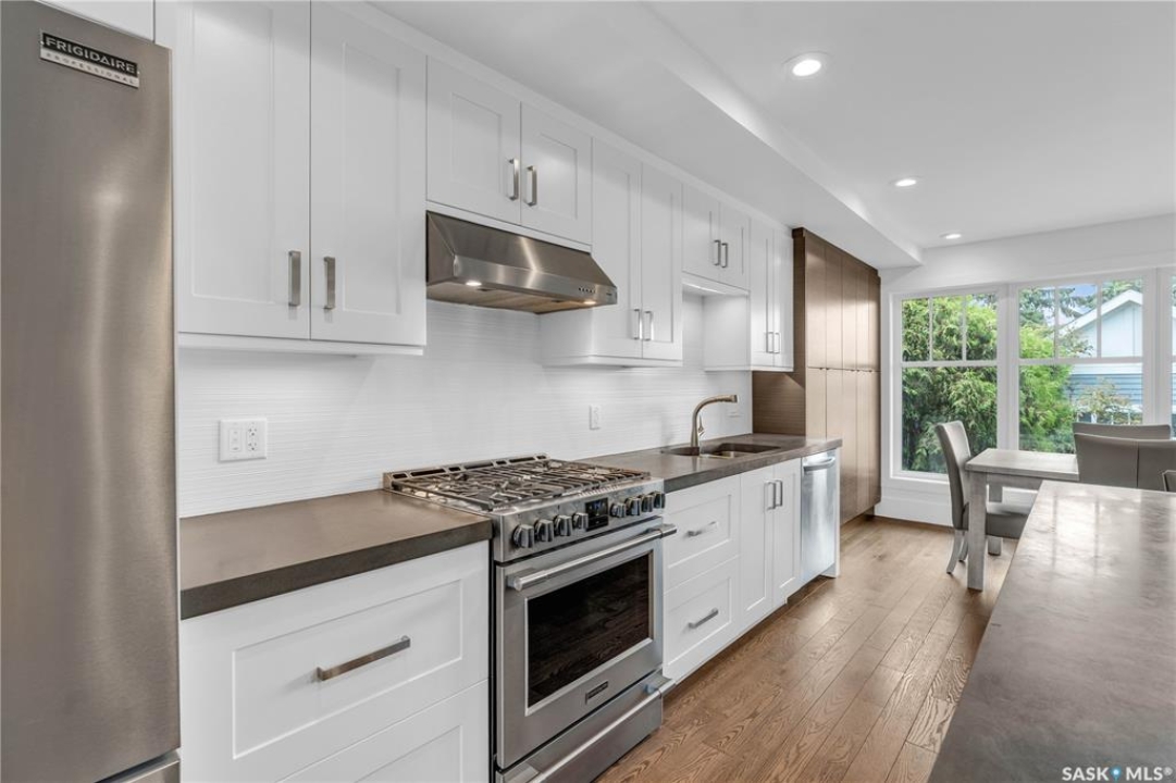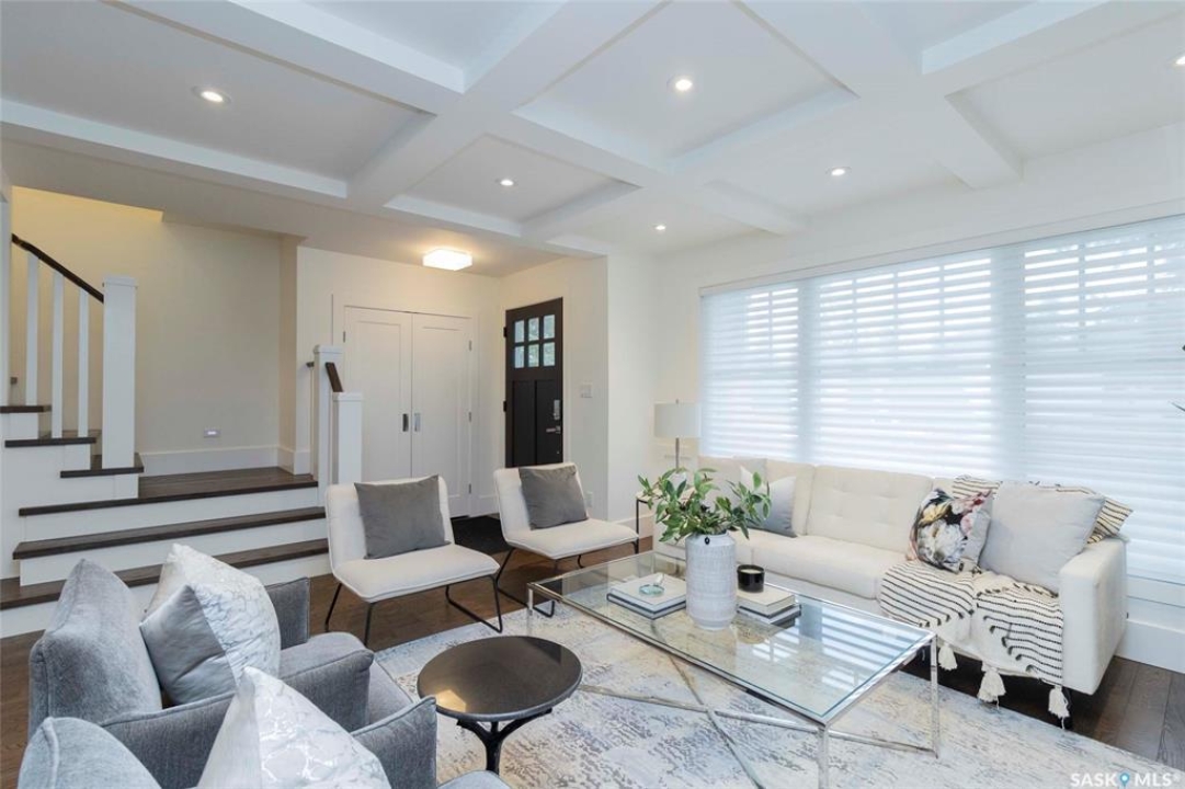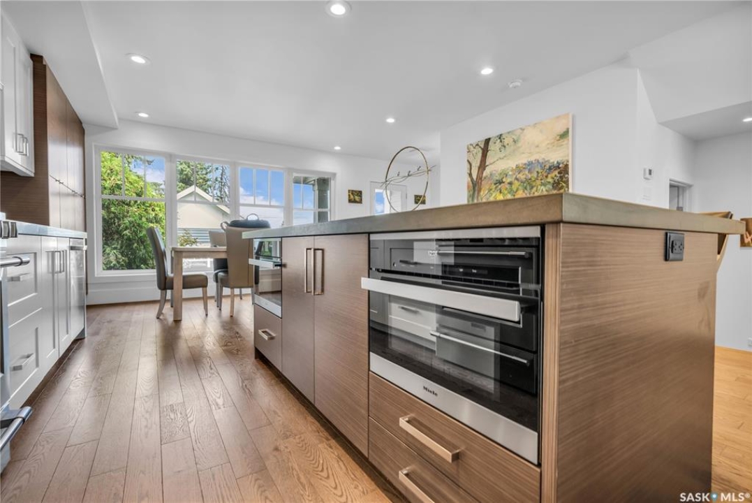 Welcome to 1315A 11th St E, a thoughtfully designed Craftsman-style home that blends timeless elegance with modern energy efficiency. This home is built with high quality finishes, and you can see it in the details. The main floor boasts a chef's kitchen with custom cabinetry, a large island topped with 2" bluestone, and premium appliances including a gas range, and Miele speed and steam ovens. The bright living room features coffered ceilings, a gas fireplace with masonry surround, and large south-facing windows. Upstairs, the primary suite includes vaulted ceilings, skylights, and a spa-inspired ensuite with a walk-in tile shower. The bathrooms feature floating bluestone vanities, with a jet tub in the main bath. The spacious secondary bedrooms offer ample storage with built-in shelving and in-closet lighting. The basement is filled with natural light thanks to oversized windows and timber-framed window wells, and includes a home office, family room, and generous storage. Oriented to maximize passive solar gain, the home features natural materials, radiant in-floor heating on all levels, dual insulation (spray foam and reflective), and an offset stud wall system to eliminate thermal bridging. The professionally landscaped yard is finished with bluestone tile, LED lighting, and low-maintenance micro-drip irrigation. A heated, insulated double garage provides space for two vehicles, plus an additional driveway in front and parking behind the garage. A rare blend of beauty, efficiency, and craftsmanship in a prime location!