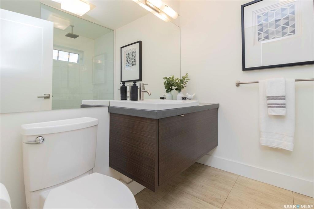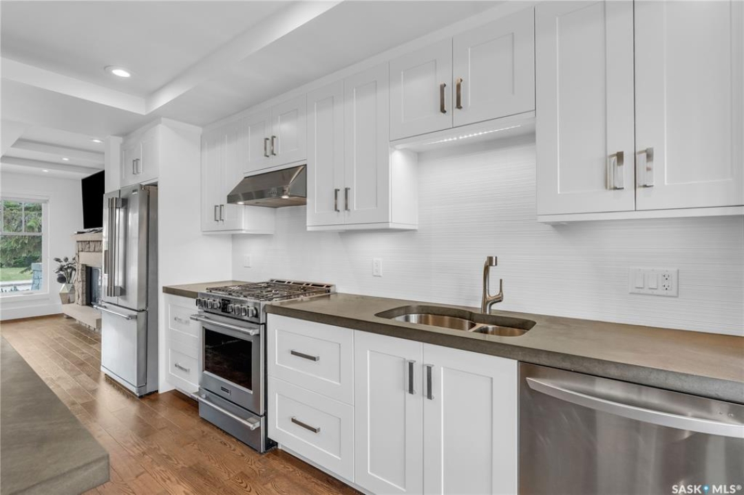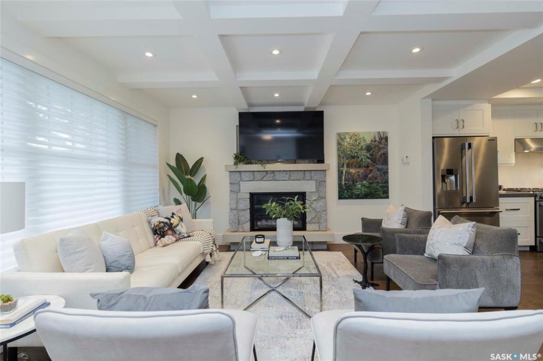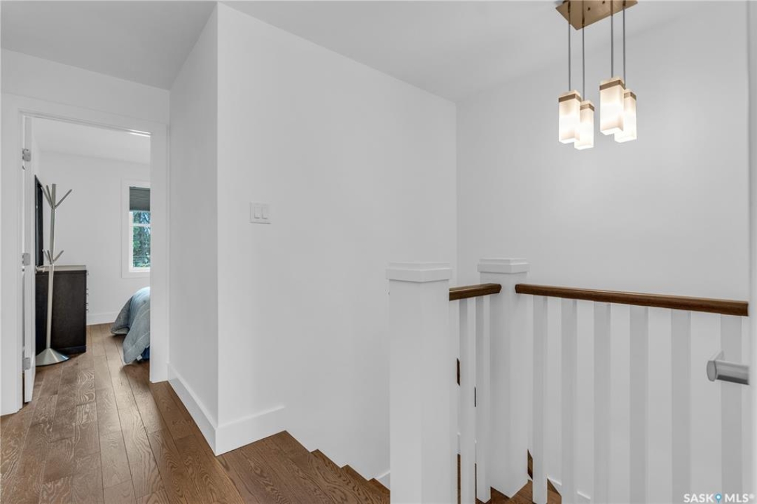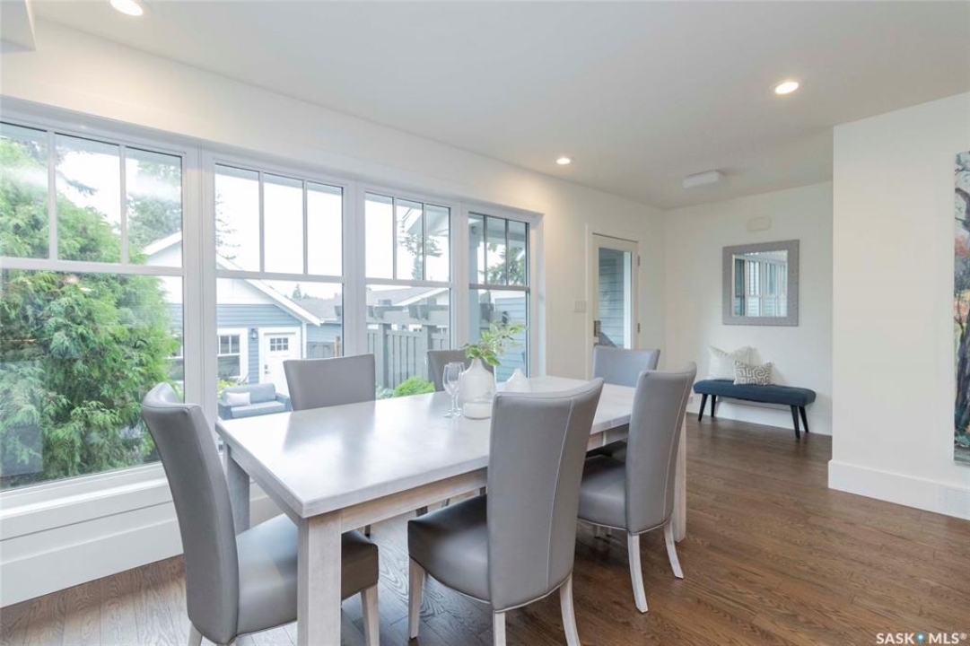 Welcome to 1315A 11th St E, a thoughtfully designed Craftsman-style home that blends timeless elegance with modern energy efficiency. This home is built with high quality finishes, and you can see it in the details. The main floor boasts a chef's kitchen with custom cabinetry, a large island topped with 2" bluestone, and premium appliances including a gas range, and Miele speed and steam ovens. The bright living room features coffered ceilings, a gas fireplace with masonry surround, and large south-facing windows. Upstairs, the primary suite includes vaulted ceilings, skylights, and a spa-inspired ensuite with a walk-in tile shower. The bathrooms feature floating bluestone vanities, with a jet tub in the main bath. The spacious secondary bedrooms offer ample storage with built-in shelving and in-closet lighting. The basement is filled with natural light thanks to oversized windows and timber-framed window wells, and includes a home office, family room, and generous storage. Oriented to maximize passive solar gain, the home features natural materials, radiant in-floor heating on all levels, dual insulation (spray foam and reflective), and an offset stud wall system to eliminate thermal bridging. The professionally landscaped yard is finished with bluestone tile, LED lighting, and low-maintenance micro-drip irrigation. A heated, insulated double garage provides space for two vehicles, plus an additional driveway in front and parking behind the garage. A rare blend of beauty, efficiency, and craftsmanship in a prime location!