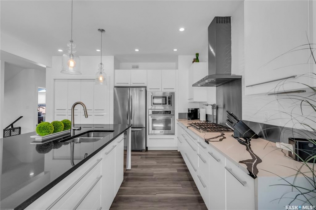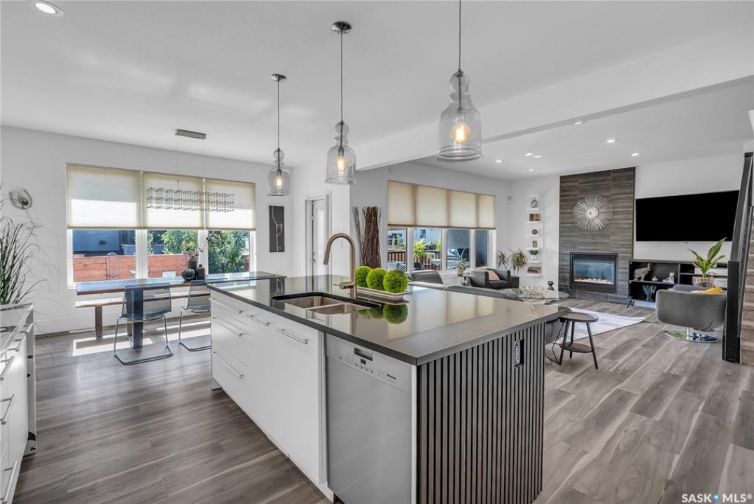 Welcome to 231 Atton Court, an exceptional custom built home in Evergreen, perfectly positioned near the Forestry Farm and surrounded by walking paths, parks, and mature greenery. Thoughtfully designed and meticulously crafted, this residence is sure to impress. The main floor offers a bright front office with built in desk and shelving, an ideal work from home setup, along with a stylish 2 piece bath and a well planned mudroom with abundant storage. The heart of the home is the stunning open concept living space. A gourmet kitchen anchors the room with a gas range and direct vent, pot filler at the stove, a massive quartz island with waterfall edges, and a breakfast bar. The dining area flows seamlessly into the inviting living room, complete with a warm gas fireplace and large windows. Outdoor living is elevated with a covered deck featuring natural gas for your BBQ, a lower patio area, pergola, artificial turf for low maintenance enjoyment, and a relaxing hot tub. Upstairs, the second floor offers impressive scale with 9' ceilings and an ideal family layout. Two generous bedrooms sit alongside a dedicated laundry room, and a bonus office nook provides the perfect spot for homework or quiet work. The primary suite is a true sanctuary featuring an electric fireplace, expansive walk in closet, and a luxurious five piece ensuite with double sinks, an air jet tub, and an oversized walk in, doorless double shower. The fully developed basement extends the living space with two additional bedrooms, a full bathroom, and a large family room designed for movie nights, complete with projection wiring. Additional highlights include an oversized finished double attached garage with an overhead door leading to the backyard, an ICF foundation, triple pane windows throughout, and 9' ceilings on all three levels, creating a bright, airy atmosphere in every room. Homes like this rarely come to market. Welcome home.