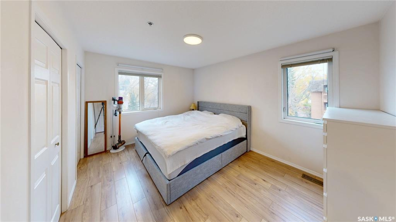 Welcome to this well-kept corner unit in the heart of Regina's sought-after Cathedral neighbourhood. Ideally located just steps from the vibrant downtown core and only a short walk to Wascana Lake, you'll enjoy easy access to restaurants, bike and walking paths, the museum, Wascana Pool and all the outdoor amenities of Wascana Centre. The entryway opens to a spacious kitchen with plenty of cupboard storage, generous counter space, and some newer appliances. Just off the kitchen, a large laundry room provides excellent additional storage or potential pantry space. The layout offers great separation between the two bedrooms, each located at opposite ends of the unit. Between them sits a bright living and dining area with a comfortable, open feel. A full four-piece bathroom completes the interior. As a corner unit, you'll appreciate both west- and north-facing windows, filling the space with natural light throughout the day. The west-facing balcony is perfect for catching evening sunsets, and has access to the utility room for the unit which houses the furnace and provides a bit more heated storage space. The building features a shared second-floor courtyard, ideal for relaxing or visiting with neighbours, and secure underground parking adds comfort through all seasons. If you're looking for a well-situated home close to downtown conveniences and scenic Wascana Park, this Cathedral-area condo should be on your list to view!