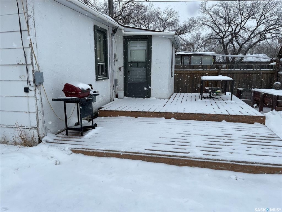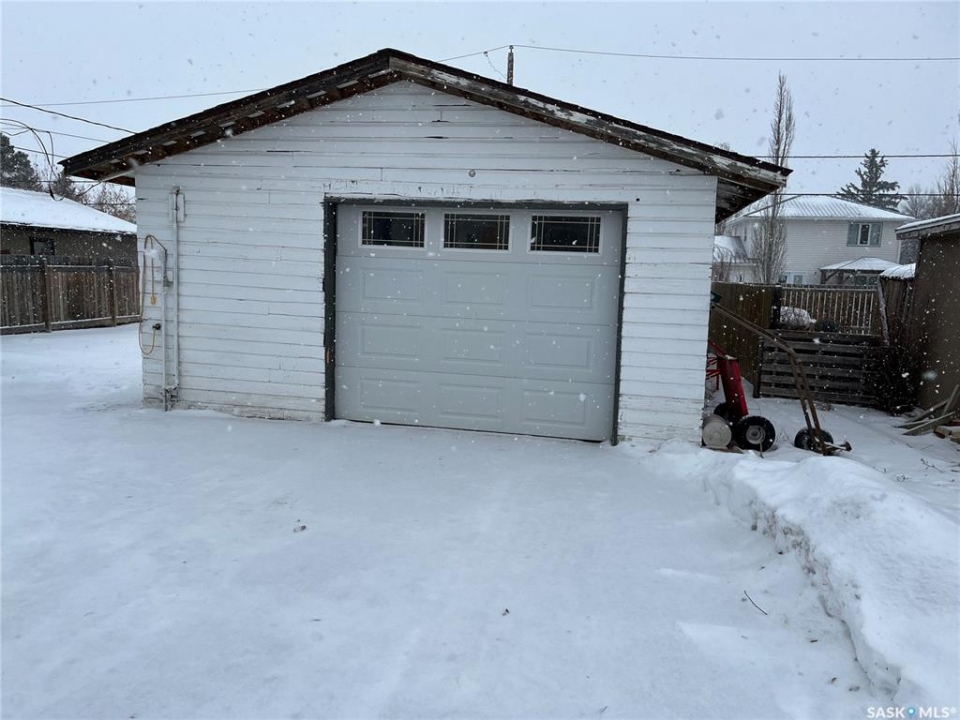 Nice property situated right on 1st Avenue and right across from the school!! This little home could be exactly what your are looking for with a huge garage which can fit 2 vehicles in with lots of storage and space to work on stuff if needed, a nice deck on the back of the house to relax on, hardwood floors in some rooms and a nice porch to walk into and take your wet footwear off. Situated in beautiful Town of Gravelbourg the town has much to offer from schools, churches, Hospital, doctor's offices, grocery store, restaurants, stores, gas station, pharmacies and much more. Hurry to book your private viewing today!!