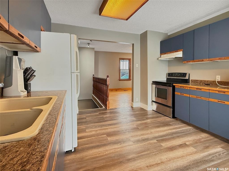 Welcome to 120 Central Ave. S., an ideal starter home or downsizing opportunity featuring an exceptional 22' x 28' heated and insulated garage. Situated on the south side of Swift Current, this property offers unparalleled convenience—just blocks from the overpass to downtown and the college, near Co-op grocery store/gas station, multiple parks, the creek, walking path, golf course, outdoor pool, and skating rinks. Step inside to discover a semi-open concept floor plan. The bright front living room sits at the front of the home, complemented by a spacious primary bedroom adjacent. The generous kitchen boasts abundant cabinetry with room for a potential island. A second bedroom is located at the rear, alongside a renovated four-piece bathroom. The large back porch provides access to the deck and expansive yard. The partially finished basement includes a den/office space and a family room. The utility/laundry area features an updated water heater (installed November 2025), energy-efficient furnace, central air conditioning, 100-amp electrical panel, and ample storage. The oversized 50' x 130' lot is partially fenced and includes a substantial deck. The standout feature is the 22' x 28' garage—insulated, heated, and equipped with two 220V outlets. Additional amenities include underground irrigation, a dog run, shed, and plenty of outdoor space. For more information or to book your personal viewing please contact today.