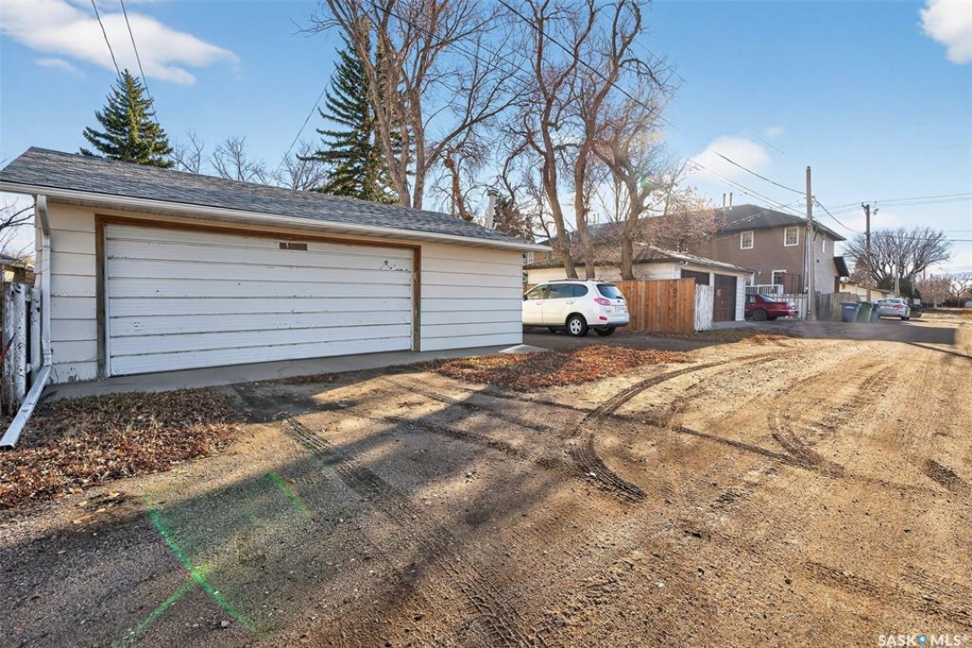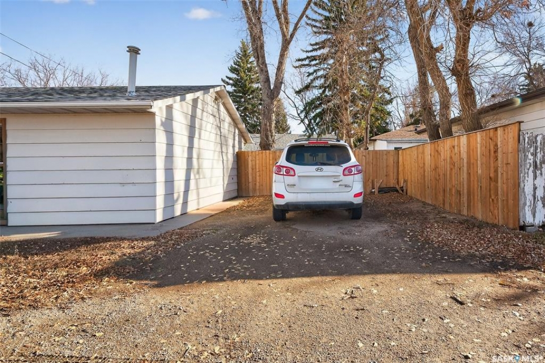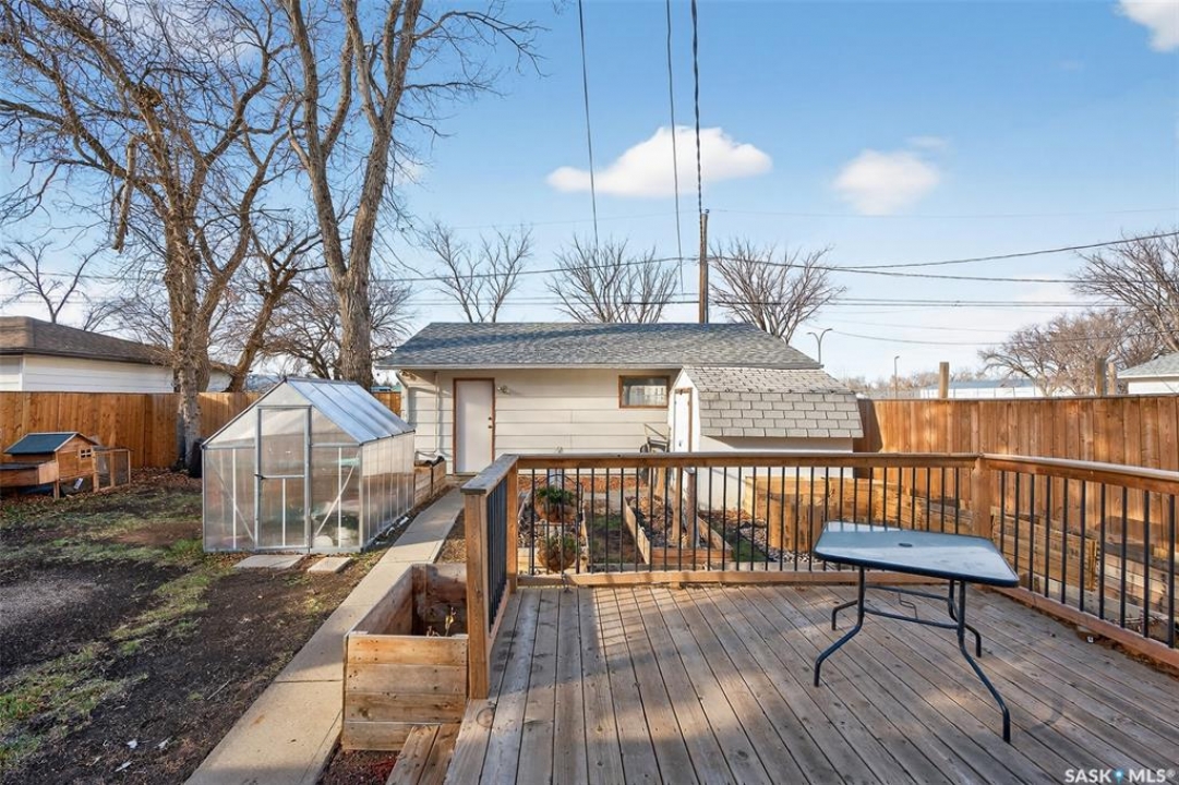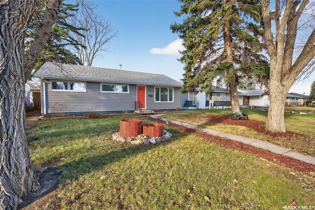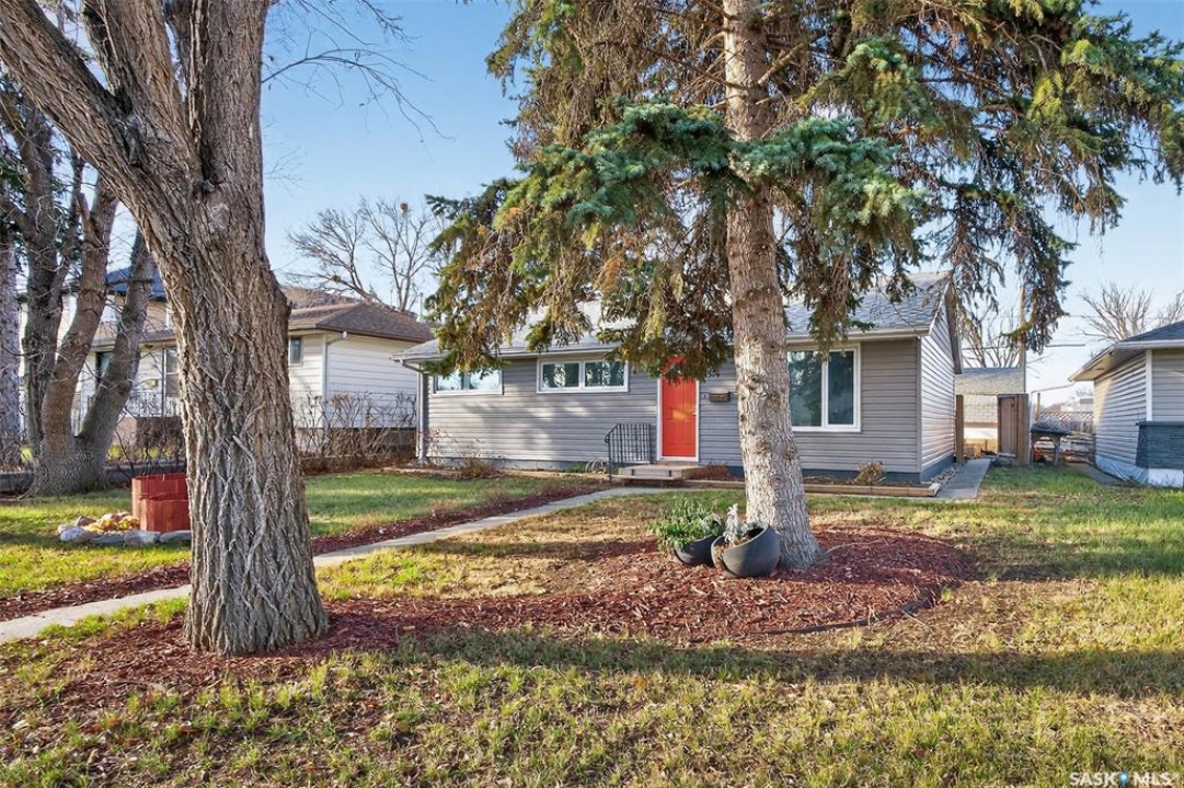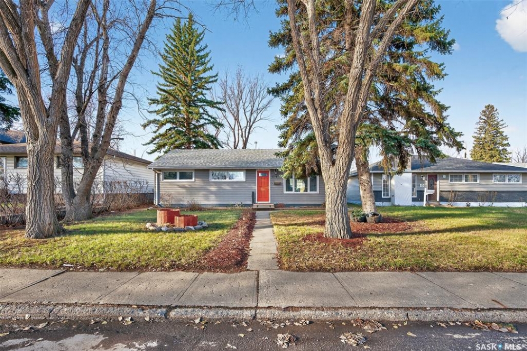 Are you looking for a beautifully updated 950 sq.ft. 3 bed / 1 bath slab home with a large garage near Saskpoly? You won't want to miss this one! Excellent curb appeal as you arrive with mature trees out front - just steps away from the college. Heading inside you are greeted by an open concept living area! The living and dining spaces flow together nicely - you are sure to love the pine ceilings. Off the dining space you have patio doors leading to a large deck - the perfect spot for your morning coffee! The updated U-shaped kitchen boasts lots of cabinets and counter space! Down the hall we find 3 bedrooms and a four piece bathroom as well as a separate laundry room. Outside we find a private backyard that is fully fenced! There is also an oversized heated double car garage (24'x28') as well as extra parking next to it! If you are looking for living all on one level - you won't want to miss this one! Reach out today to book your showing!