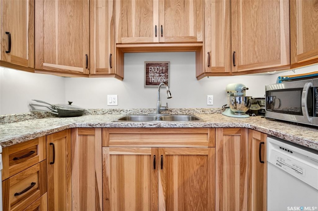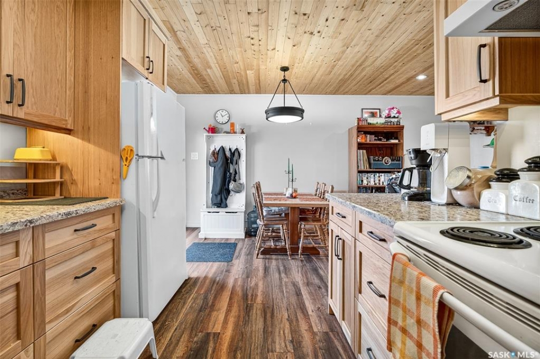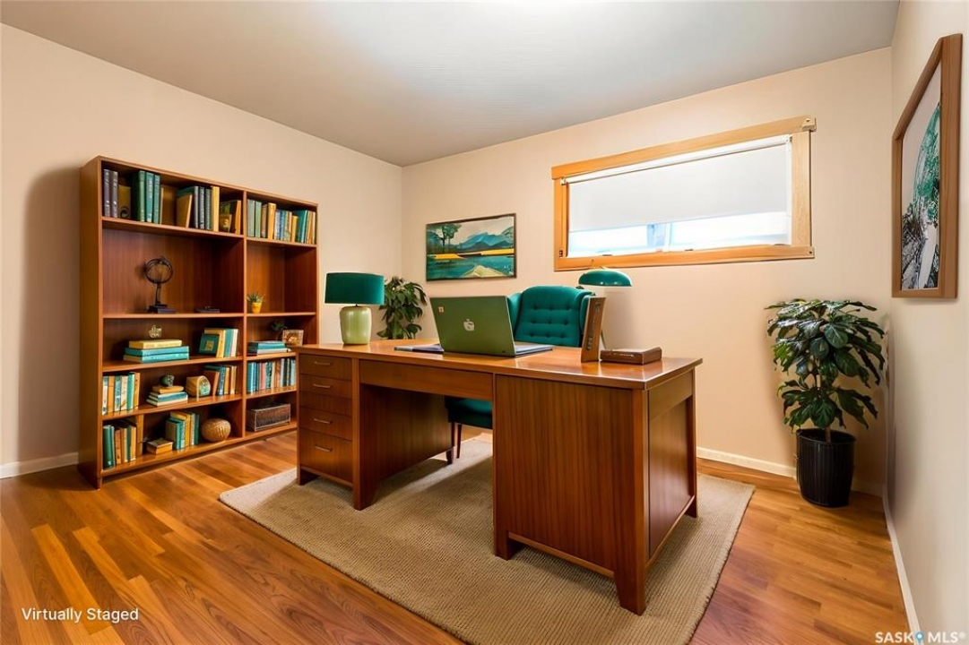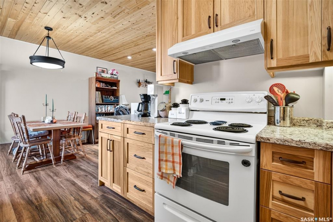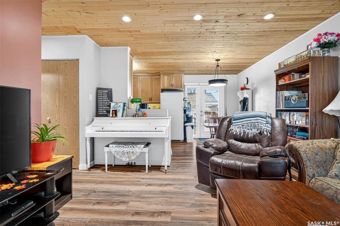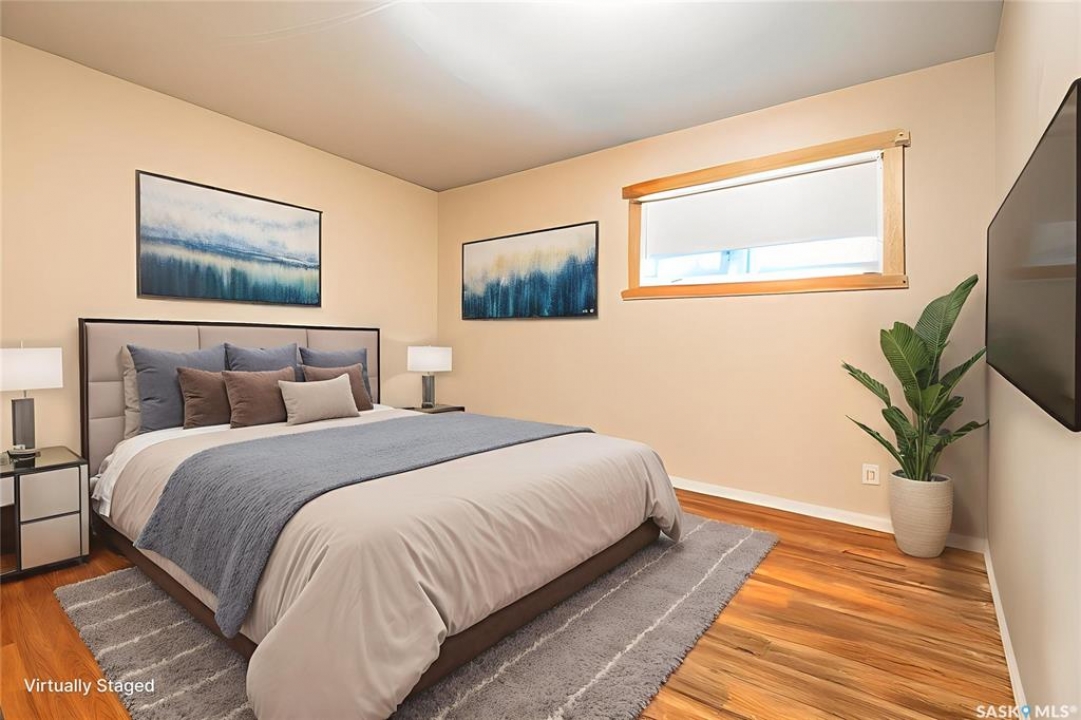 Are you looking for a beautifully updated 950 sq.ft. 3 bed / 1 bath slab home with a large garage near Saskpoly? You won't want to miss this one! Excellent curb appeal as you arrive with mature trees out front - just steps away from the college. Heading inside you are greeted by an open concept living area! The living and dining spaces flow together nicely - you are sure to love the pine ceilings. Off the dining space you have patio doors leading to a large deck - the perfect spot for your morning coffee! The updated U-shaped kitchen boasts lots of cabinets and counter space! Down the hall we find 3 bedrooms and a four piece bathroom as well as a separate laundry room. Outside we find a private backyard that is fully fenced! There is also an oversized heated double car garage (24'x28') as well as extra parking next to it! If you are looking for living all on one level - you won't want to miss this one! Reach out today to book your showing!