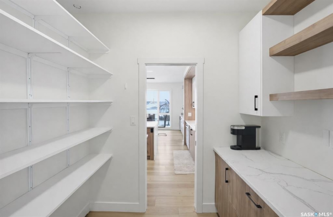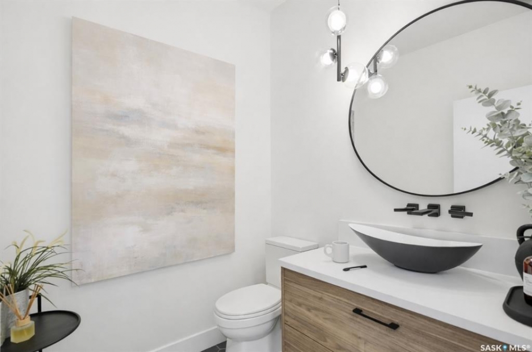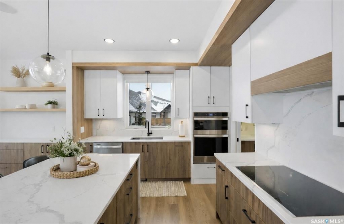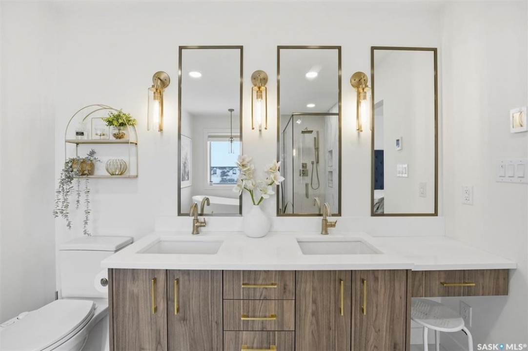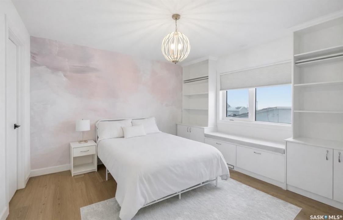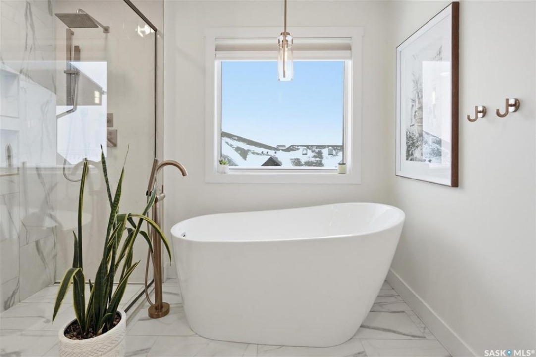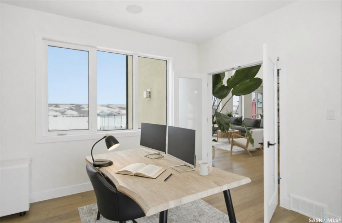 Lakefront modern luxury, just minutes south of Saskatoon — close to 4000 sq feet of living space, with all the bells and whistles! Offering 2,609 sq. ft., this stunning two-storey, fully developed walkout sits on an exceptional �-acre lot with panoramic lake views and direct lake access, creating a lifestyle truly dreams are made of. This custom-built masterpiece features 4 bedrooms and 4 bathrooms, a triple heated attached garage with drive-through bay, plus an additional double detached shop — a rare, sought-after combination. Inside, expansive full-height windows flood the home with natural light while showcasing breathtaking lake views. Professional, show-stopping design is evident throughout, with high-end finishes including a sleek white and walnut custom chef's kitchen, double-height ceilings on the main floor, soaring 2 story feature fireplace feature in living room, and extensive glass railings framing a dramatic staircase, second-floor overlook, and spacious bonus room. The main level includes very open and spacious living and dining areas, a walk-through butler's pantry, equipped boot room, 1/2 bath, and a large light-filled office/den. The upper level offers a luxurious primary suite with a second fireplace and spa-like 5 piece bath, two generously sized bedrooms, large main bath, and a spacious bonus room. The fully developed walkout lower level adds more luxurious space, featuring a wet bar, family room, games area, gym/den, fourth bedroom/guest suite, and a four-piece bathroom. Additional upgrades and features include an induction cooktop, pot filler, quartz countertops throughout, high-end flooring, tile work, and millwork, two fireplaces, sound system and security rough-ins, smart-home (roughed in), a zoned furnace system, grid-tied 8kW solar panels, in floor heat in 2 baths, detached double shop 30x26, a gravel front drive, more. An extraordinary lakefront home, just minutes from the city.