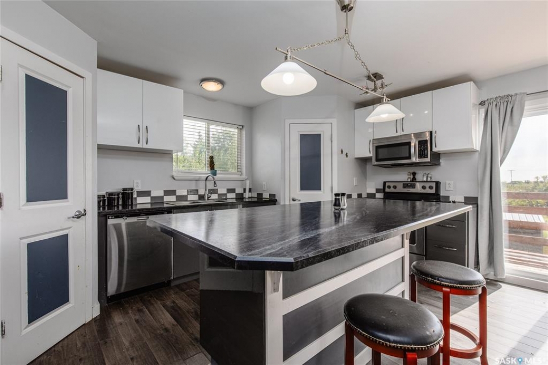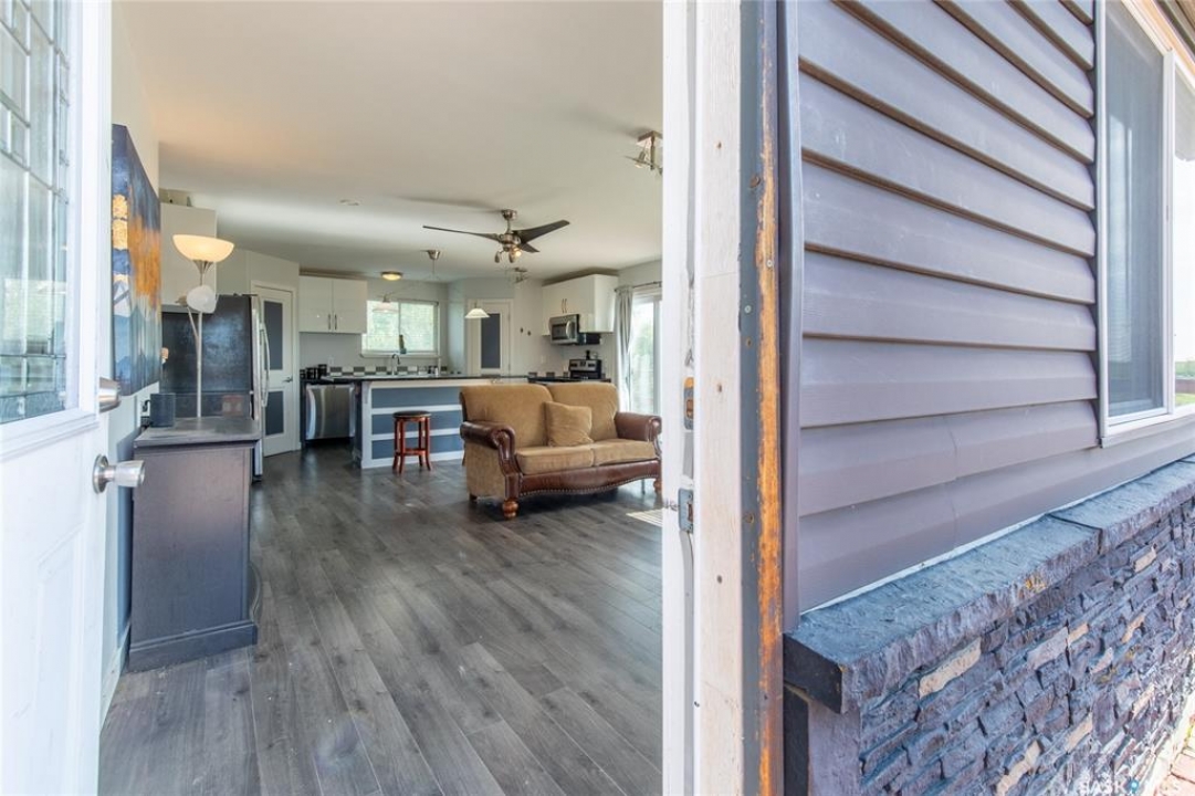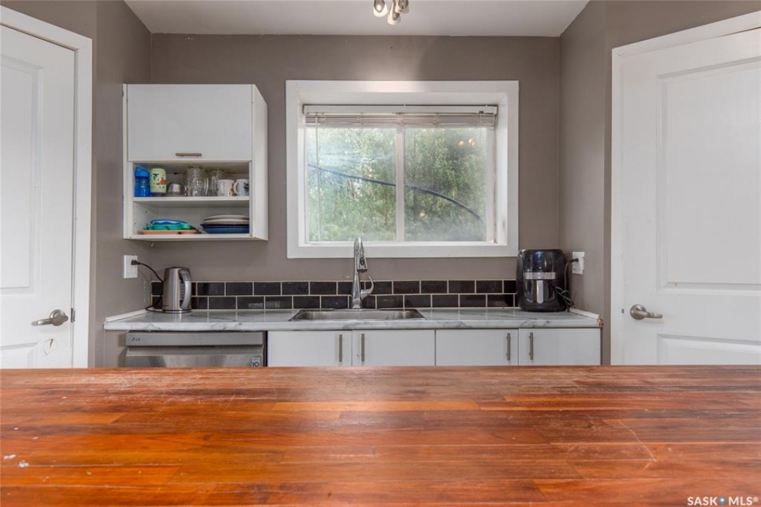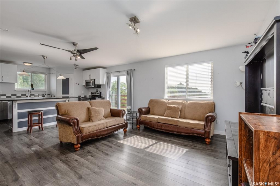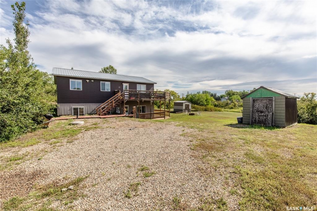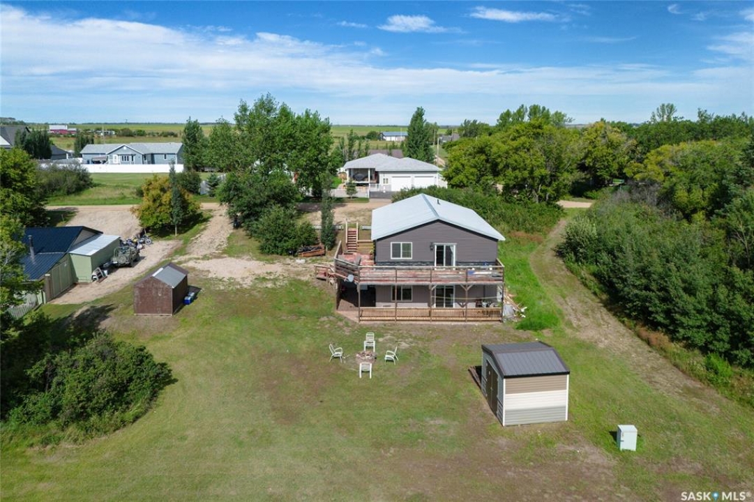 Built in 2014, this bungalow offers two fully developed levels, each 1,130 sq ft, with separate and self-contained living spaces. Both the main and lower levels include three bedrooms, two bathrooms (including an en suite), an open concept full kitchen, a living room, and dining area, a dedicated laundry, and private entrances. The main level features a large wraparound deck on the south and west sides, while the lower level includes stamped concrete flooring with in-floor heating and a walkout basement. Situated on two lots and backing onto open green space, this property offers a rural feel with the convenience of nearby amenities (5 km to Caronport, 29 km to Moose Jaw). The versatile layout makes it well-suited for multi-generational living or rental potential. Book your viewing today!