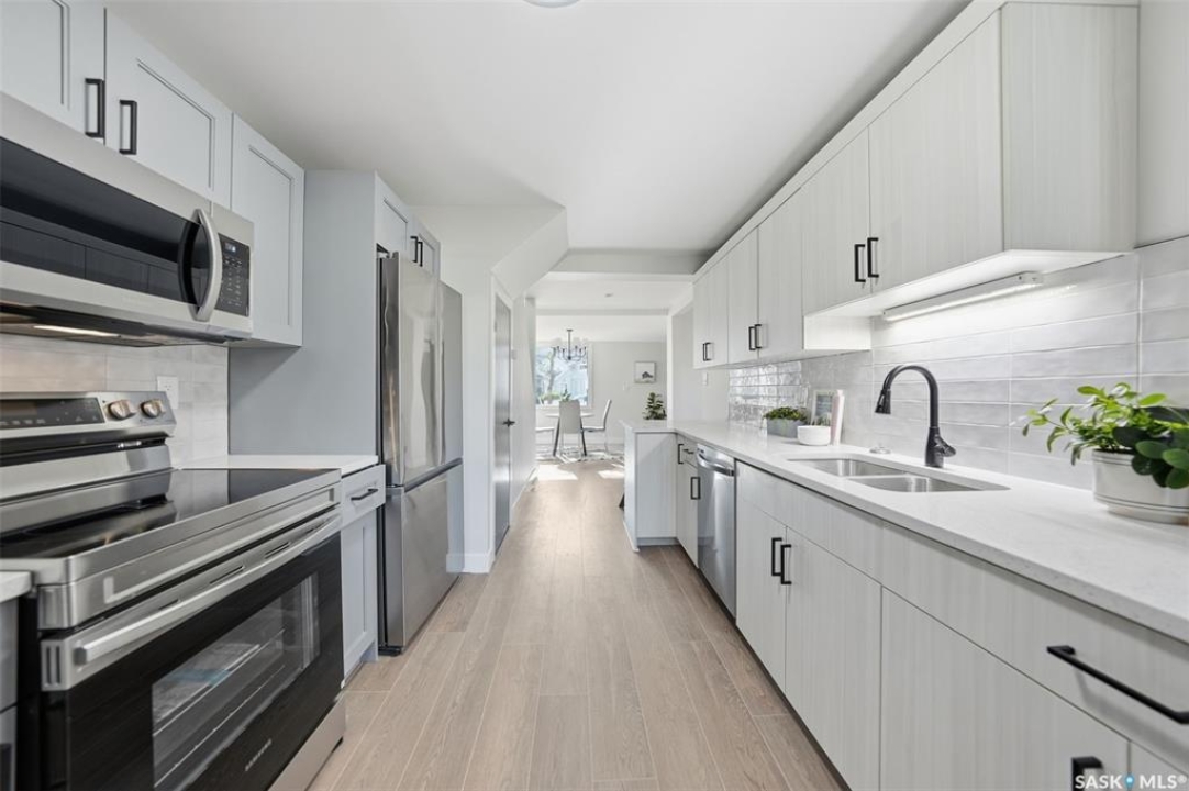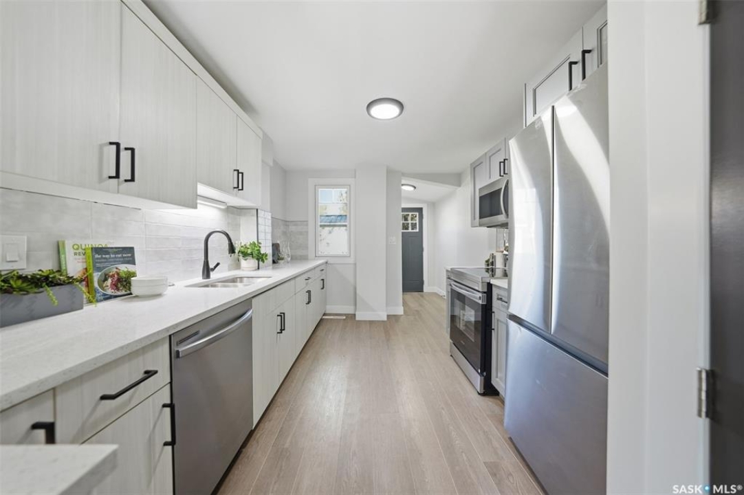 Location! Location! Location! Welcome to this beautifully refinished over 1,300 sq.ft. two-storey home, perfectly positioned steps from parks, tennis courts, basketball courts, and endless outdoor amenities. Backing directly onto greenspace, a dog park, and community swimming area with waterslide, this property delivers the lifestyle you've been waiting for. Inside, you'll find a unique, light-filled floor plan offering 3 bedrooms and 2 bathrooms, thoughtfully updated throughout. The freshly refinished interior blends charm with modern comfort, featuring brand-new appliances, quartz countertops in the kitchen, and a stylish coffee bar in the living room — perfect for morning routines or entertaining guests. Curb appeal shines with an upgraded exterior, while the expansive backyard is designed for year-round enjoyment. It includes a concrete patio, large shed, firepit area, concrete walkway from the house to the garage, and is fully fenced for privacy and pets. A rare highlight is the oversized, double, heated detached garage, offering exceptional storage, workspace, or winter parking convenience. This home is now vacant and move-in ready — simply unpack and start living. Don't miss this incredible opportunity to own in a prime location with unbeatable amenities right outside your door!