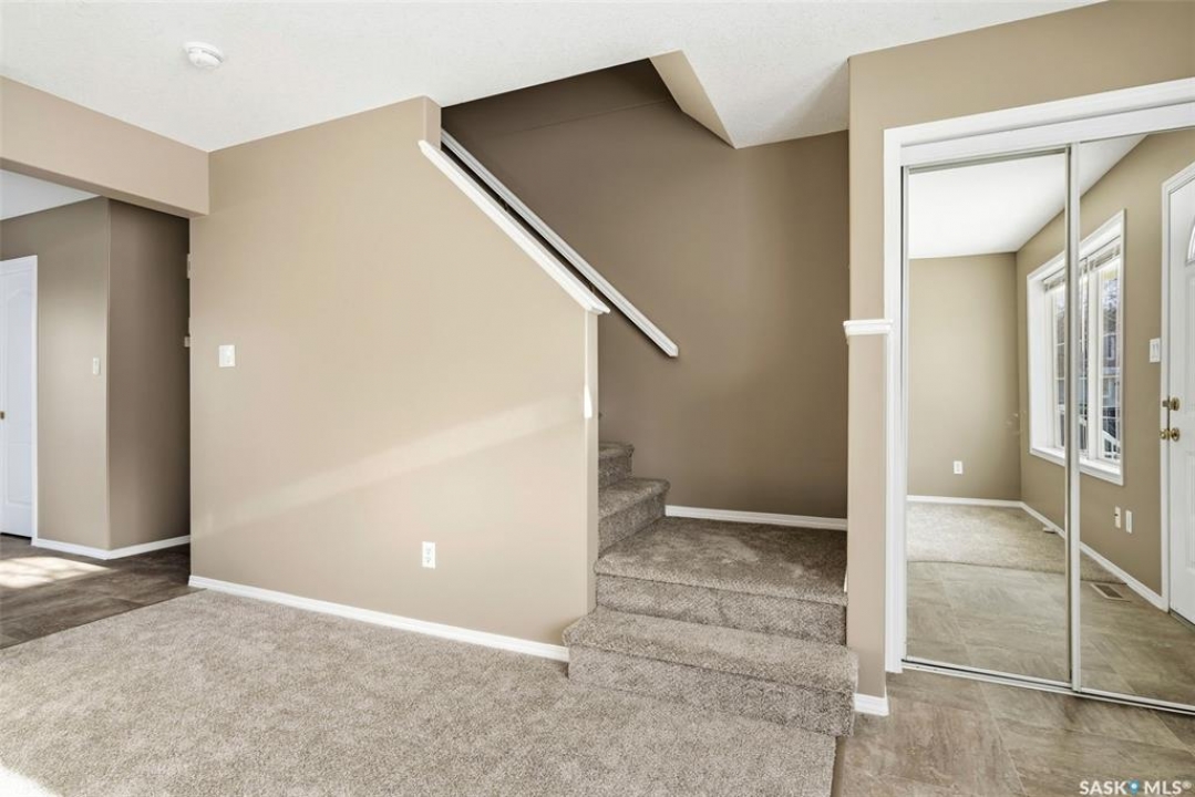 Welcome to 2748 Cranbourn Crescent, a well-kept townhouse located in the desirable neighbourhood of Windsor Park. This multi-level condo offers 944 sq. ft. above grade with a functional layout that blends comfort and convenience. The bright main floor features a spacious living room with a large picture window, perfect for natural light and everyday living. The kitchen and dining area provide ample cabinetry, a built-in dishwasher, pantry and space for family meals, with direct access to the back patio for outdoor entertaining and summer barbecues. Upstairs, you'll find two comfortable bedrooms and a 4-pc bathroom. The basement is unfinished, offering great potential for future development as a rec room, home office, or storage area. Laundry is conveniently located in-unit. This home comes equipped with a fridge, stove, washer, dryer, and dishwasher, along with window treatments. Enjoy the benefits of condo living with lawn care, snow removal, common insurance, reserve fund contributions, and exterior building maintenance included in the monthly condo fees. Outside, you'll find a private patio, partially fenced yard, and one exclusive parking stall. Located close to parks, schools, paths, shopping, and all east-end amenities, Cranbourn Crescent carries a friendly, family vibe—one of those streets that instantly feels like home. Affordable, well-kept, and tucked into a quiet corner of east Regina, don't miss your chance to make 2748 Cranbourn Crescent your own!