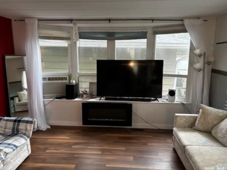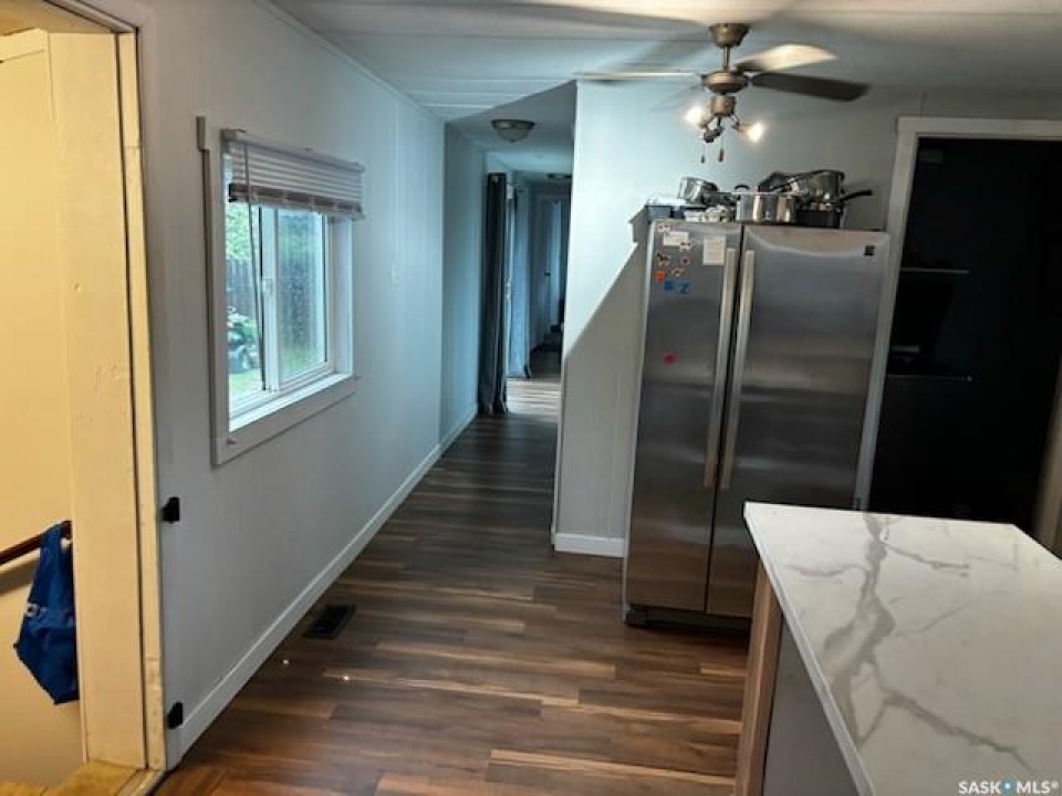 If you are looking for one of the largest AND fenced lots in the Caronport Mobile Home Park, then you will want to take a look at this one!. As you step into the Mobile Home, you will be happy to be greeted by a good sized boot and coat room. Then on up to 'the main trailer and you walk into an attractive kitchen equipped with Stainless Steel appliances and a Breakfast Bar. The laundry room is right off the kitchen area. The Living Room area is a bright welcoming area with lots of natural light flooding in. There are 2 Bedrooms and 1 upgraded bathroom. There is access to this bathroom from the Primary Bedroom as well as the hallway. This mobile provides access to your yard through a set of patio doors in the hallway near the bedroom end of the mobile. This is one of the mobiles at Caronport that DOES offer a single garage for your enjoyment. And as mentioned, you will be pleased as you explore this spacious yard. The Village of Caronport also has a lot to offer with its Elementary and High School, plus Bible College and Seminary. And, the location is just 15 minutes down the Trans Canada to the Friendly City of Moose Jaw! Call for more details and to book your viewing appointment!
