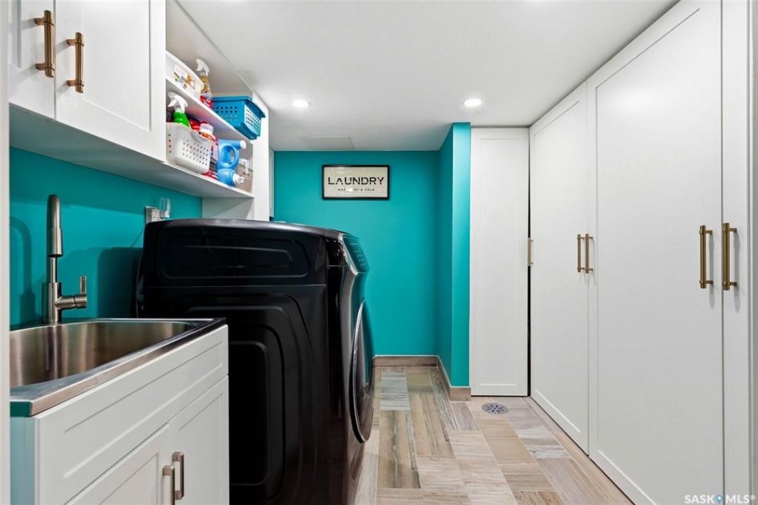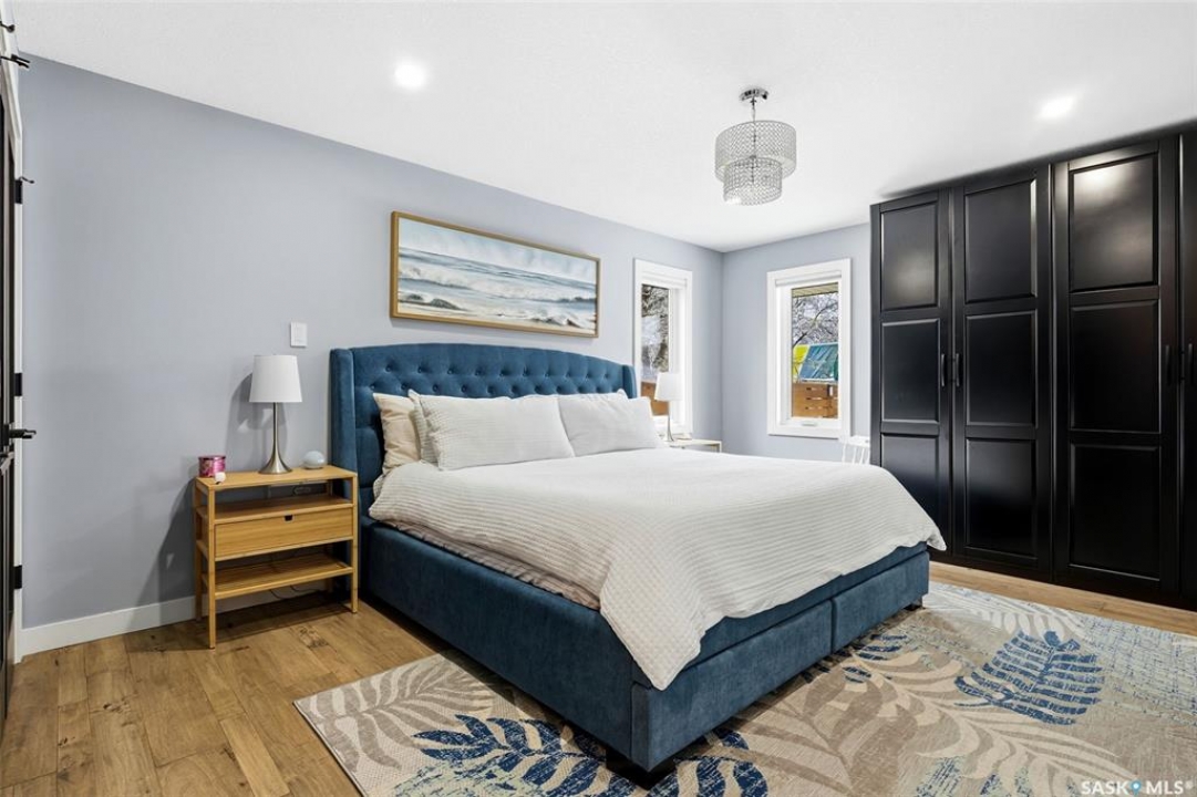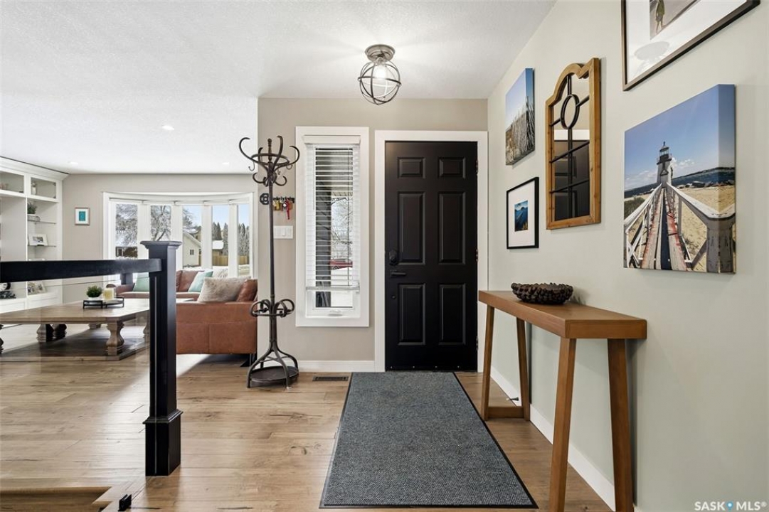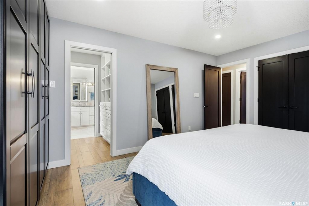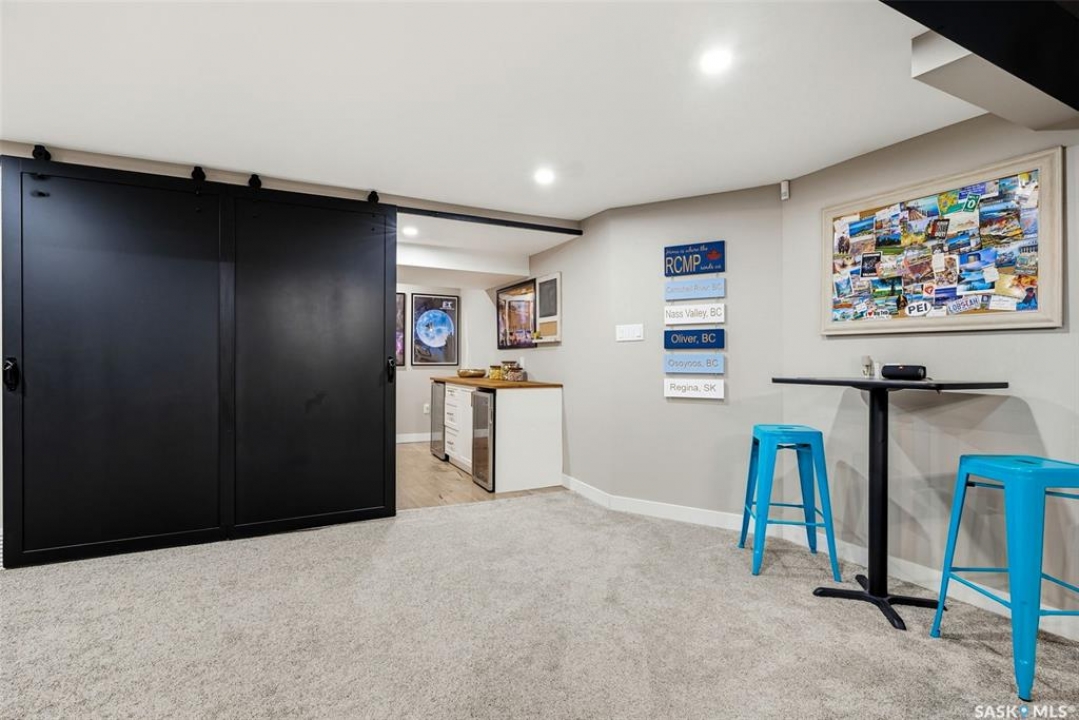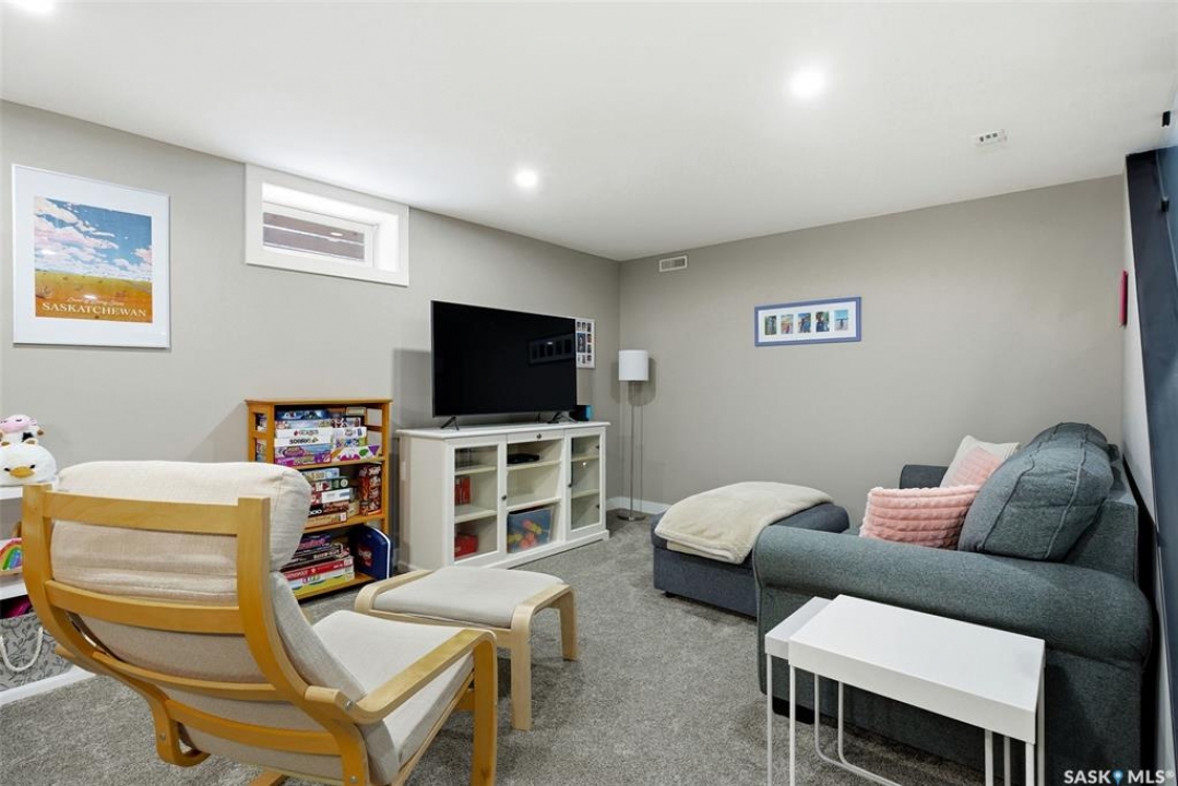 Welcome to this exceptional 1,719 sq. ft. luxury bungalow in Regina, where thoughtful design, premium materials, and refined craftsmanship meet valuable recent upgrades for peace of mind. The bright open-concept main floor features engineered hardwood and tile throughout, highlighted by a striking double-sided vapour fireplace that adds ambiance without maintenance. At the heart of the home is a chef-inspired gourmet kitchen designed for both everyday living and upscale entertaining. It boasts stone countertops, a Bosch commercial refrigerator/freezer, Bosch double convection ovens with warming drawer, motorized microwave, five-burner gas cooktop with pop-out ventilation, pot filler, apron sink, touch-activated faucet, soft-close cabinetry, and a large eat-up island with prep sink, pop-out outlet, and hidden storage. The inviting living room offers a custom feature wall, built-in shelving, and abundant natural light, while the dining area with bay window provides an elegant space for gatherings. Three well-appointed bedrooms and a beautifully finished four-piece bathroom complete the main floor. The primary suite is a true retreat, featuring custom closet organizers and a walk-through closet leading to a spa-inspired ensuite with soaker tub, double vanity with makeup station, rain shower with dual heads, towel warmer, and heated floors. The fully finished lower level includes a spacious recreation room, sound-proofed office, full bathroom, and private theatre room. The home is fully wired with coax and CAT5, offers discreet laundry cabinetry, and provides direct access to the garage from the basement mudroom. Recent upgrades include brand new architectural shingles, a new fence, underground sprinklers, and a professionally landscaped backyard with deck—perfect for relaxing or entertaining. This move-in-ready home is ideal for buyers seeking single-level luxury living with high-end finishes and modern upgrades already completed.