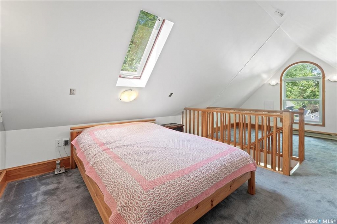 1018 Aird Street – 1912 Character Three-Story in a Storybook Setting! A character located in one of Saskatoon's coveted and walkable neighborhoods. Offering 1,850 sq ft over 3 levels, 4 bedrooms, 3 full baths, a large 37' lot, and a newer tandem detached garage. A picture-perfect front porch leads into a main floor rich in original details: hardwoods, French glass doors, woodwork, two elegant bay windows and a large dining room with a built-in glass china cabinet, plus an office / music room with an original cast fireplace. Main floor also features an oak kitchen, a full 3-piece bath, and a renovated rear porch/mudroom connecting to the backyard. Outdoor living is a highlight: unusually large, fully enclosed fenced yard (bigger than typical for the area), ideal for pets, kids, and leisure, and a sprawling double-tiered deck is perfectly suited for sunny entertaining. The front driveway adds rare, convenient parking to this property. The second level of this home offers three generously sized bedrooms, and a full bath with claw foot tub, with bay window views and a large private treetop balcony off one of the bedrooms! The entire third floor is a master retreat with a sitting area, large bedroom area, and a four-piece ensuite (shower door adjustment required). The basement is undeveloped. Notable updates include: windows, furnace, hot water heater, shingles, plumbing, asbestos removal, newer fencing, updated rear porch, piles under the front porch, shingles, and siding/shingles on the drywalled and insulated garage. This is a special home for people who love character, community, and an inner city neighbourhood - offering the historic charm you dream of, with practical upgrades.