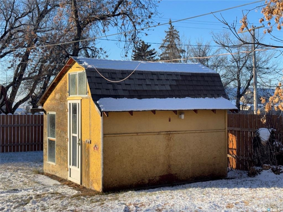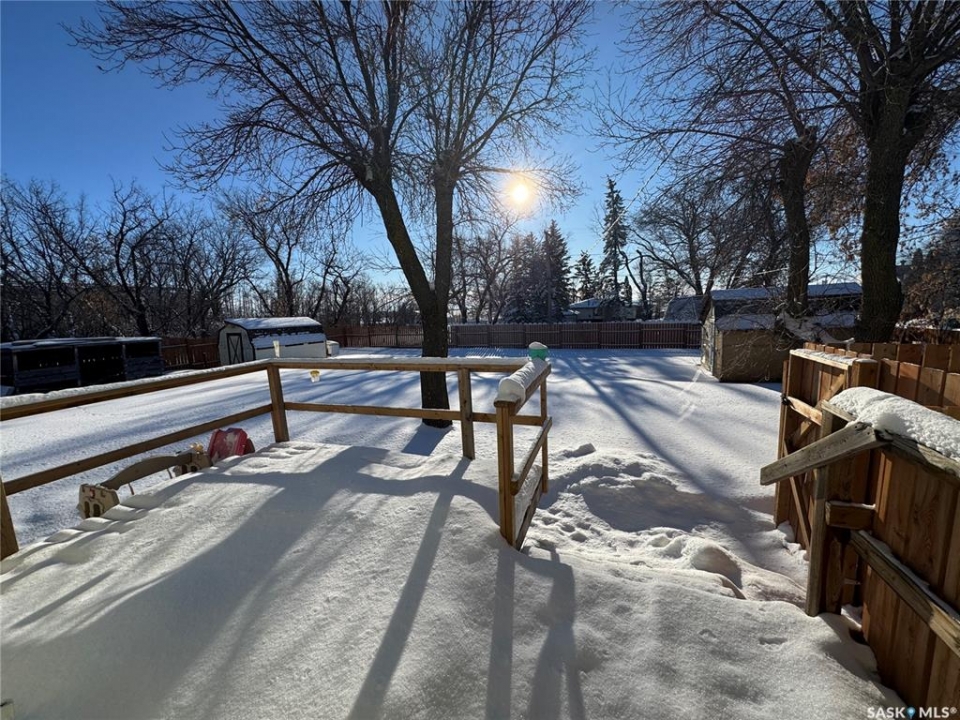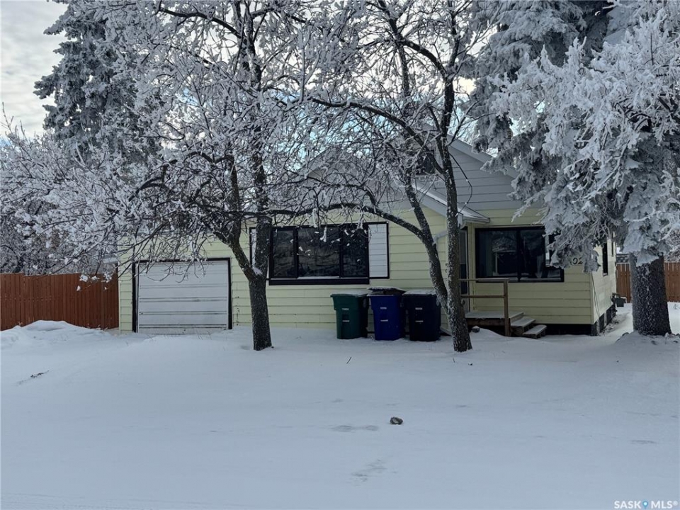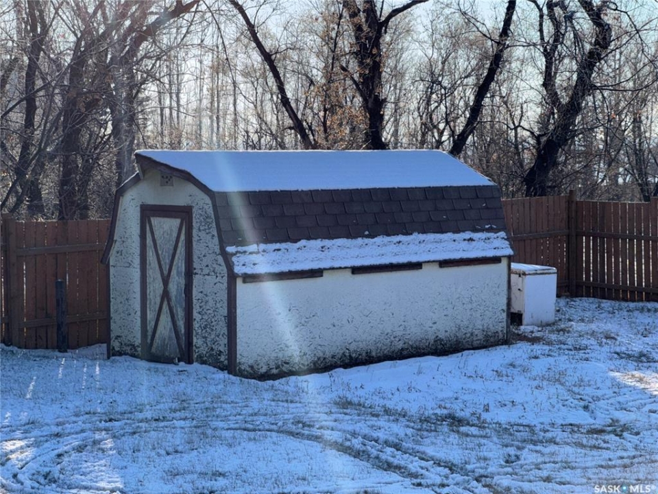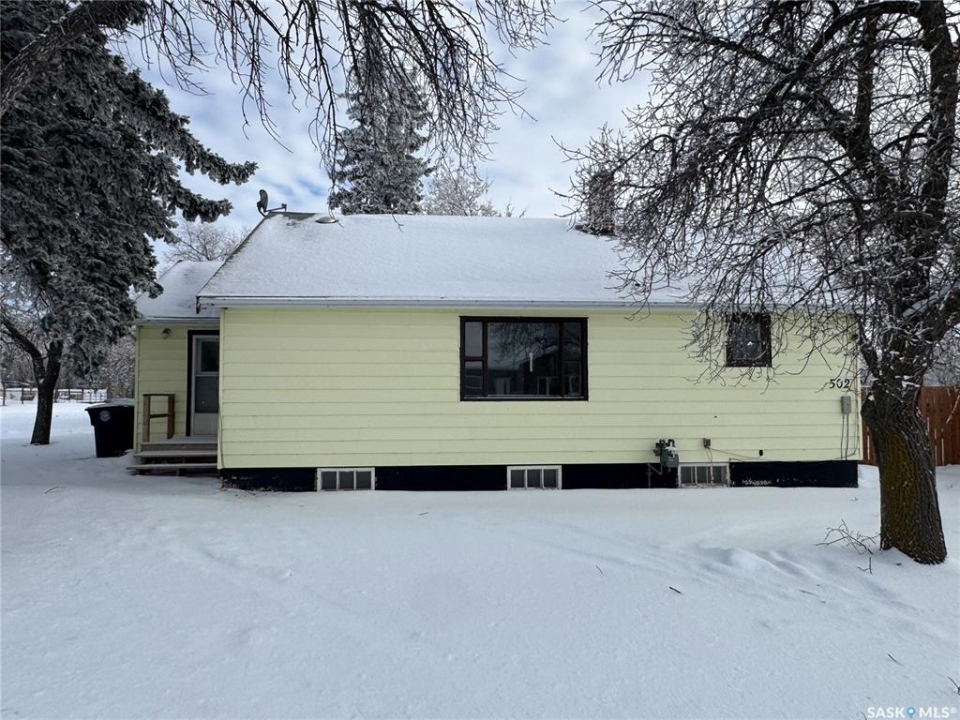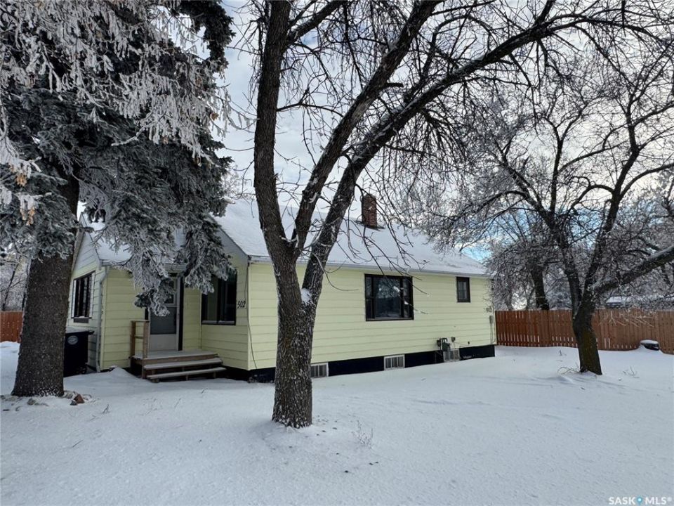 Looking for space, privacy, and room to grow? This well-cared-for bungalow on the edge of Biggar offers the best of both worlds—peaceful surroundings with the convenience of town living. The bright main floor features a functional country-style kitchen, an inviting living room, two bedrooms, a full 4-piece bathroom, and the added bonus of main-floor laundry. The basement provides excellent potential to expand your living space or customize it to suit your needs, with a cold room, storage areas, and utility space already in place. Outside, the generous 100' x 140' fenced lot is surrounded by mature trees, offering exceptional privacy and a park-like feel. Whether you're entertaining guests, tending a garden, or enjoying evenings around the firepit, this yard is designed to be enjoyed year-round. Additional highlights include a deck, greenhouse, patio area, covered firewood storage, a garden shed, and a 12' x 20' garage conveniently located at the side of the home. Freshly updated with paint and vinyl plank flooring on the main floor, this home is ready for its next chapter. Owning it is just a phone call away—book your personal viewing today!