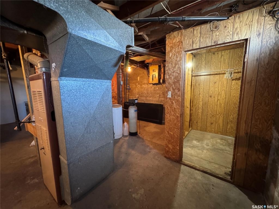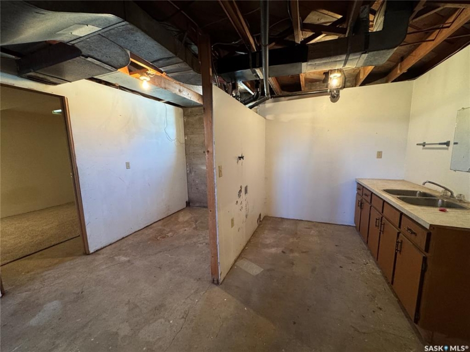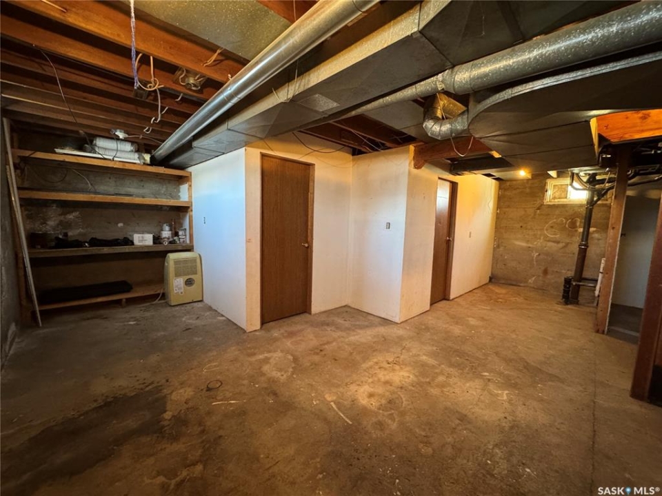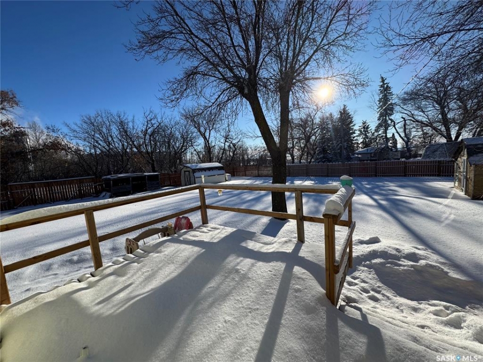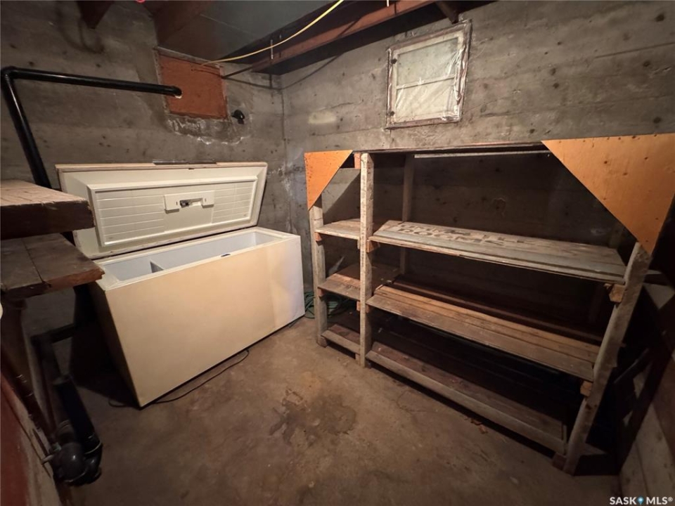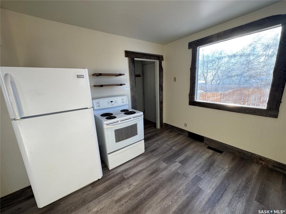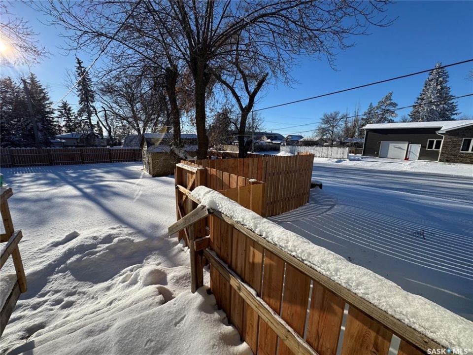 Looking for space, privacy, and room to grow? This well-cared-for bungalow on the edge of Biggar offers the best of both worlds—peaceful surroundings with the convenience of town living. The bright main floor features a functional country-style kitchen, an inviting living room, two bedrooms, a full 4-piece bathroom, and the added bonus of main-floor laundry. The basement provides excellent potential to expand your living space or customize it to suit your needs, with a cold room, storage areas, and utility space already in place. Outside, the generous 100' x 140' fenced lot is surrounded by mature trees, offering exceptional privacy and a park-like feel. Whether you're entertaining guests, tending a garden, or enjoying evenings around the firepit, this yard is designed to be enjoyed year-round. Additional highlights include a deck, greenhouse, patio area, covered firewood storage, a garden shed, and a 12' x 20' garage conveniently located at the side of the home. Freshly updated with paint and vinyl plank flooring on the main floor, this home is ready for its next chapter. Owning it is just a phone call away—book your personal viewing today!