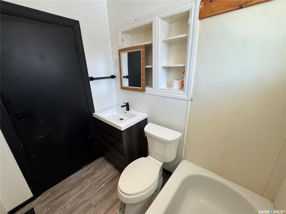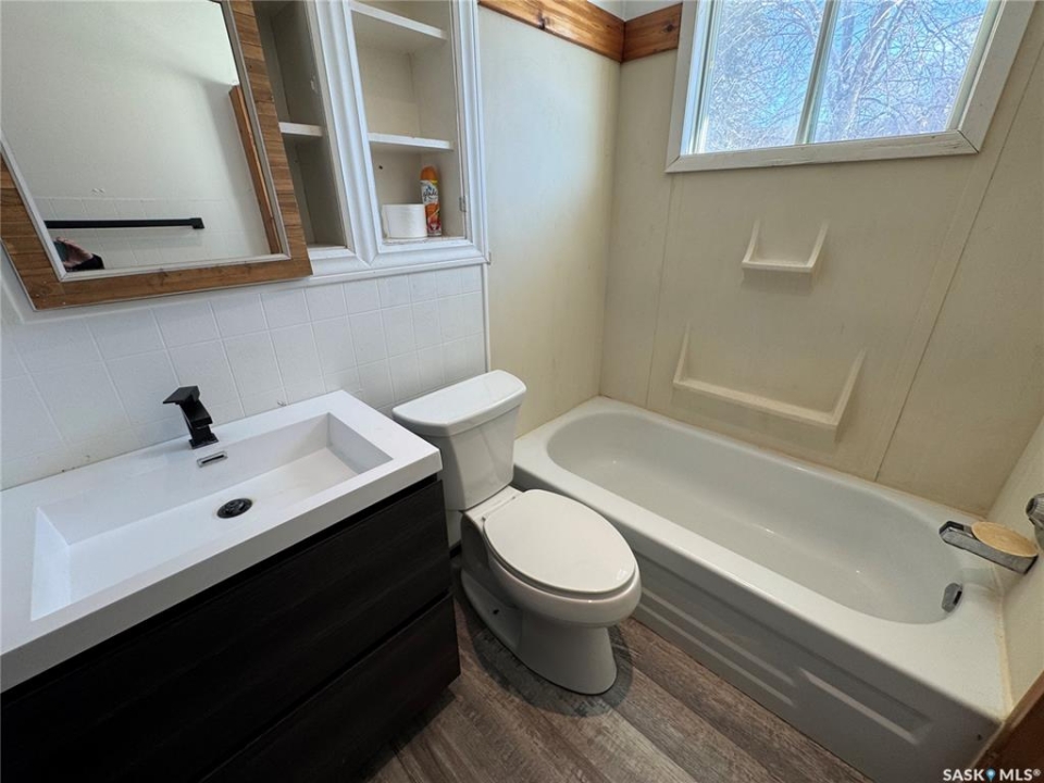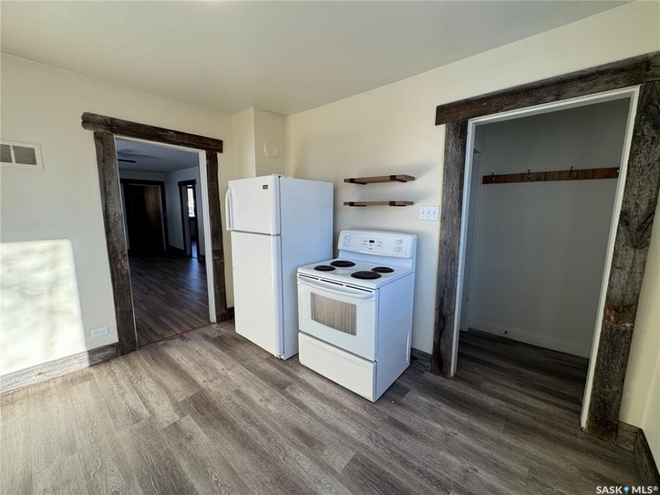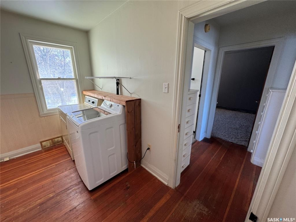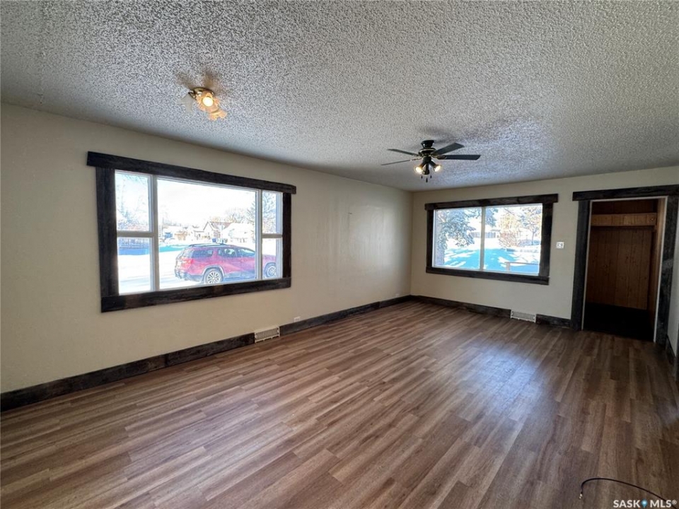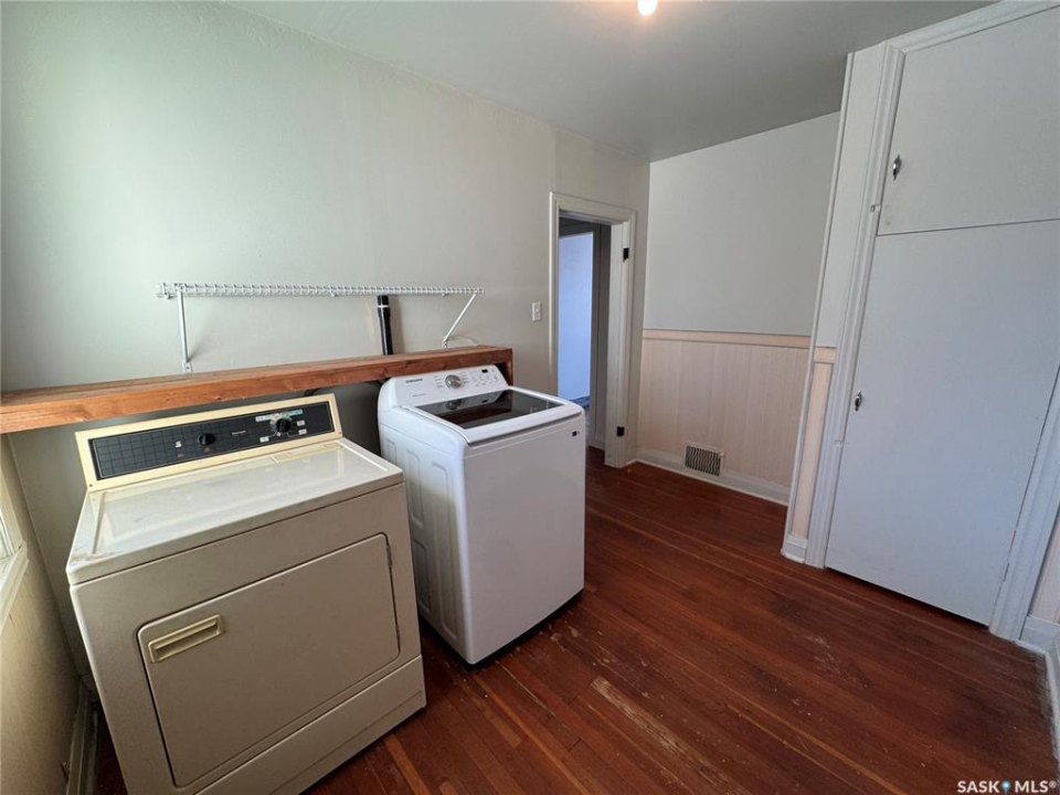 Looking for space, privacy, and room to grow? This well-cared-for bungalow on the edge of Biggar offers the best of both worlds—peaceful surroundings with the convenience of town living. The bright main floor features a functional country-style kitchen, an inviting living room, two bedrooms, a full 4-piece bathroom, and the added bonus of main-floor laundry. The basement provides excellent potential to expand your living space or customize it to suit your needs, with a cold room, storage areas, and utility space already in place. Outside, the generous 100' x 140' fenced lot is surrounded by mature trees, offering exceptional privacy and a park-like feel. Whether you're entertaining guests, tending a garden, or enjoying evenings around the firepit, this yard is designed to be enjoyed year-round. Additional highlights include a deck, greenhouse, patio area, covered firewood storage, a garden shed, and a 12' x 20' garage conveniently located at the side of the home. Freshly updated with paint and vinyl plank flooring on the main floor, this home is ready for its next chapter. Owning it is just a phone call away—book your personal viewing today!