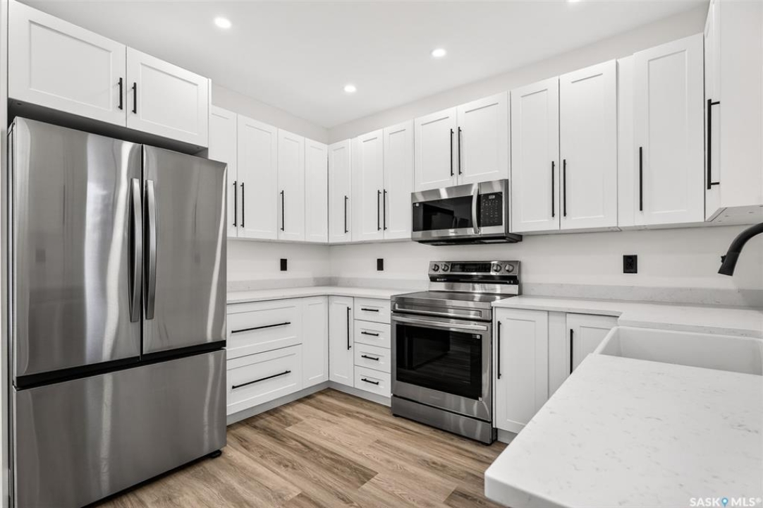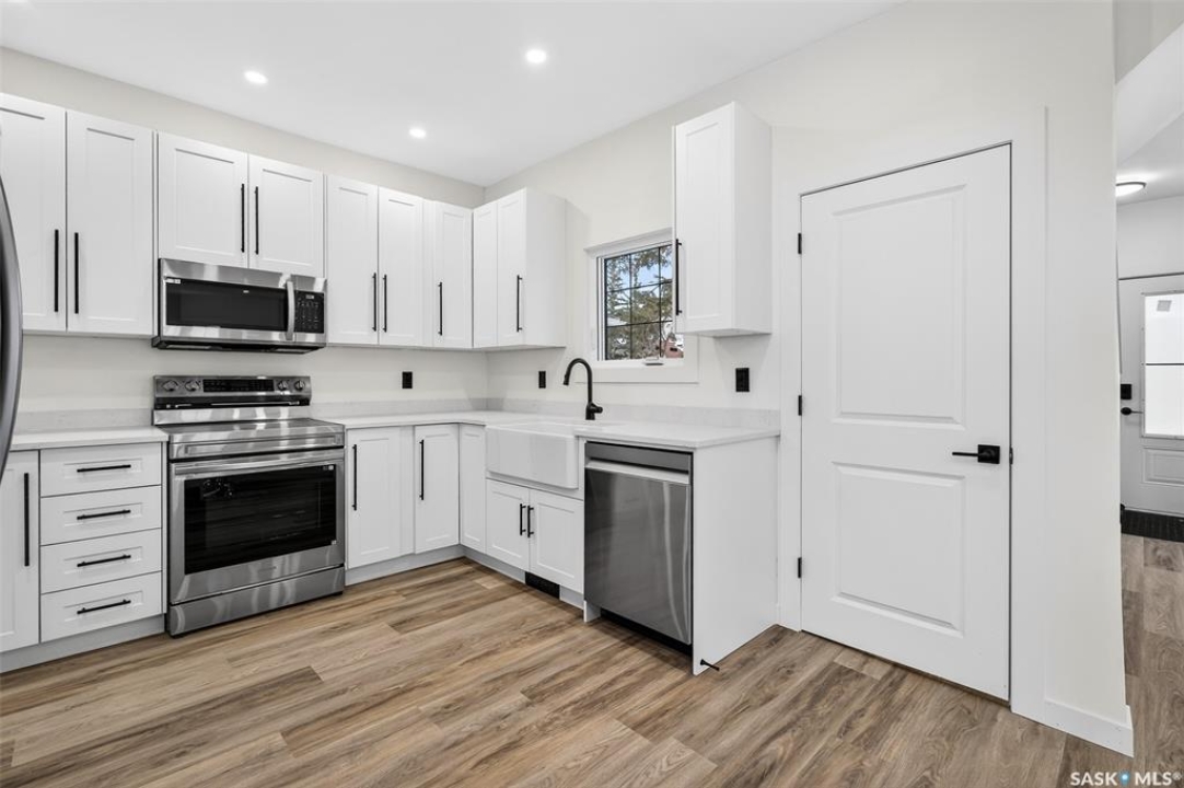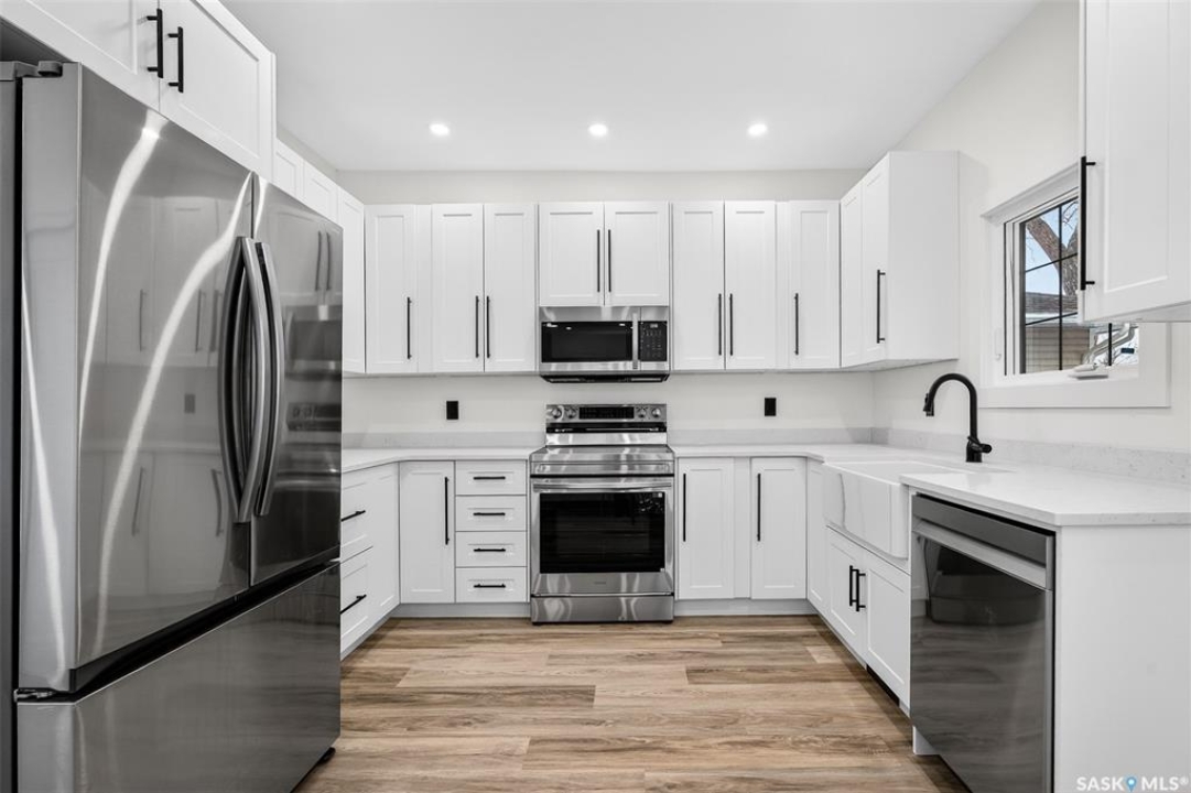 This beautifully renovated one and half storey has been completely transformed, offering the comfort and reliability of a nearly new home with the charm of an established neighborhood. The interior has been stripped to the studs and rebuilt with new insulation (except attic), poly, drywall, interior doors, hardware, flooring, and trim. Main floor is bright with large new windows throughout allowing for plenty of natural sunlight. The stunning kitchen is incredibly functional showcasing white cabinetry with 39-inch uppers, quartz countertops, a farmhouse sink, excellent pantry storage. A full electrical upgrade, including new service and wiring throughout the home and garage. The mechanical systems are entirely new as well, featuring a high-efficiency furnace, Navien tankless hot water heater, central air, all new ductwork, new waterlines, and updated ABS plumbing. The spacious bathroom has been completely redone. Basement is roughed in for a future bathroom and includes a backflow check valve. Exterior improvements include new windows and doors, newer shingles on both the house and garage, and new soffit, fascia, and eavestroughs with leaf guards. The single garage features a new overhead door, opener, and generous attic storage. Both the front and back decks are newly built and the yard is well-designed with garden space and additional parking finished with reclaimed asphalt. This home offers exceptional value with extensive upgrades inside and out! Quick possession available. *GST is included in the purchase price. Buyer agrees to assign GST rebate back to the Seller.