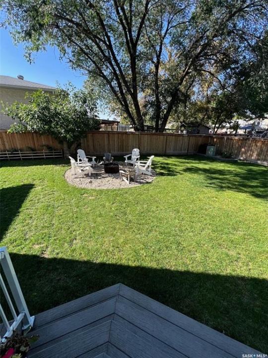 Outdoor: Deck, Fenced, Firepit, Garden Area, Lawn Back, Lawn Front, Trees/shrubs