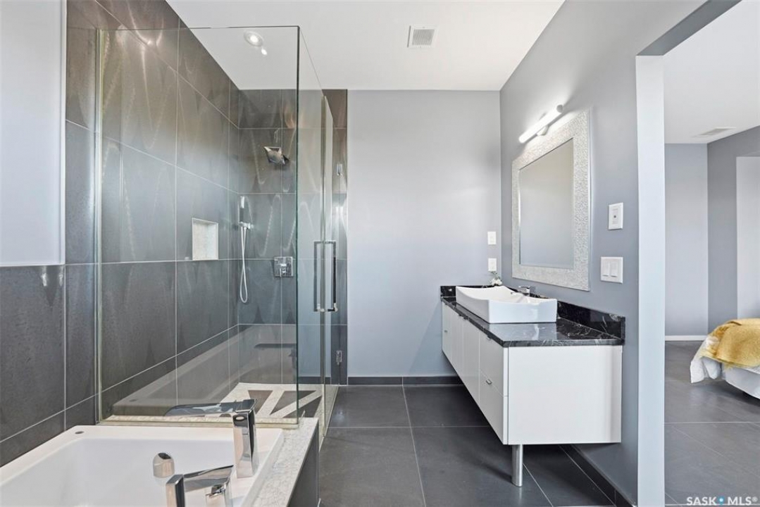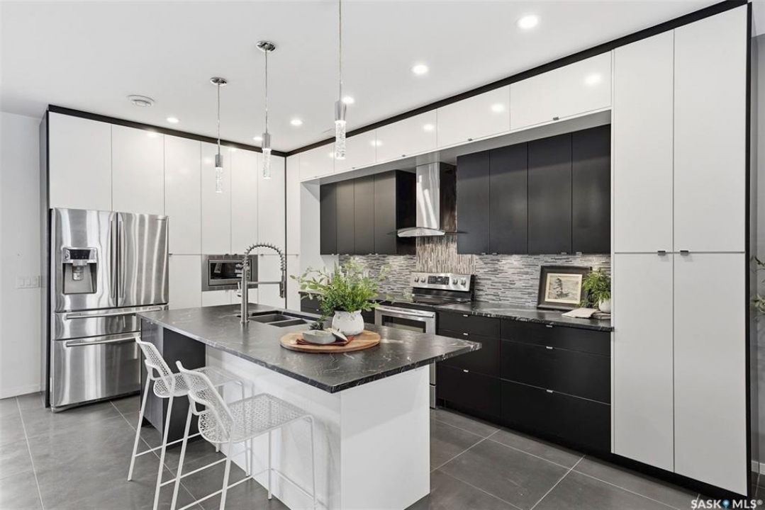 Welcome to 1310 Empress Avenue, a thoughtfully designed two-storey semi-detached home in the highly desirable North Park neighbourhood. Custom built by the original owner in 2013, this residence offers approximately 1,855 sq. ft. living space across two levels, combining modern construction, generous proportions, and a highly functional layout. Ideally located just one block from the river, the home offers exceptional walkability with easy access to river paths, City Hospital, and the University of Saskatchewan. The architecturally cohesive exterior features stucco, stone accents, HardieBoard siding, and warm cedar detailing, enhanced by exterior lighting and a covered upper-level deck. Inside, the main level offers a bright open layout with 9-foot ceilings and heated porcelain tile flooring throughout. High-quality Kohler fixtures are used throughout, and countertops are finished in granite. The kitchen features abundant cabinetry, satin-finish granite countertops, and a large island with a breakfast eating bar. In-floor heating is installed on every level for consistent comfort. The second level includes three bedrooms, a spacious primary suite with a four-piece ensuite featuring a heated air tub and custom tiled shower, a second full bathroom, upper-level laundry, and access to a west-facing covered deck. The basement is tenant occupied under a fixed-term lease until June 30 at $1,500 per month including utilities. Additional features include central air conditioning, central vacuum, 2 HRVs, and a double detached garage. MLS � List Price: $749,900.