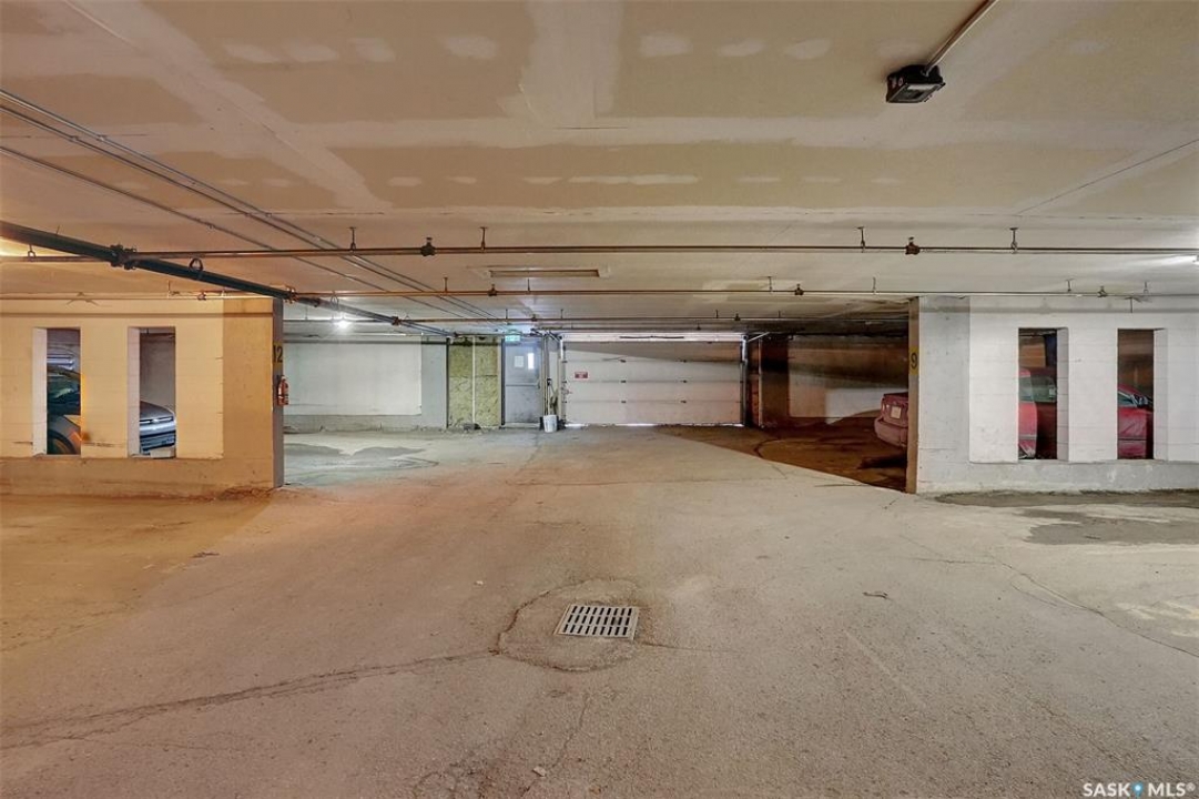 Welcome to this well-maintained 926 sq. ft. condo offering a comfortable and convenient lifestyle in a location with close proximity to downtown, the hospital, and Wascana Park. This bright and inviting unit features 1 spacious bedroom and 1 updated 4-piece bathroom, along with the added convenience of covered parking with additional storage. Bright white walls throughout most of the unit enhance the natural light and create a clean, welcoming atmosphere. The oak kitchen has been refreshed with updated hardware, blending classic warmth with a modern touch. The large living room extends to a private balcony, perfect for enjoying fresh air or relaxing at the end of the day. Heat and water are included in the condo fees, adding excellent value and peace of mind. The generous bedroom includes a walk-in closet, while the updated bathroom offers both style and functionality. This is a great option for first time buyers, those that want to be close to the hospital and downtown or investors.