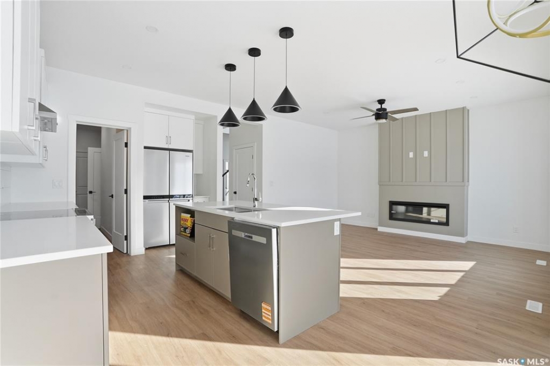 Welcome to another beautiful build by Zimroz Homes, The Frontier. This 1,880 sqft home offers an open floor plan, ideal for family life. Key highlights include an open concept kitchen with quartz countertops, walk-through pantry, upstairs bonus room, primary bedroom with a 5-piece ensuite, two additional bedrooms, main floor family room with shiplap fireplace, stainless steel appliances and central A/C, Aspen Ridge location backing green space, attached 23" x 21" garage, concrete driveway, separate side entrance for a potential legal suite. It's modern, bright, with premium finishes and outdoor greenspace access. The added separate side entrance provides flexibility for a possible legal suite or multigenerational living.