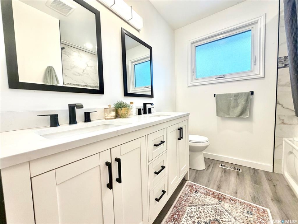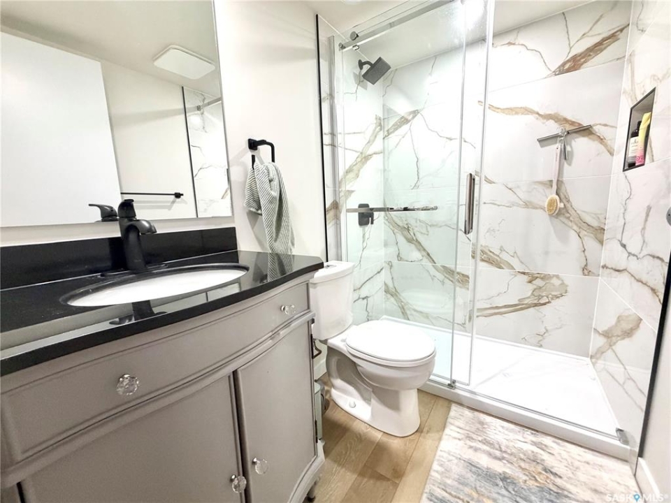 This home just might have it all! Located in sought after Battleford, there are five bedrooms and two bathrooms, the home is fully renovated and has an unbelievable 26 x 32 triple heated garage. The home has just undergone extensive renovations within past year to include the exterior repainted, all interior walls and baseboards repainted, stipple removed on majority of main, all new flooring throughout, brand new three-piece bath in basement with a beautiful tiled walk in shower, new washer, dryer, and dishwasher, exterior fence painted and new kitchen taps. There was also ice plumbed to the fridge for the ice dispenser. Additional renovations include main floor bathroom fully renovated approximately six years ago, new furnace installed in 2020, new water heater 2024, triple pane windows installed in 2014 and all three garage doors replaced. You're sure to enjoy the open layout on the main and the functionality this home provides. There are three bedrooms and one bathroom on the main floor, two very large bedrooms, a rec room, laundry, and a large storage room in the basement. The garage provides endless possibilities with three separate garage doors and a natural gas heater. If you're needing additional parking space there is a concrete pad on the west side of the house. The home is nicely tucked in offering privacy with the thick hedge that runs around two sides of the home. There is a bbq deck off the side and patio below. School bus pick up is right out front for several schools, there is a park and walking trails nearby as well as the pump track. Call for your showing today!