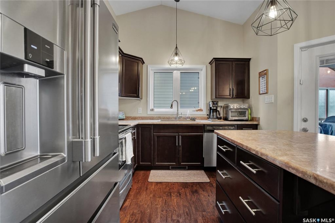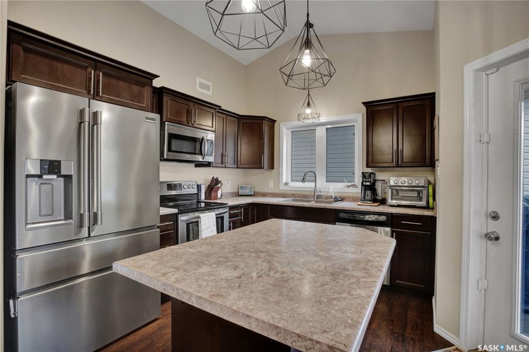 Looking for a beautifully crafted home that blends style and function? This one delivers. Thoughtfully designed with custom feature walls, vaulted ceilings, and a kitchen that looks out over the backyard, this home invites both everyday living and easy entertaining. Step outside to enjoy a deck, patio, and no-maintenance fencing—perfect for relaxing without the upkeep. The main floor offers everything a family needs, including laundry on the main level, three generously sized bedrooms, and beautifully customized bathrooms accented with feature walls that add character and charm. Downstairs, the fully developed basement provides incredible versatility with plenty of space for entertaining, an oversized bathroom, and a fourth bedroom tucked away just right—ideal for visiting parents, guests, or a teenager who appreciates a little extra privacy. Add in an insulated and heated garage with a natural gas heater, a concrete driveway that makes winter shoveling simple, central air conditioning, and a prime location in the Legends Golf Course community, and you've found a home that truly checks every box.