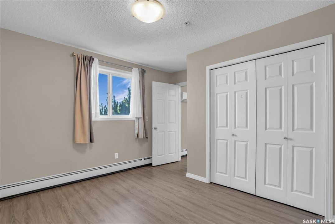 Awesome location with this very affordable 1 -bedroom apartment style condo located in the University Heights area of Saskatoon & situated across the street from a park! There is quick access to all amenites as well as the University – perfect for students going to school. This well cared for unit is on the main floor great for anyone that does not like stairs. It features an open concept living room to kitchen/dining area, vinyl plank flooring, in-suite laundry, a spacious bedroom & a nice-sized private balcony with a view of the park across the street. Parking is out front with easy access to the front door. 1 electrified surface parking stall is included as well as visitor parking. There is an exercise area, wheelchair accessibility & this very affordable home comes complete with all appliances, washer/dryer as well as a wall air conditioning unit. Don't wait! Call today to view.