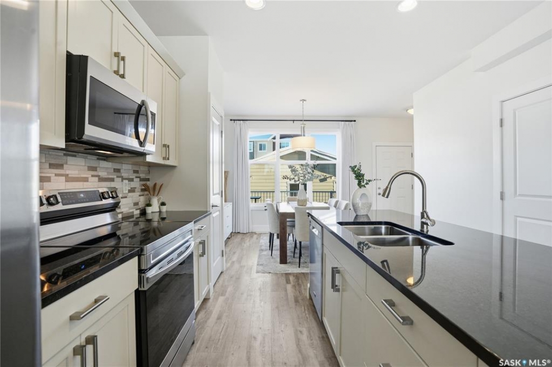This well-maintained home offers numerous upgrades and thoughtful features throughout. The basement was fully finished in 2022, with a one bedroom legal suite added!, and features 9-foot ceilings that continue throughout both the main floor and basement, creating an open feel with an abundance of natural light. Durable luxury vinyl plank flooring was installed in 2022, and the main floor was freshly painted last year. The kitchen showcases granite countertops, a large contemporary glazed ceramic backsplash, and a full stainless steel appliance package. The microwave, dishwasher, and stove were all upgraded in 2022. Energy-efficient triple-glazed windows and durable Hardie board (or equivalent fibre cement) siding enhance both comfort and long-term value. Outdoor spaces have been equally well cared for, with the deck extended to a generous 12' x 18' in 2022. The front landscaping features a brushed concrete walkway leading from beautiful pressure-treated covered front porches, offering excellent curb appeal. The double garage is partially insulated & drywalled. Ideally located with a school bus stop directly in front of the home and close proximity to Costco and other amenities, this property combines modern upgrades, convenience, and functionality in a fantastic location. House comes complete with central air!