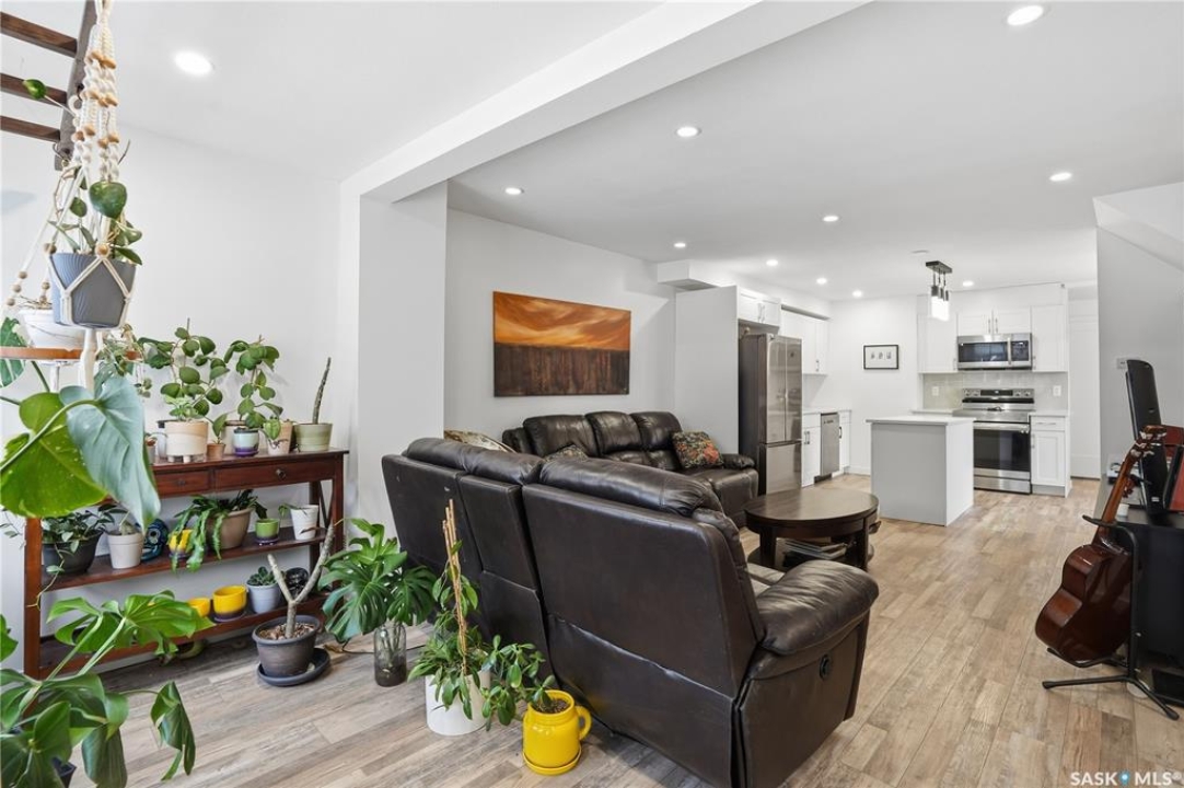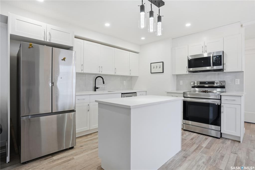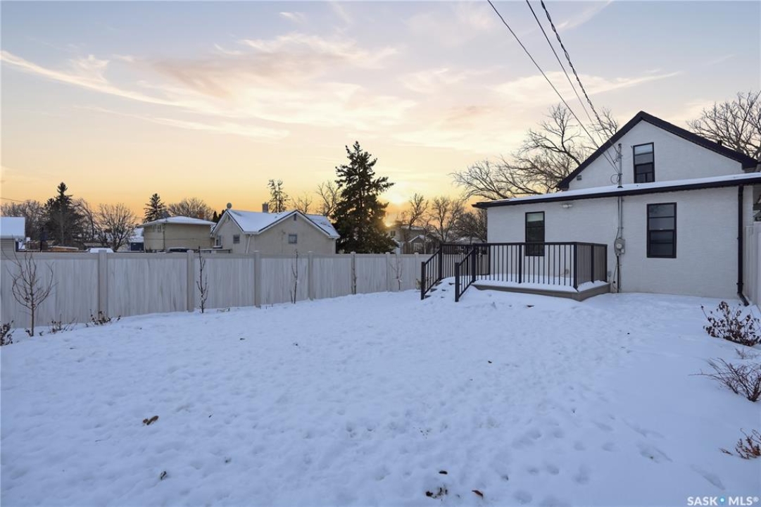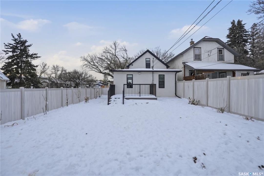 If you're looking for a home that feels brand new without the brand-new price tag, this one is a must-see. While officially 102 years young, extensive renovations have transformed this home into a space that looks and feels like it was built just a few years ago. The exterior makes a strong first impression with a sleek mix of stucco and metal siding, along with a fully fenced, landscaped backyard that was completed in the summer of 2025.. A composite rear deck creates the perfect space for entertaining or relaxing outdoors. Inside, the open-concept main floor is bright and modern, featuring durable vinyl plank flooring and light, neutral paint tones that make the space feel airy and easy to personalize. The kitchen is a standout with white cabinetry, quartz countertops, a central island, and stainless steel appliances. A sunny breakfast nook with a large picture window sits just off the kitchen. The living room offers plenty of flexibility, with space for both lounging and dining, or even a curated plant-filled retreat. A main-floor bedroom with a walk-in closet is a rare and valuable bonus, paired with a stylish four-piece bathroom that also includes laundry. Upstairs, you'll find two additional bedrooms and a convenient two-piece bathroom. The undeveloped basement provides ample storage. Outside, the low-maintenance front yard features a large mature tree offering summer shade. A double detached garage completes this beautifully updated home.