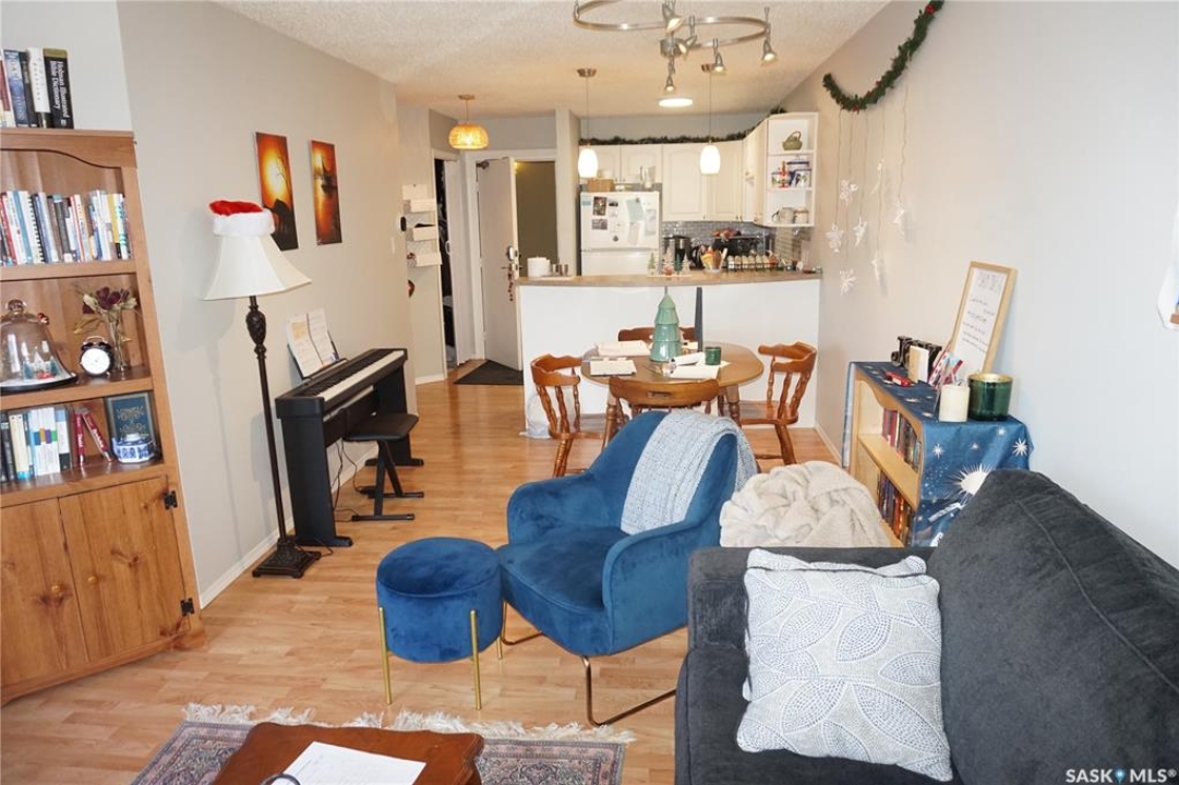 Designed for modern living, this bright open-concept condo is perfectly located just steps from downtown. Ideal for investors, first-time buyers or busy professionals, you can truly leave the car behind and walk downtown, work, grab dinner nearby, shop local, or unwind at beautiful Wascana Park. All just steps from your door. The layout offers two generous bedrooms, a full bathroom, and the convenience of covered parking & in-unit laundry. Enjoy evening sunsets through patio doors leading to a west-facing balcony, perfect for relaxing after a long day. A fantastic opportunity to own a stylish, low-maintenance property in an unbeatable location. Call for more details today!